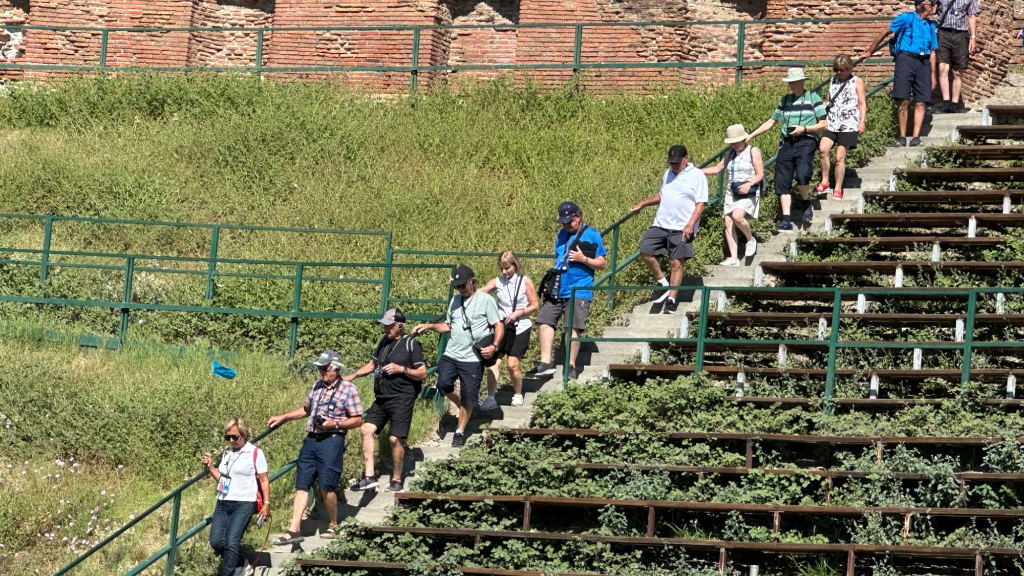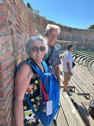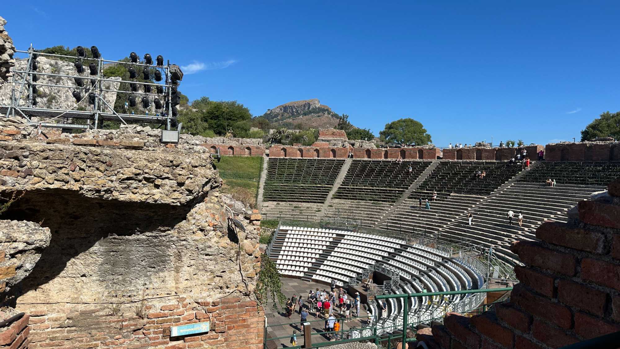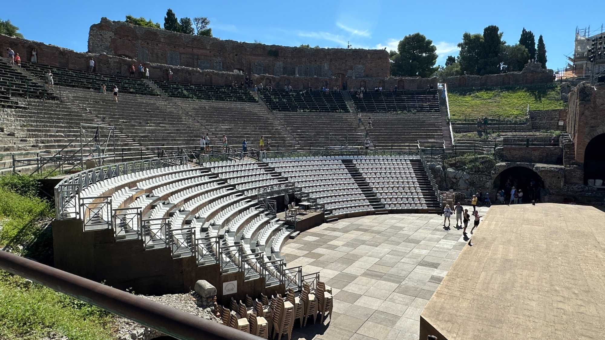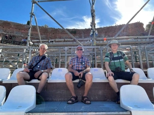 En foulant le sol du théâtre, il devient évident qu’on ne peut pas manquer cette occasion en or d’entendre à nouveau Mireille, notre cantatrice maison. A la demande générale, elle entame un air d'opéra dans ce lieu mythique. Portée par l’acoustique exceptionnelle du lieu, sa voix résonne pour tous les visiteurs présents. Silence sacré, puis, tonnerre d’applaudissements. Même les pierres semblent vibrer. Moment suspendu.