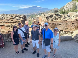 C’est au petit matin que notre super groupe a mis pied à terre à Messine, cette ville portuaire entre ciel et mer qui sert souvent de porte d’entrée à la Sicile. Taormina, perle accrochée à flanc de montagne, l’un des plus beaux joyaux d’Italie.