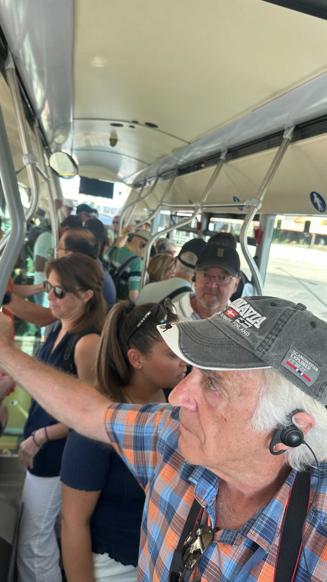 Une des choses que nous apprécions particulièrement avec cette chaleur, ce sont les bons soins du personnel du navire qui nous offrent un verre d’eau infusé à l’orange, au concombre ou au citron pour nous désaltérer en plus d’une serviette bien froide pour nous rafraîchir! On est vraiment traités aux petits oignons comme on dit !