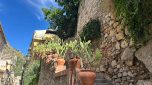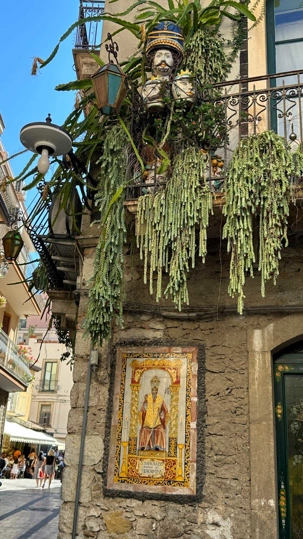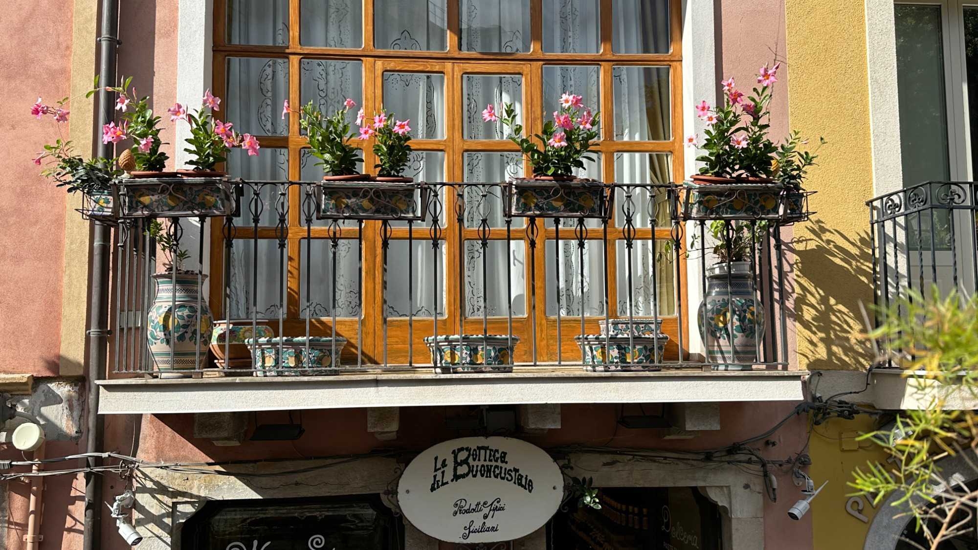 Après ces instants magique, Margherita nous guide à travers les ruelles secrètes de Taormina, loin des foules. Escaliers fleuris, petits balcons débordant de géraniums dans des pots de céramiques plus beaux les uns que les autres, façades anciennes et encore des plaques de céramiques qui racontent des siècles d’histoire.