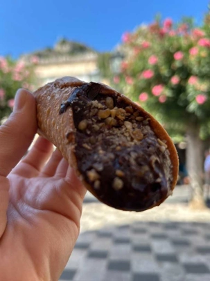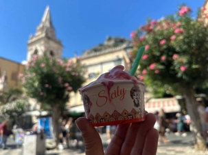 Margherita nous libère pour du temps libre: chacun part à l’aventure. Il fait vraiment chaud, mais la chaleur est sèche, aucune humidité, ce qui la rend un peu plus tolérable. Certains dégustent une arancina croustillante à souhait, d'autres une pizza à la pâte fine et généreuse en mozzarella. Les plus gourmands craquent pour un granité citron-amande, spécialité locale, ou une cannoli tout juste roulé.