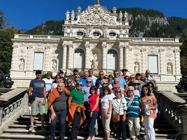 En fin de matinée, vers 11 h 30, vous arrivez au château de Linderhof. Construit entre 1870 et 1886 à la demande du roi Louis II, c’est le seul palais qu’il ait vu achevé de son vivant. Inspiré par le Petit Trianon de Versailles, il reflète la passion du monarque pour le faste rococo, les dorures et l’atmosphère onirique. Les jardins environnants, avec leurs pavillons orientaux et classiques, témoignent de son goût fantasque et mélancolique. Cette visite intime et raffinée plonge les voyageurs dans le monde féerique du “Roi des contes”.