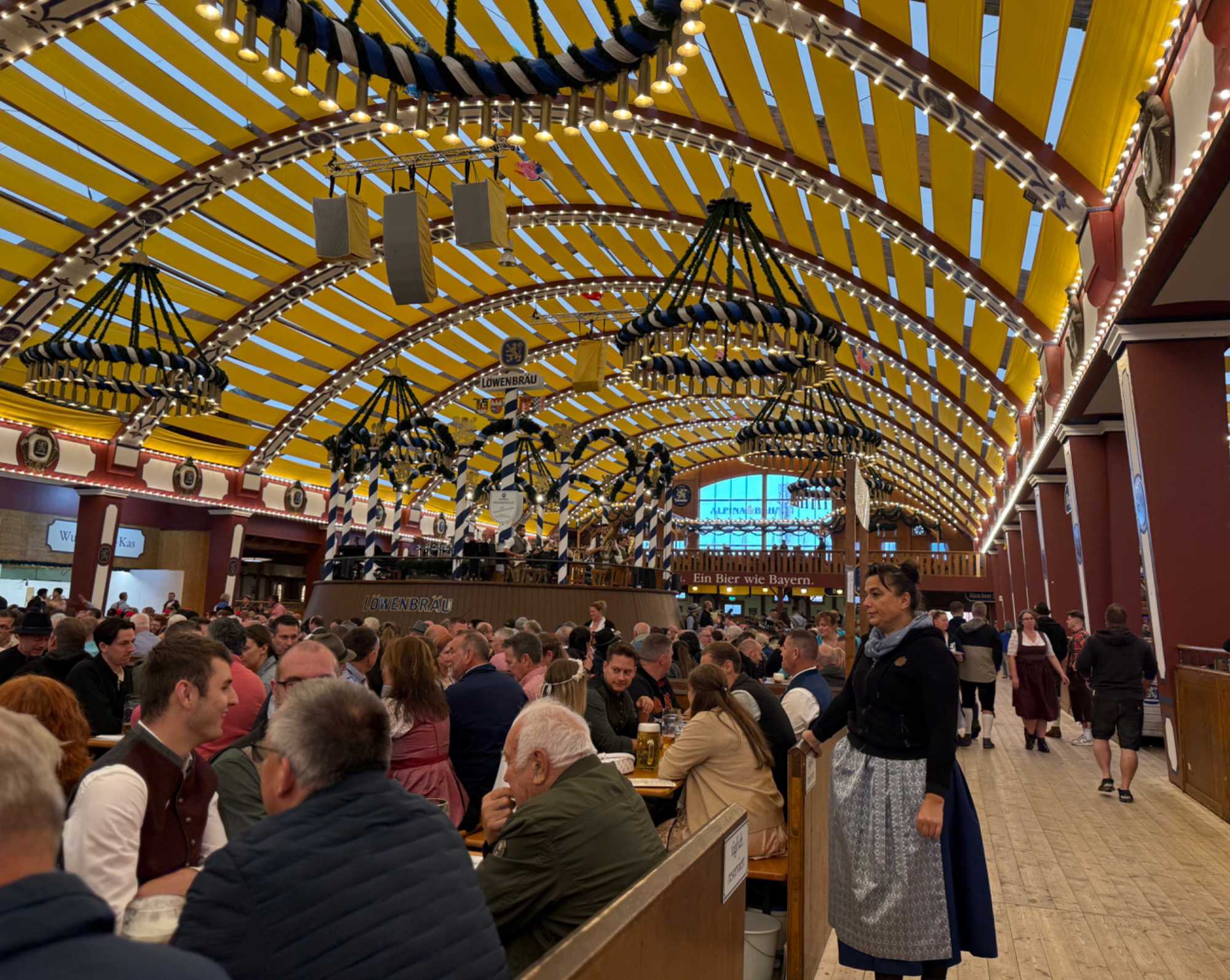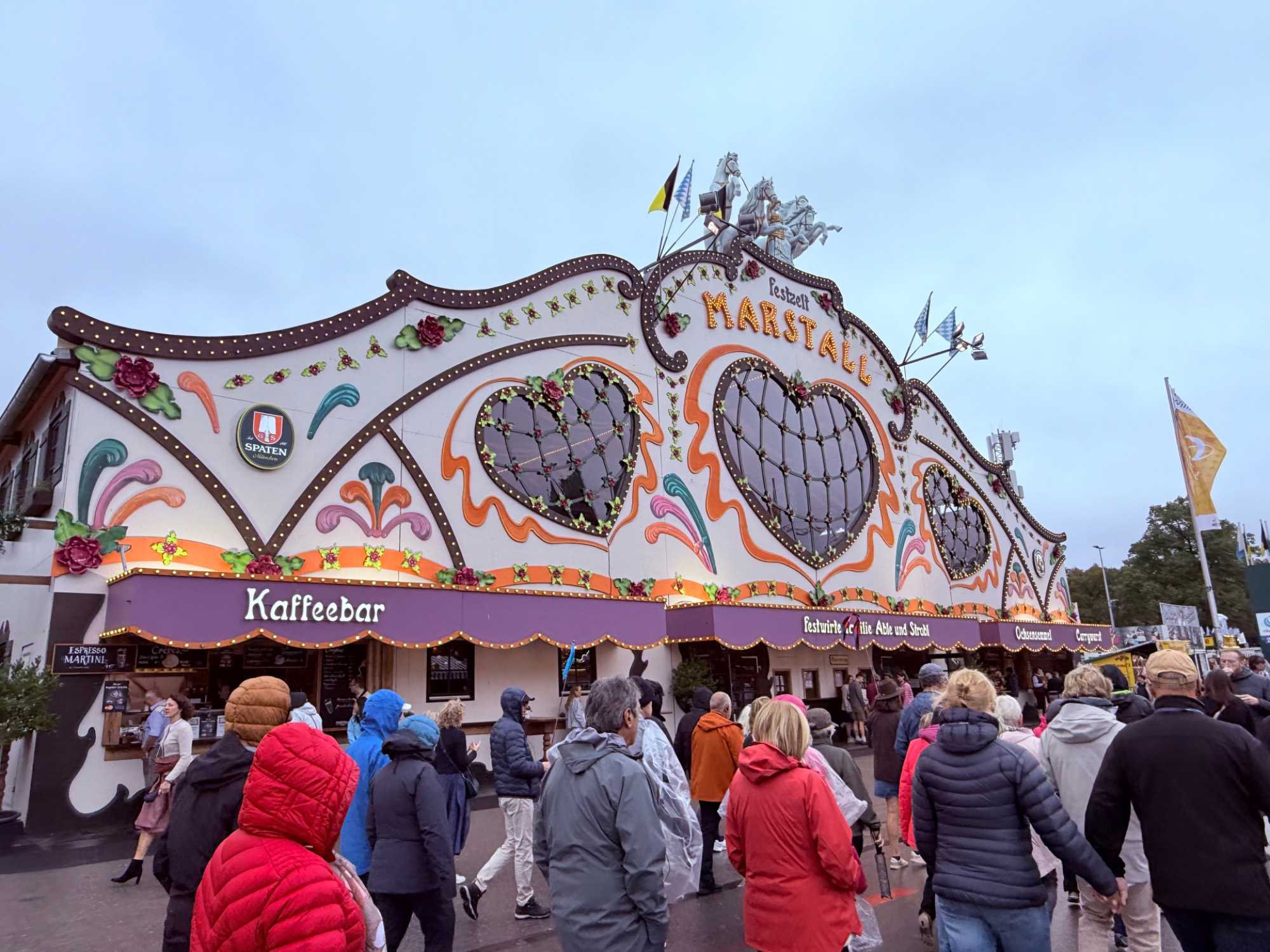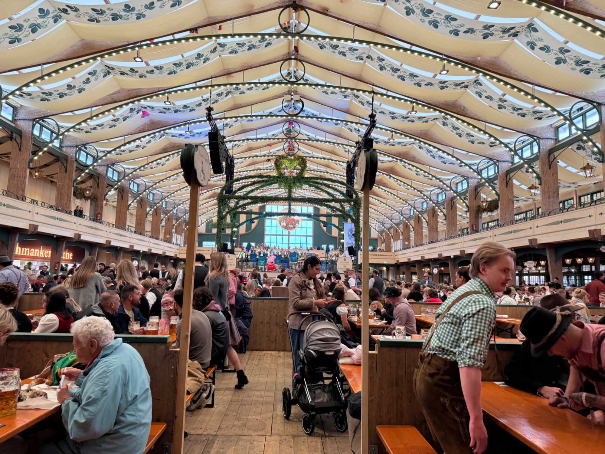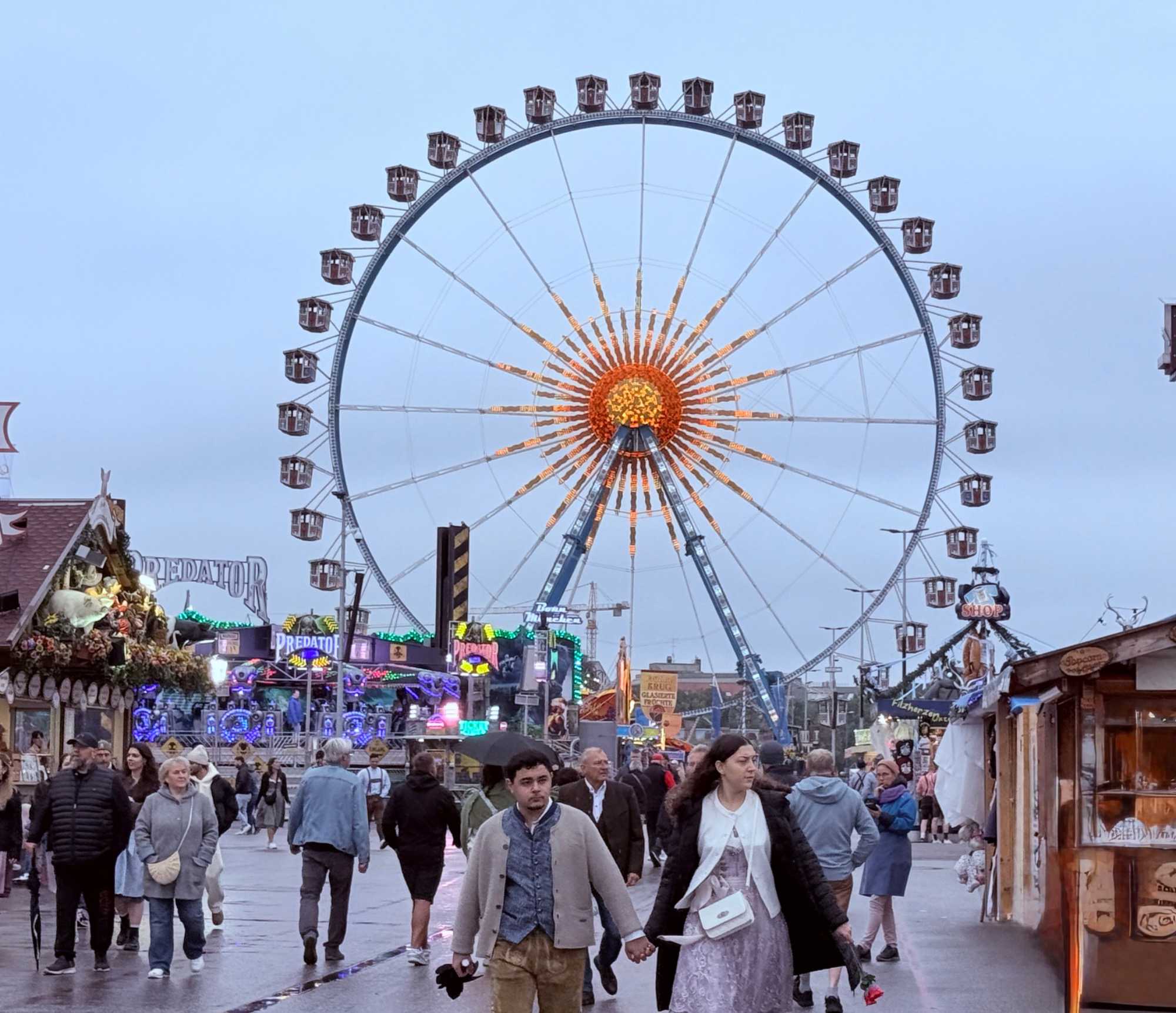Notre arrivée coïncide avec une période très particulière : l’Oktoberfest, la plus grande fête populaire au monde dédiée à la bière. Cette tradition bavaroise est née en 1810, lors du mariage du prince héritier Louis (futur roi Louis Ier de Bavière) avec la princesse Thérèse de Saxe-Hildburghausen. Pour célébrer l’événement, une grande course de chevaux fut organisée sur une vaste prairie aux abords de la ville. L’enthousiasme populaire fut tel que l’événement fut reconduit l’année suivante, donnant naissance à une fête annuelle qui, au fil des décennies, s’est transformée en une célébration monumentale.
