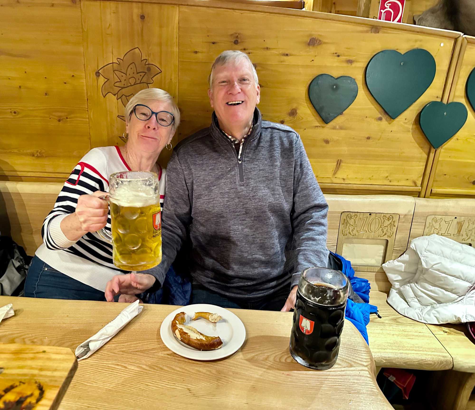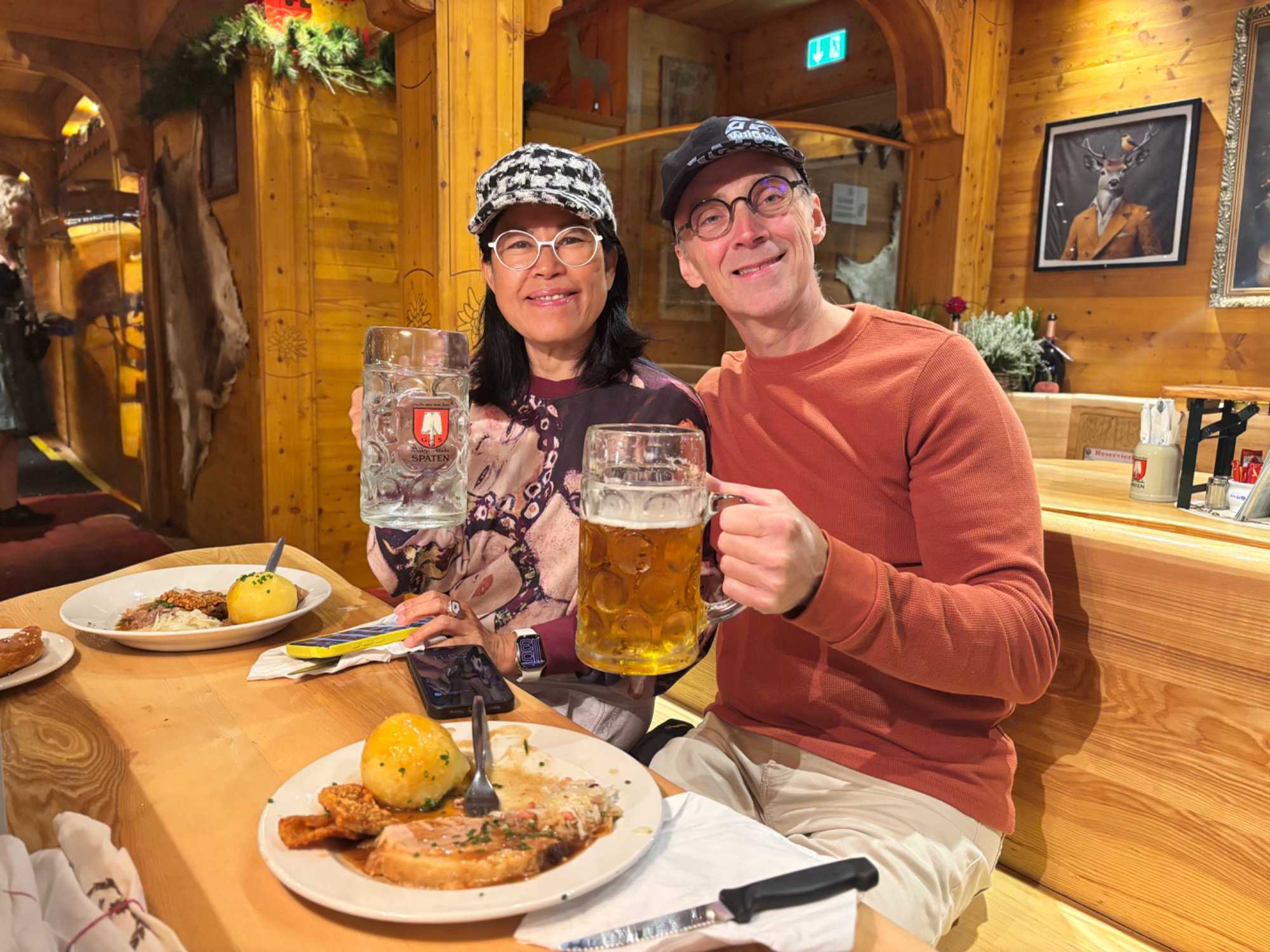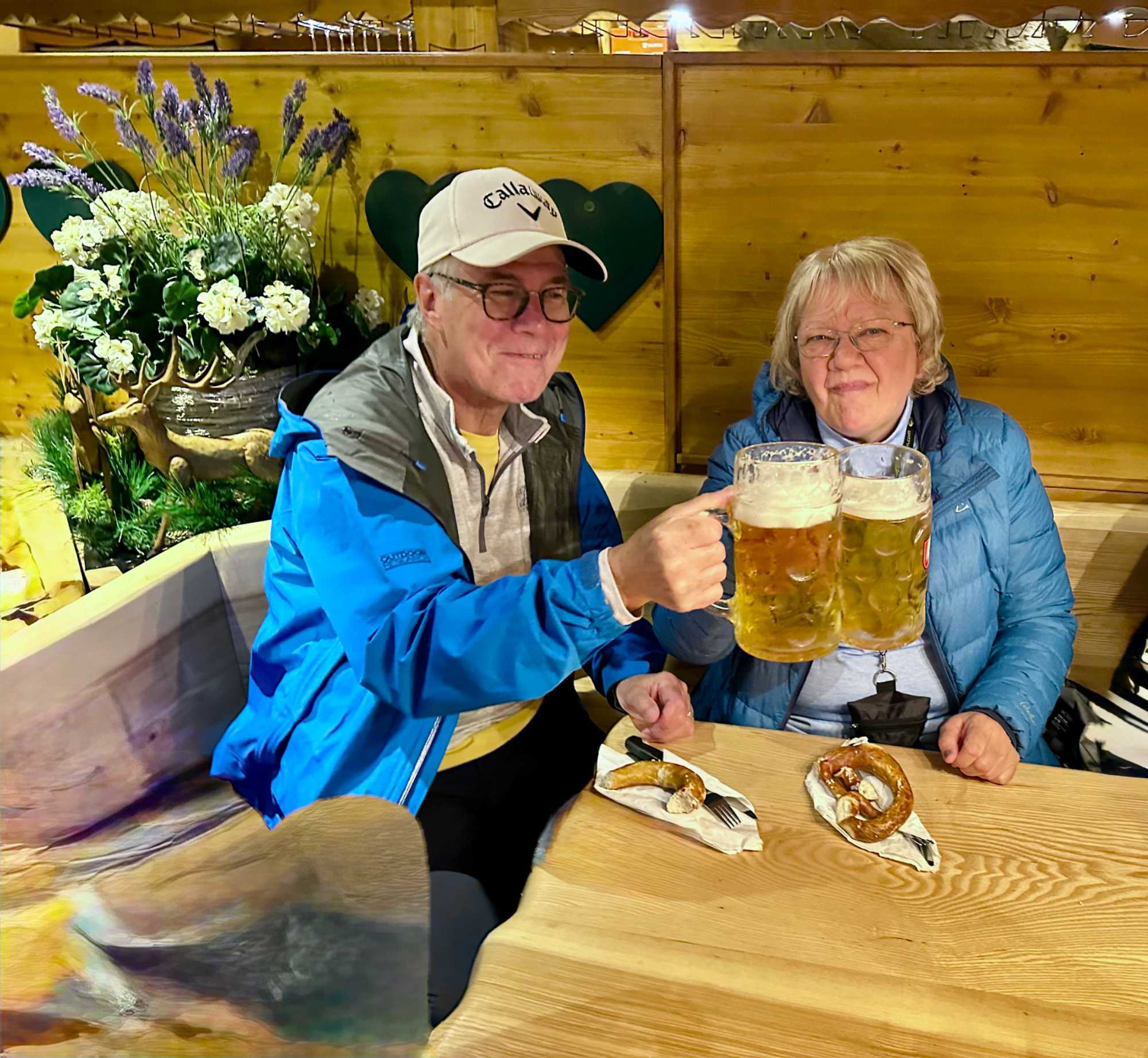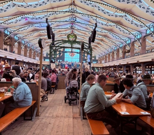 Notre arrivée coïncide avec une période très particulière : l’Oktoberfest, la plus grande fête populaire au monde dédiée à la bière. Cette tradition bavaroise est née en 1810, lors du mariage du prince héritier Louis (futur roi Louis Ier de Bavière) avec la princesse Thérèse de Saxe-Hildburghausen. Pour célébrer l’événement, une grande course de chevaux fut organisée sur une vaste prairie aux abords de la ville. L’enthousiasme populaire fut tel que l’événement fut reconduit l’année suivante, donnant naissance à une fête annuelle qui, au fil des décennies, s’est transformée en une célébration monumentale.