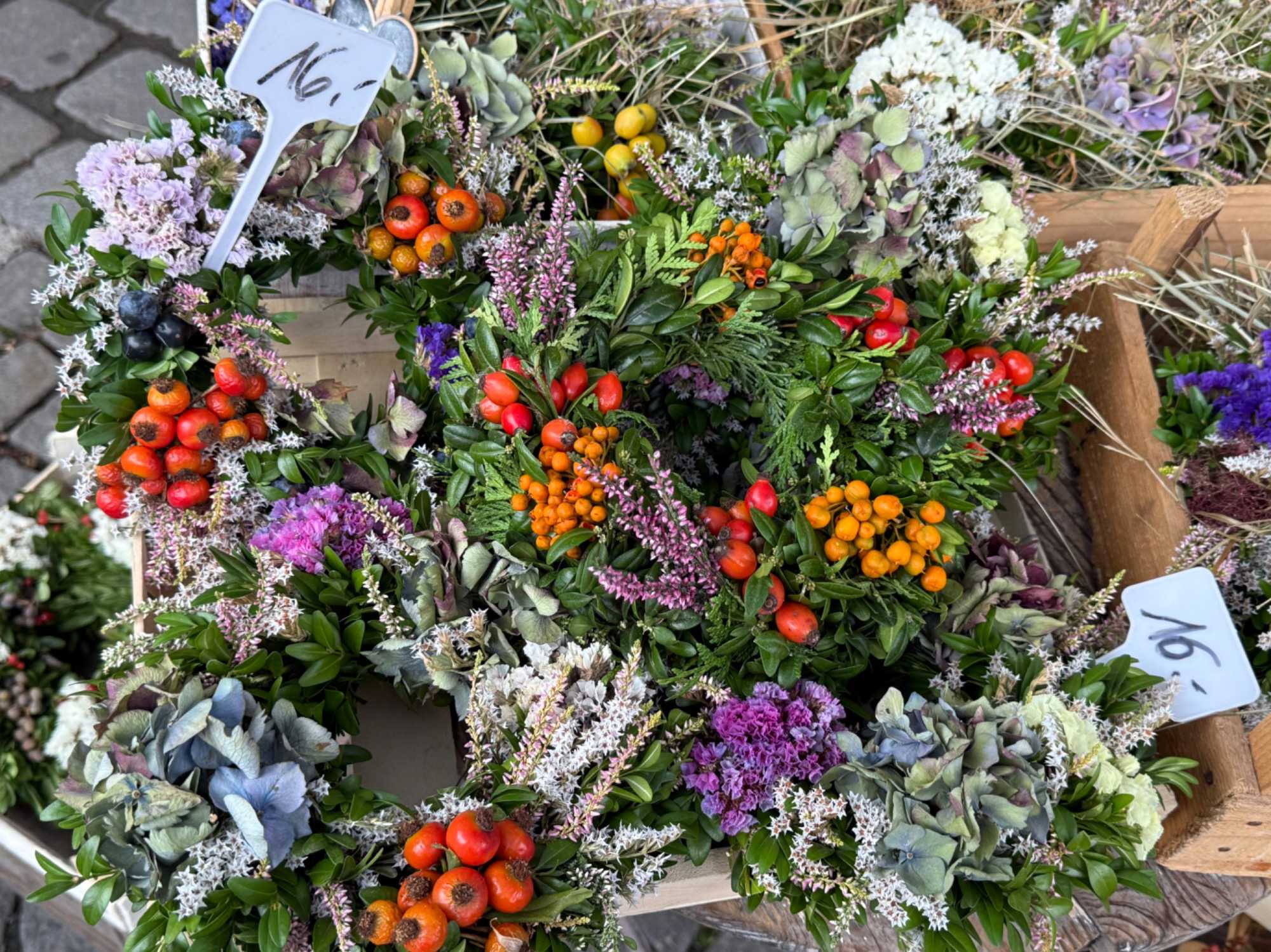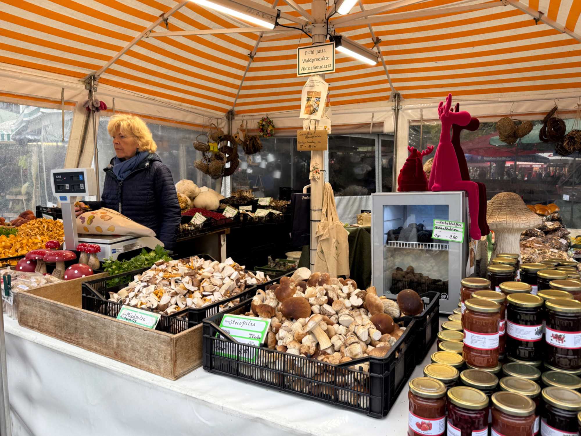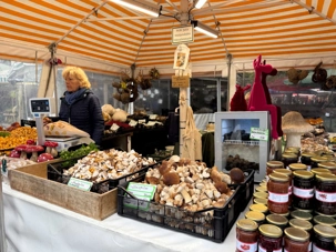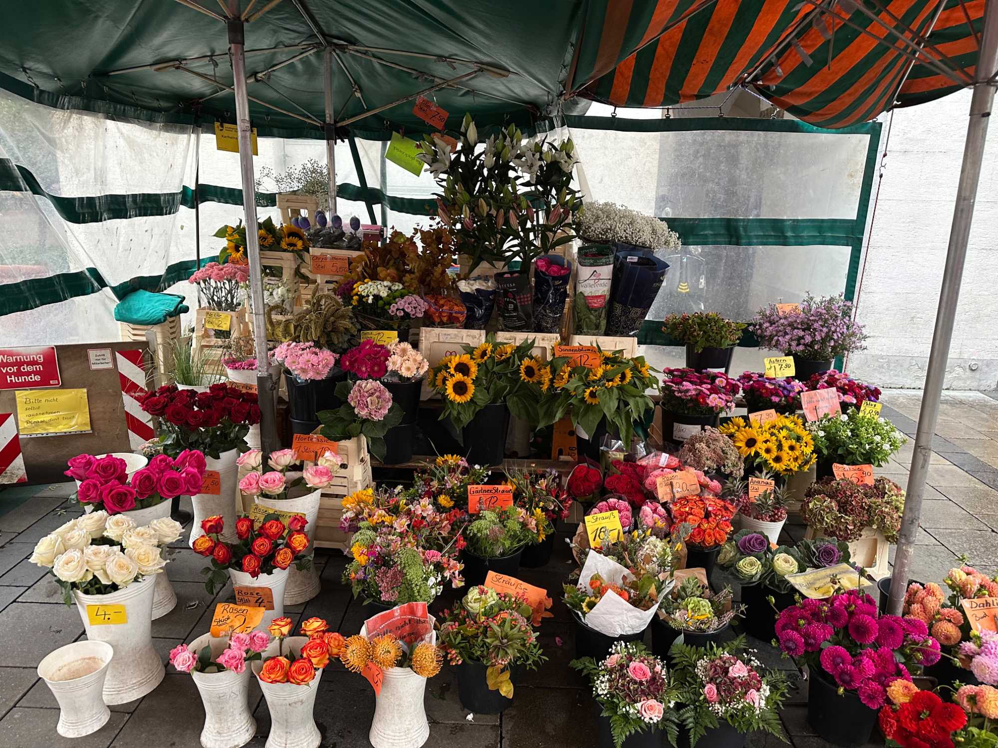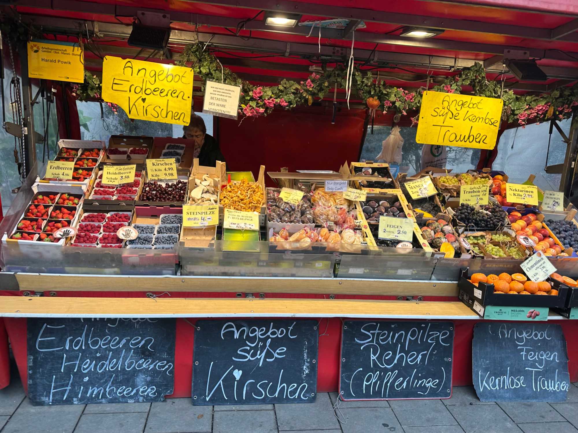 L’après-midi, nous retrouvons nos guides locales Valérie et Catherine pour une visite guidée d’une heure de Munich. Afin de profiter pleinement de leurs explications et d’explorer la ville dans les meilleures conditions, le groupe est divisé en deux. Chacun part ainsi à la découverte des trésors de la capitale bavaroise. Parmi les lieux emblématiques que nous découvrons figurent la Marienplatz, cœur vibrant de Munich avec son Nouvel Hôtel de Ville (Neues Rathaus) et sa célèbre horloge animée, la majestueuse Frauenkirche aux deux clochers jumeaux, symbole de la ville, ainsi que la Viktualienmarkt, marché coloré et gourmand qui respire l’authenticité bavaroise.