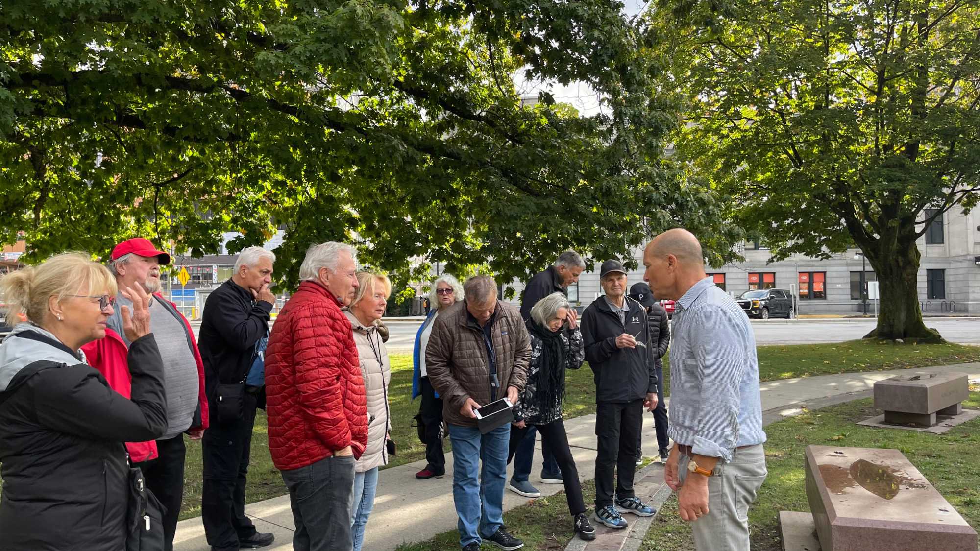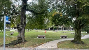 Nous nous sommes arrêtés à la Place du 6 décembre. Ce parc a été nommé en mémoire des 14 femmes assassinées lors de l'attentat antiféministe survenu à l'École polytechnique le 6 décembre 1989. Il veut rappeler les valeurs fondamentales de respect et condamner toutes les formes de violence à l'encontre des femmes.