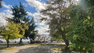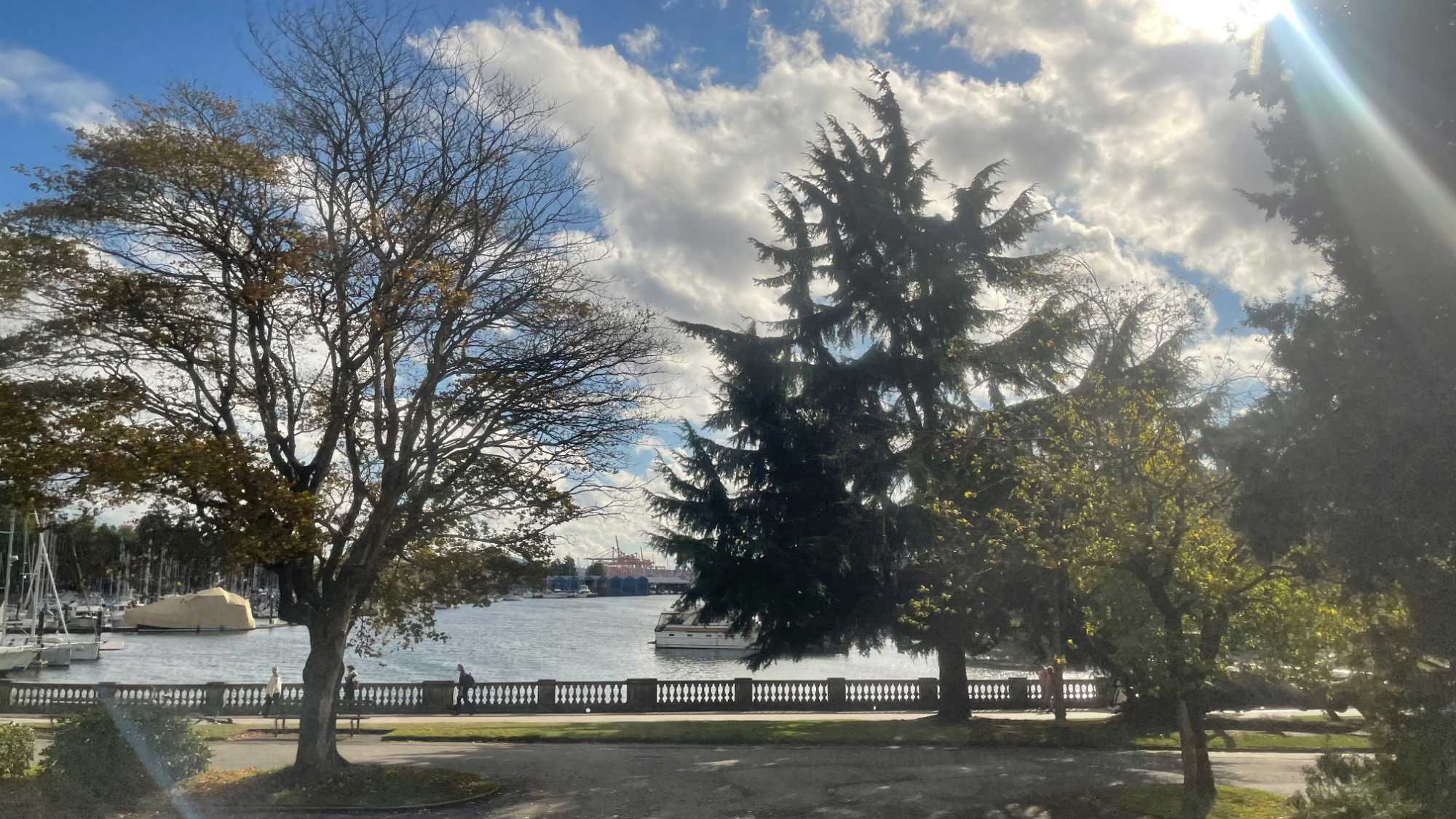 On voit un peu plus les couleurs s’installer dans les arbres car il y a plus de feuillus que dans les Rocheuses ou que sur l’île de Vancouver et ça nous fait penser à vous qui êtes au Québec. On arrive.