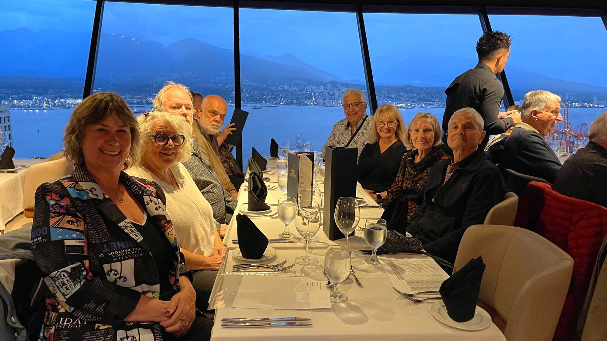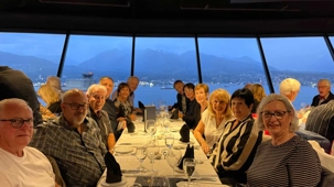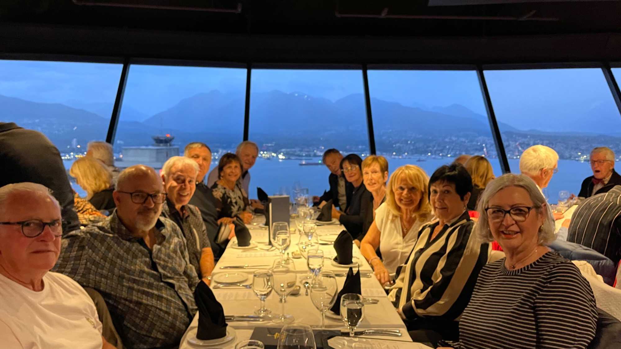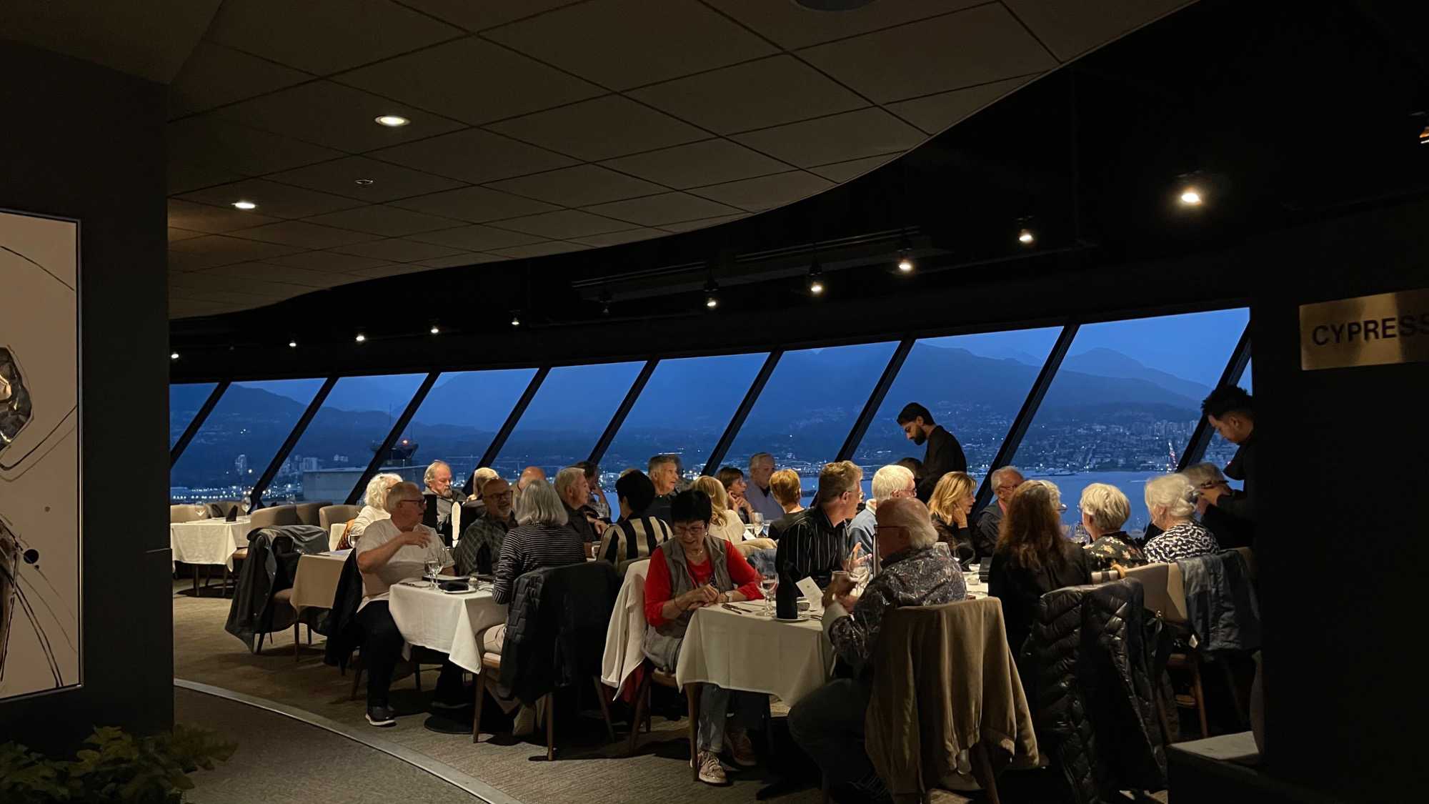 Nous quittons le nord de Vancouver et revenons à notre hôtel. Certains en profitent pour faire une petite sieste, pour faire des achats de dernières minutes ou pour faire le circuit, à pied, que Bill nous a fait faire en autobus -évidemment pas tout le circuit- et c’est à 18 h 20 que nous nous rencontrons pour…aller souper. Ne soyez pas inquiets on mange TRÈS bien dans cette tournée de l’Ouest Canadien. Donc à trois pâtés de maison de l’hôtel, le Top of Vancouver offre une restauration raffinée au-dessus du paysage urbain de Vancouver. Une cuisine continentale exceptionnelle, récompensée par des prix prestigieux, le tout dans un cadre exceptionnel, avec une vue panoramique imprenable sur Vancouver, les montagnes côtières et l'immensité de l'océan, un restaurant perché à 548 pieds de hauteur.