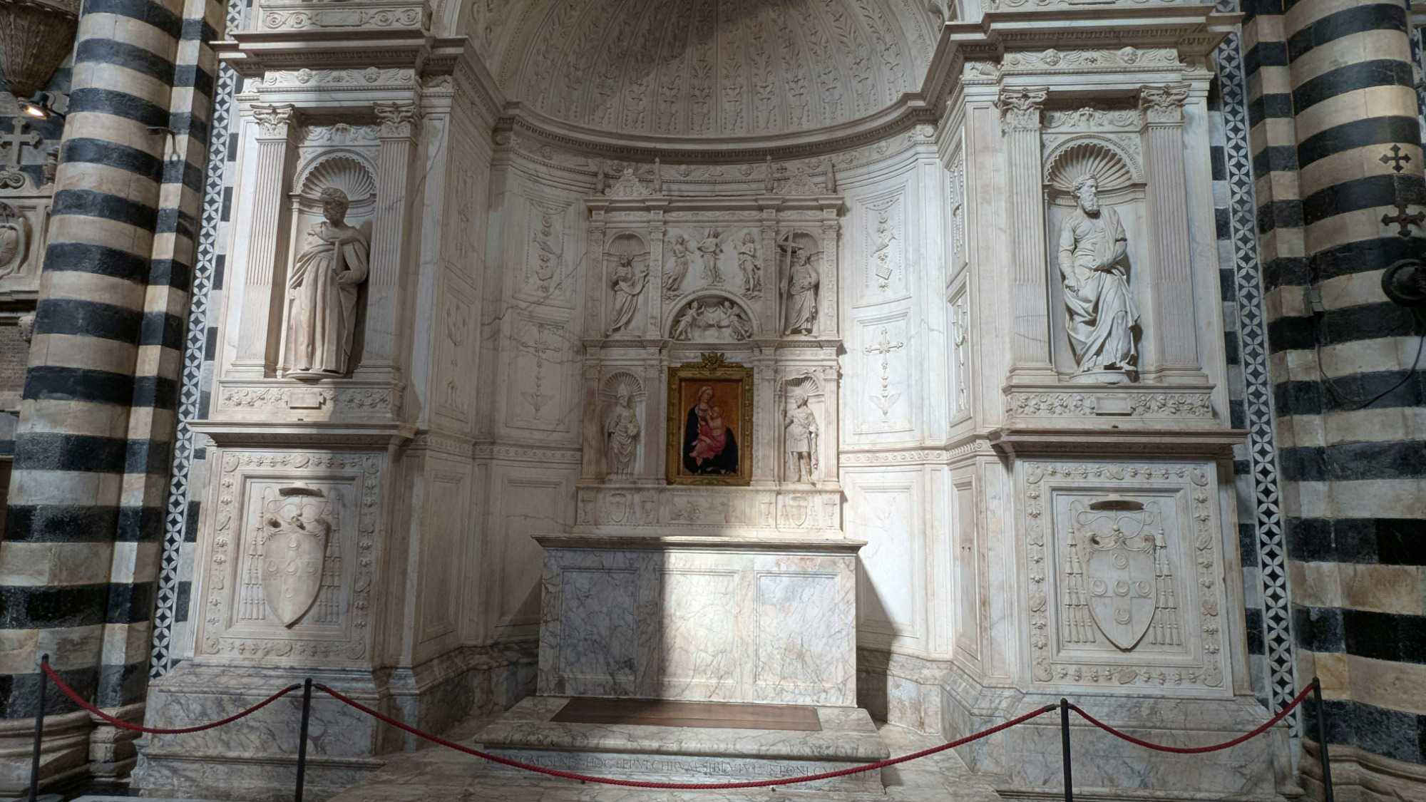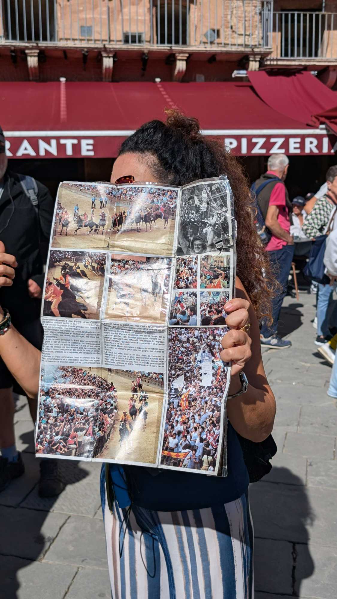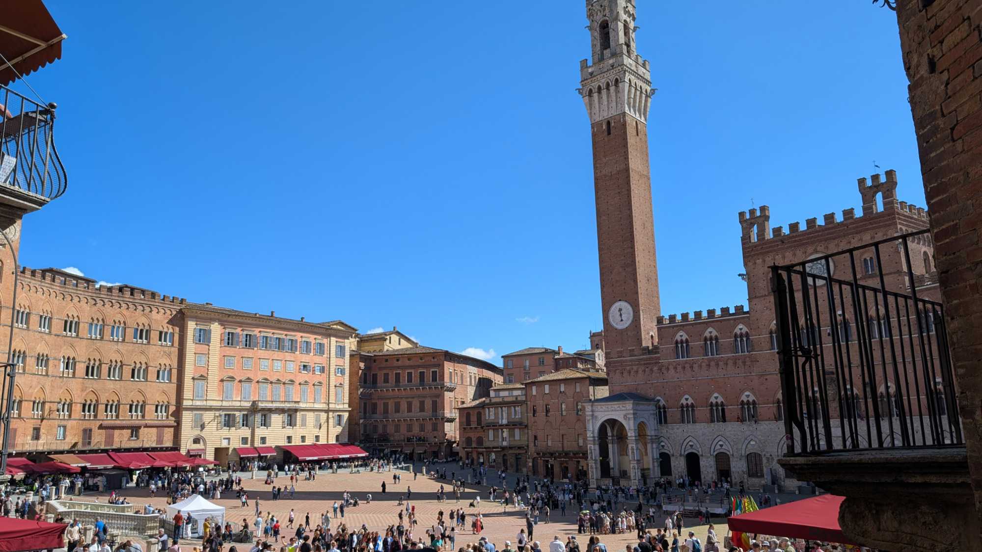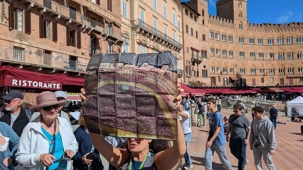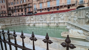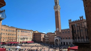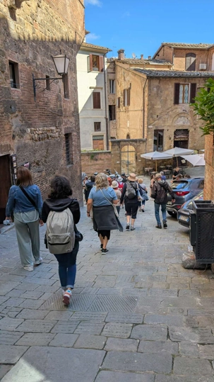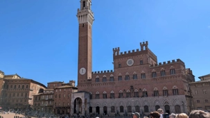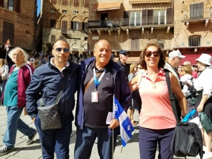 Nous sommes arrivés à Sienne, "Siena en italien" dans la Haute Toscane et l'Ombrie. Populations d'environ 54,500 habitants. Deux des plus belles régions d'Italie. La ville de Sienne est célèbre pour son patrimoine artistique et pour la course du Pallo delle Contrade. Celle-ci à lieu sur la piazza del Campo. Nous avons eu le plaisir de profiter d’une visite à pied de cette ville médiévale historique et inscrite au patrimoine mondial de l’UNESCO. Sur place, nous avons bénéficié des services de l’unique Clara, Claire en Français, une guide locale colorée avec qui Fernando collabore depuis plus de 25 ans. Digne des plus grandes actrices, elle nous a livré une performance grandiose et divertissante ! Nous sommes vraiment privilégiés de pouvoir compter sur des guides de qualité, sélectionnés avec soin. Accompagné de Clara, le groupe a découvert les trésors de Siena. Dès ses premières paroles, elle ne manque pas de mentionner que " sa contrade " a remporté les honneurs lors de la célèbre course de chevaux qui s’y tient depuis le XIIIe siècle. Depuis un certain, Florence et Sienne ont eu des confrontations, alors nous ne manquons pas de la taquiner comme demandé par Fernando.