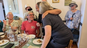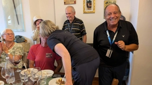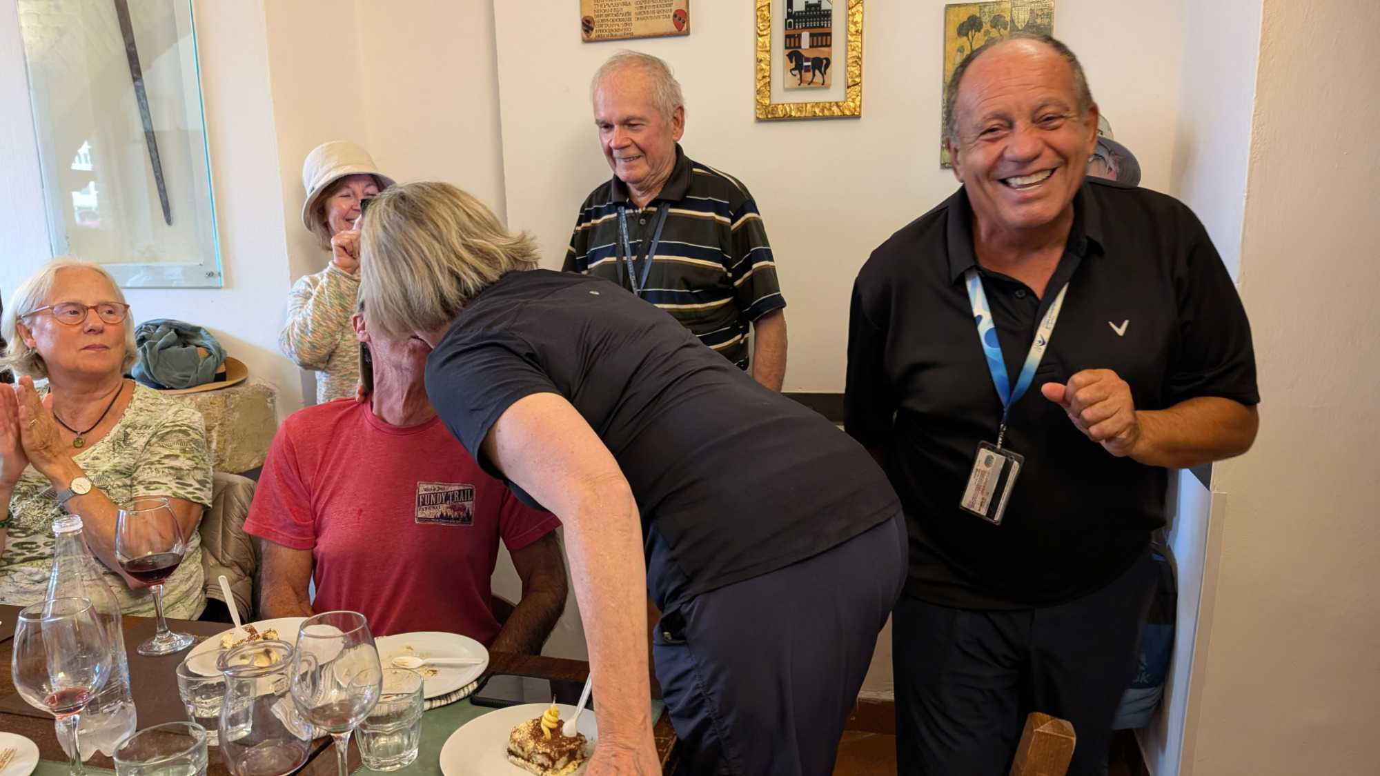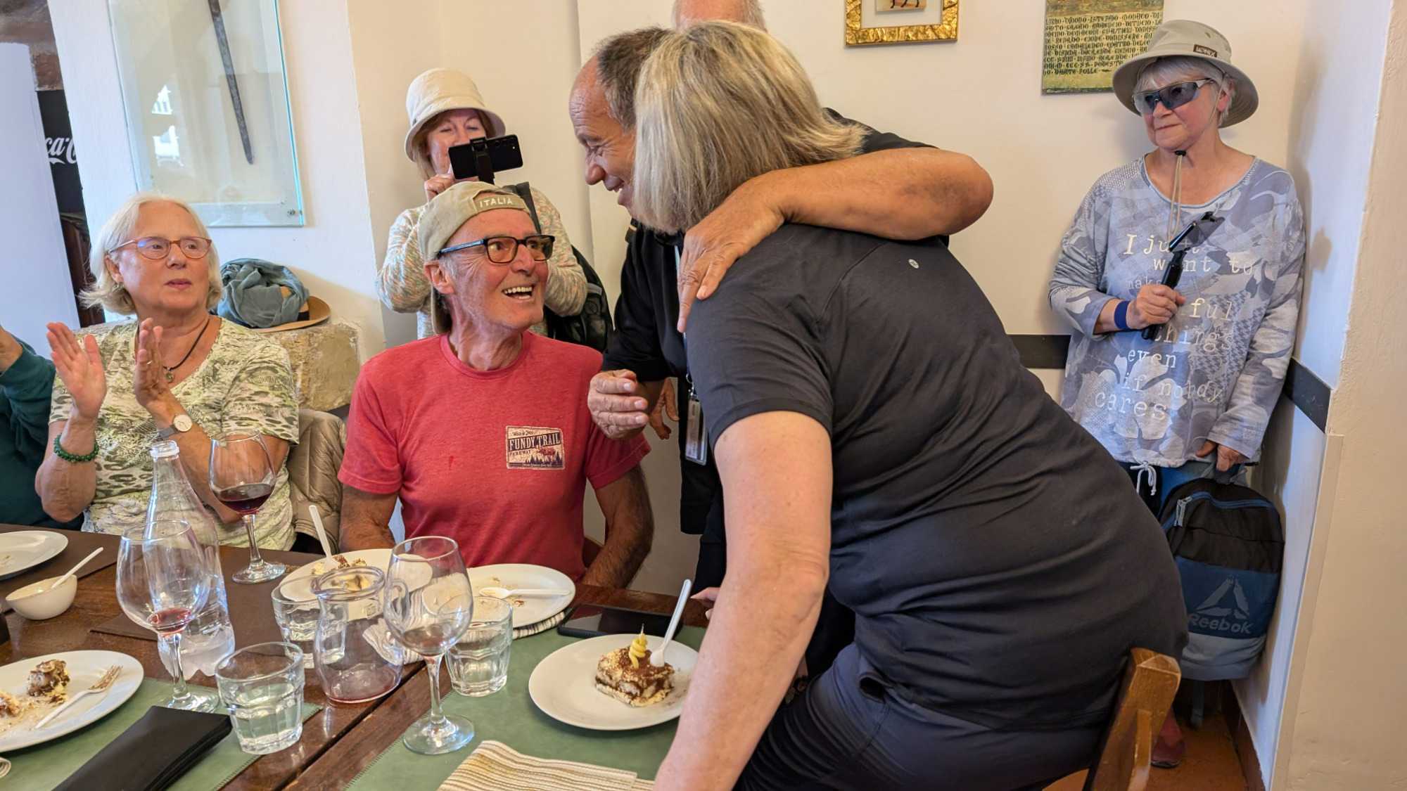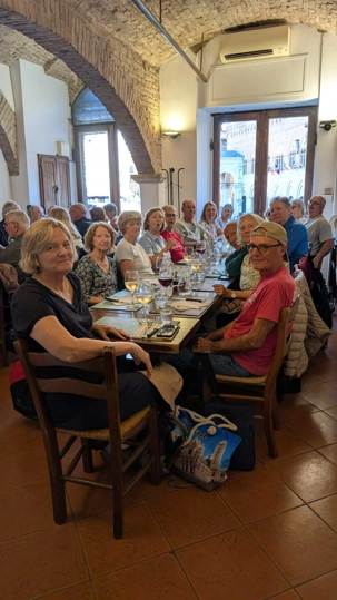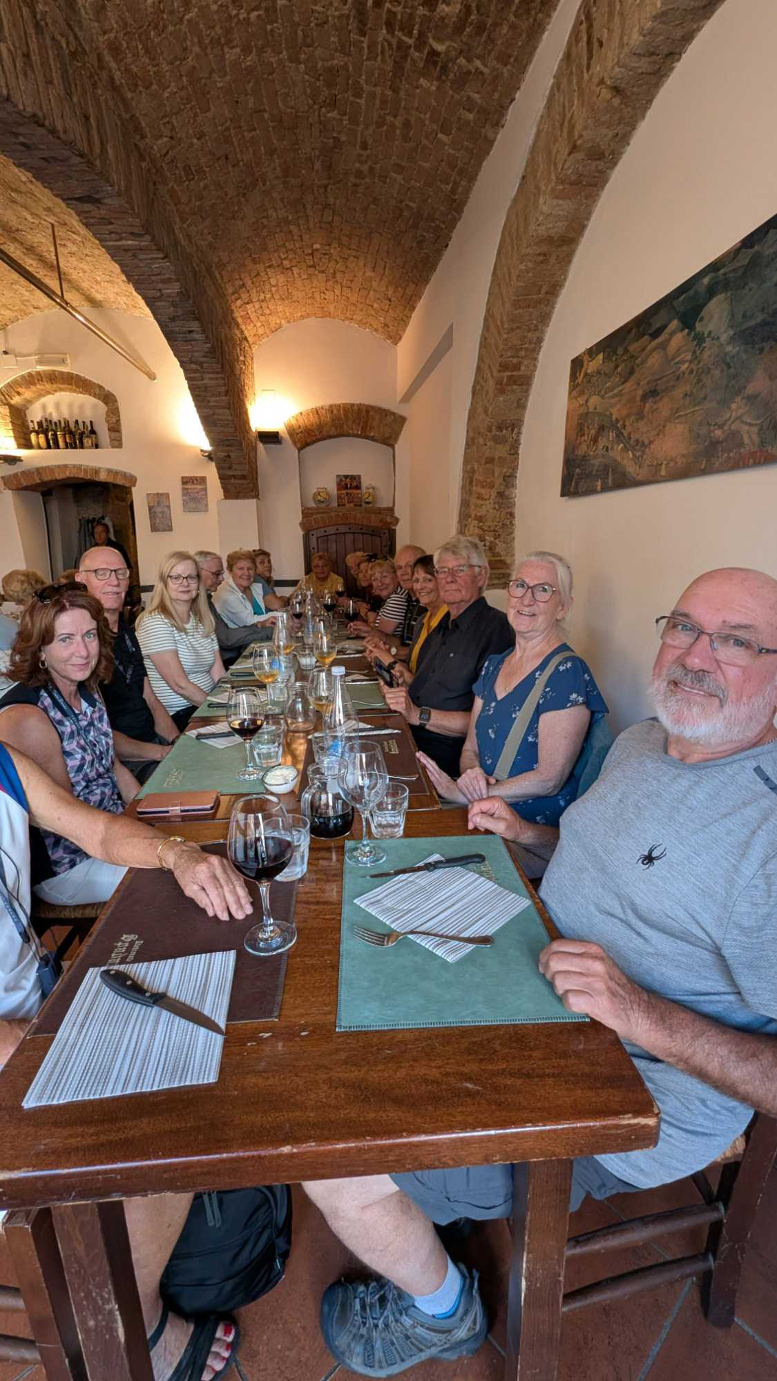 Après cette promenade, le groupe s’est arrêté au Ristorante Pizzaria Spadaforte, situé sur la Piazza del Campo. Nous y avons dégusté un plat typique de la Toscane, une entrée de pâte unique au restaurant "Pici" spécialité de la région et du pollo alla cacciatore, un poulet sur coffre, en référence aux chasseurs de l'époque.