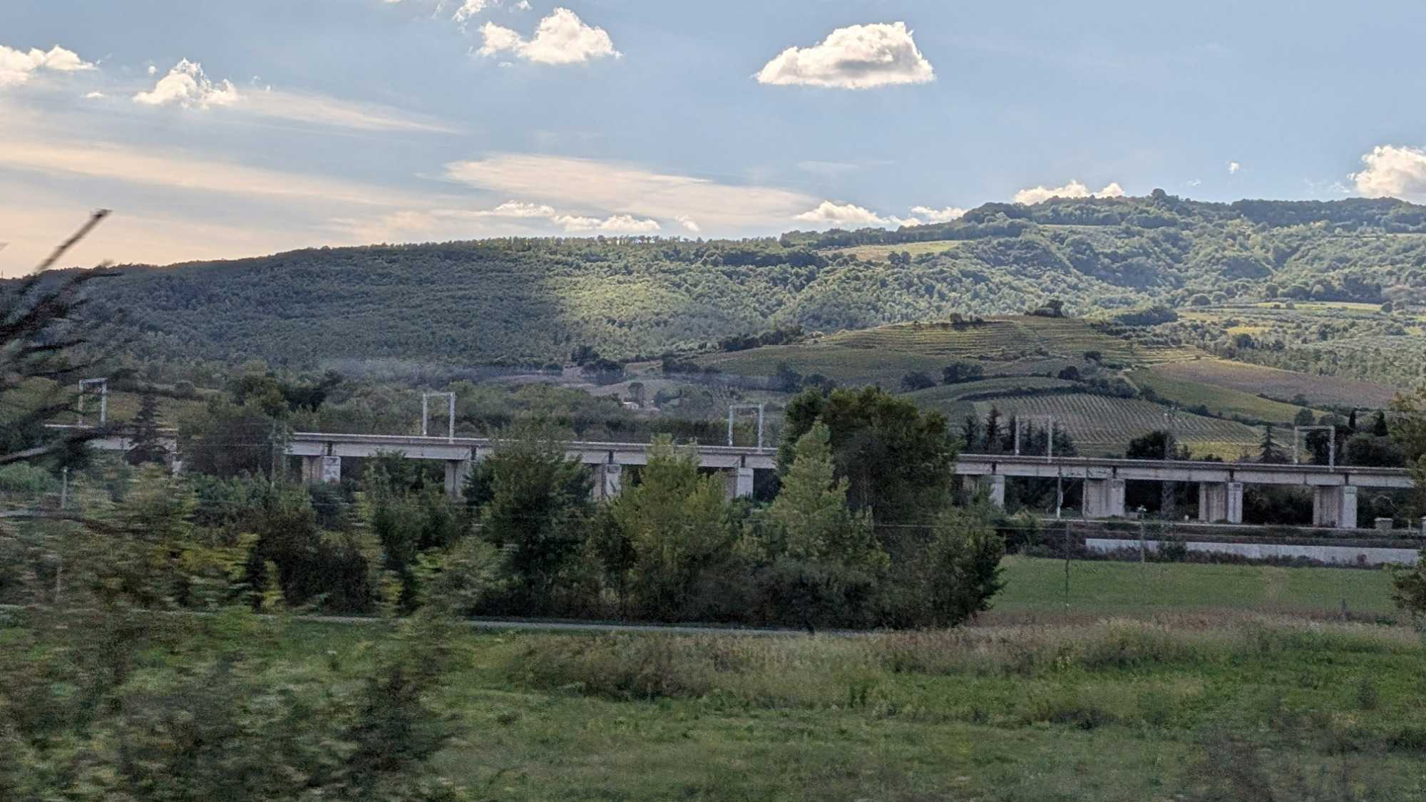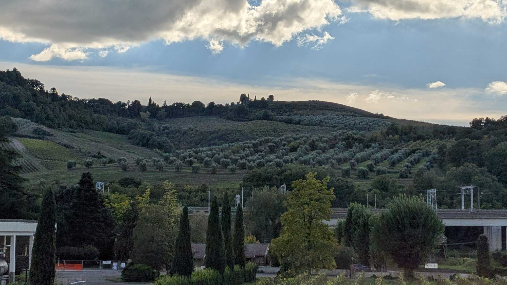 En fin d’après-midi, nous avons repris la route pour un trajet d’un peu plus de deux heures trente en direction de Rome. Les paysages splendides des régions de Toscane, d’Ombrie, puis du Latium se sont déroulés devant nos yeux, nous émerveillant par leur beauté naturelle, entre champs et collines. En chemin, Fernando nous décrit des pans d’histoire (dates des créateurs, peintres, inventeurs de l'époque, Léonardo da Vinci, Michael Ange, Antonio Meucci , Marconi, Olivetti)et parle de ses expériences de vie, le tout ponctué d’anecdotes et de quelques blagues.