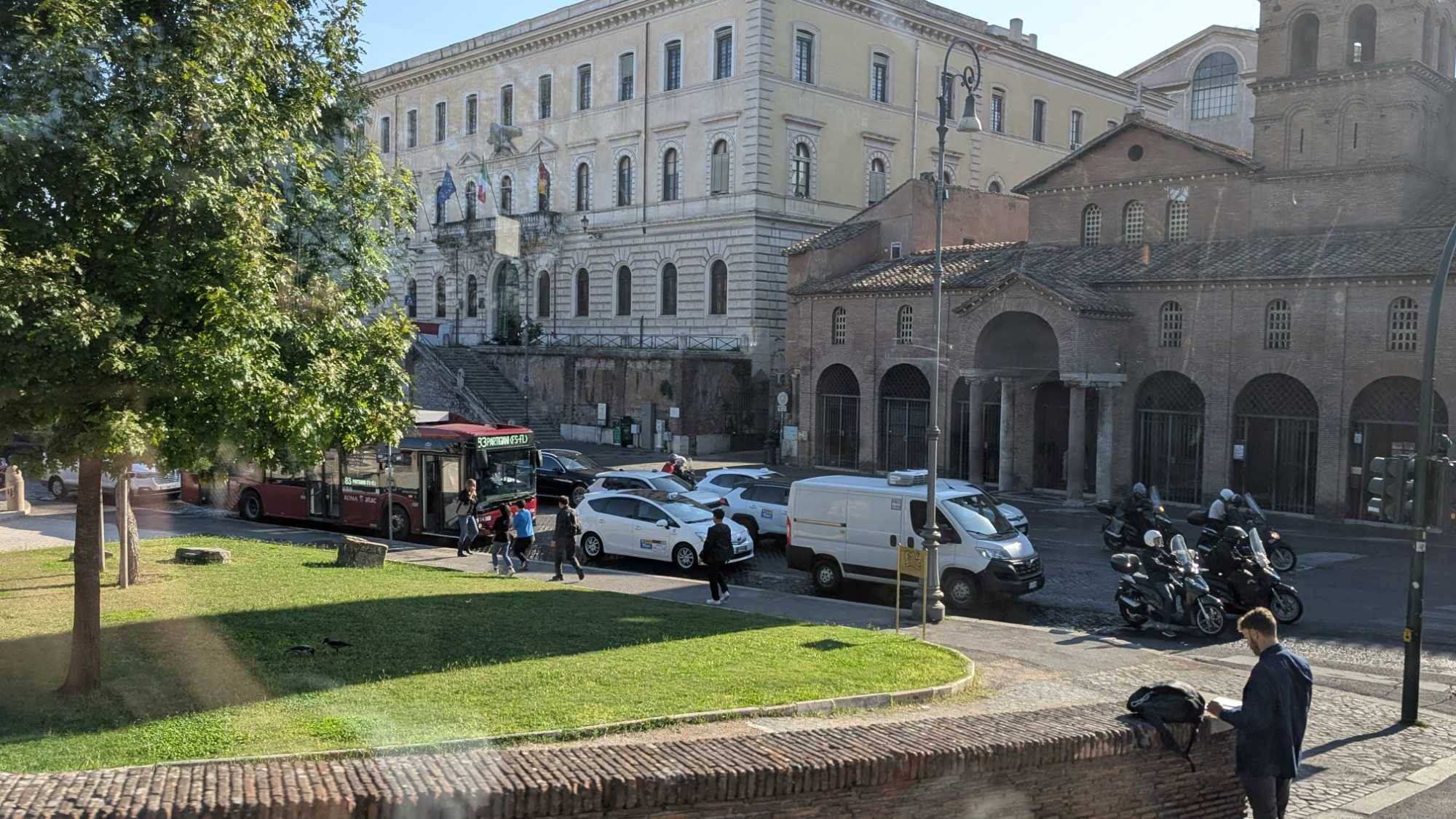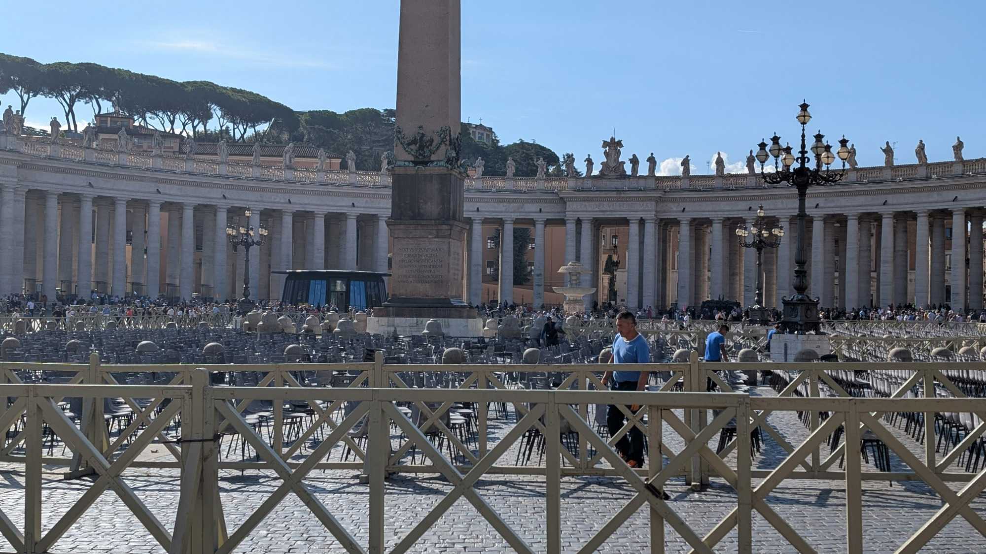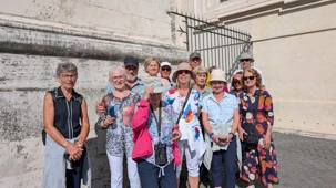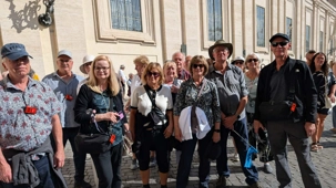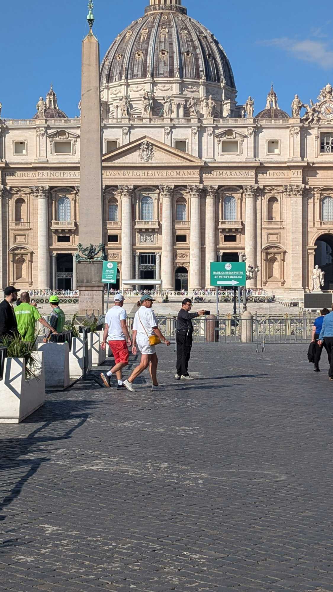 Départ après le petit déjeuner destination des plus convoitée et unique: la Cité du Vatican. Le plus petit État souverain du monde, enclavé au cœur de Rome. Il compte 832 habitants sur une superficie de 0, 44km². En raison des règles strictes, nous rencontrons nos deux guides César et Francesca. Le groupe ne peut inclure que vingt personnes. Comme il y a beaucoup de monde, il est crucial que nous restions ensemble afin de ne perdre personne. Malheureusement, lors de notre entrée avec le premier groupe guidé par Francesca, quelques personnes n'ont pas pu entrer. Les règles sont sévères et n'ont pas permis à certains membres du groupe de passer. Ces personnes ont dû attendre au point de rencontre.