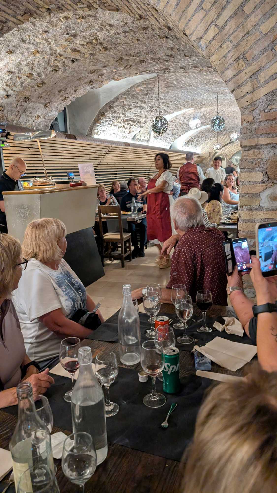 En début de soirée, nous profitons d’un souper bien particulier avec animation musicale chansons italiennes avec des voies extraordinaires, une soirée au Ristorante Le Terme del Colosseo très animée. C’est dans un unique décor de cave voutée que nous avons dégusté les spécialités romaines.