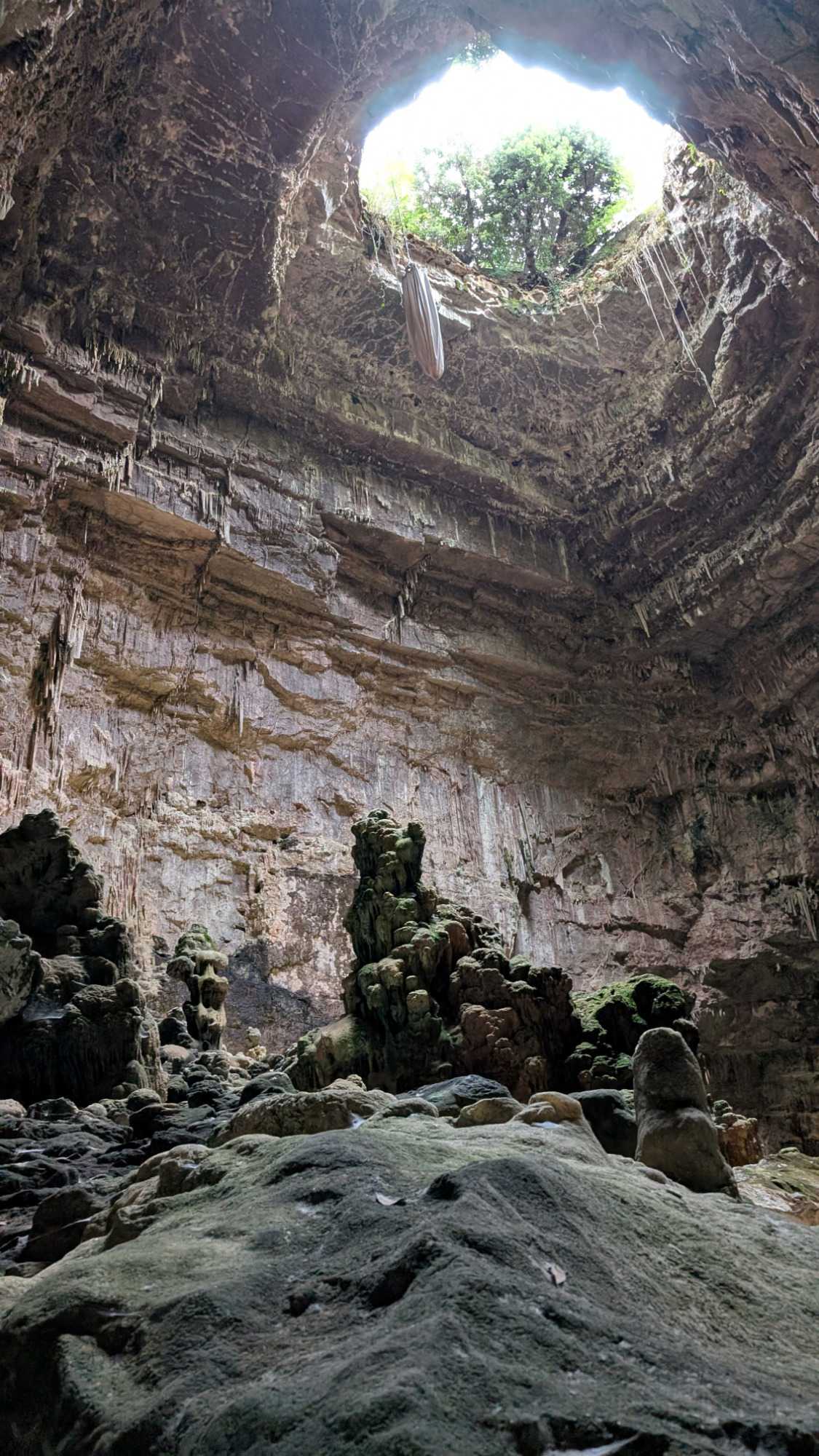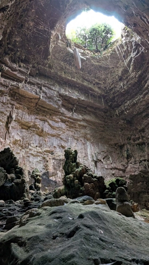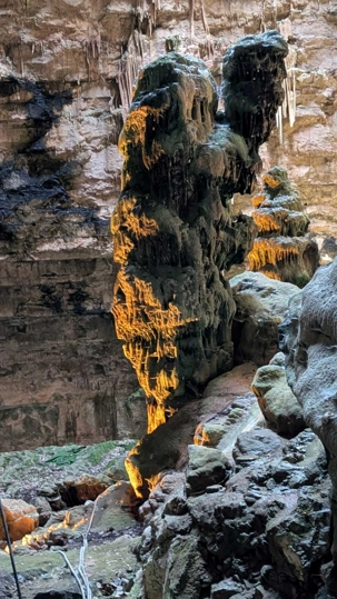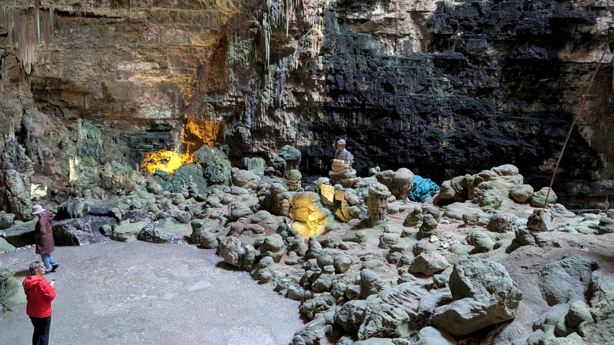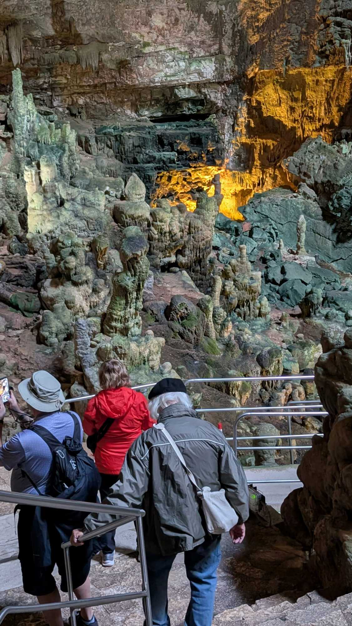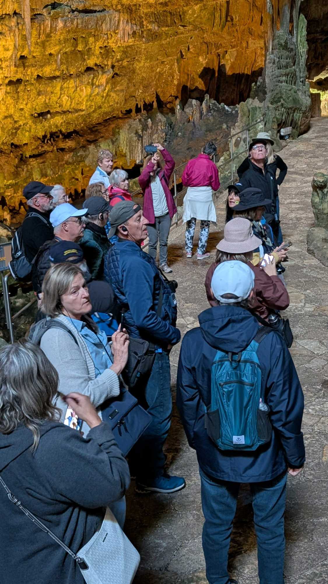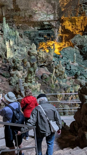 Les guides de la grotte nous éclairent et veillent à notre sécurité tout au long de la visite. Il est essentiel de prêter attention à l'endroit où nous mettons les pieds, car les grottes peuvent être glissantes en raison de l'humidité et de la présence deterre. Pour assurer le bien-être de tous, je me tiens à l'arrière du groupe afin de soutenir les voyageurs qui avancent à un rythme plus lent. Restons vigilants et profitons de cette expérience en toute sécurité.