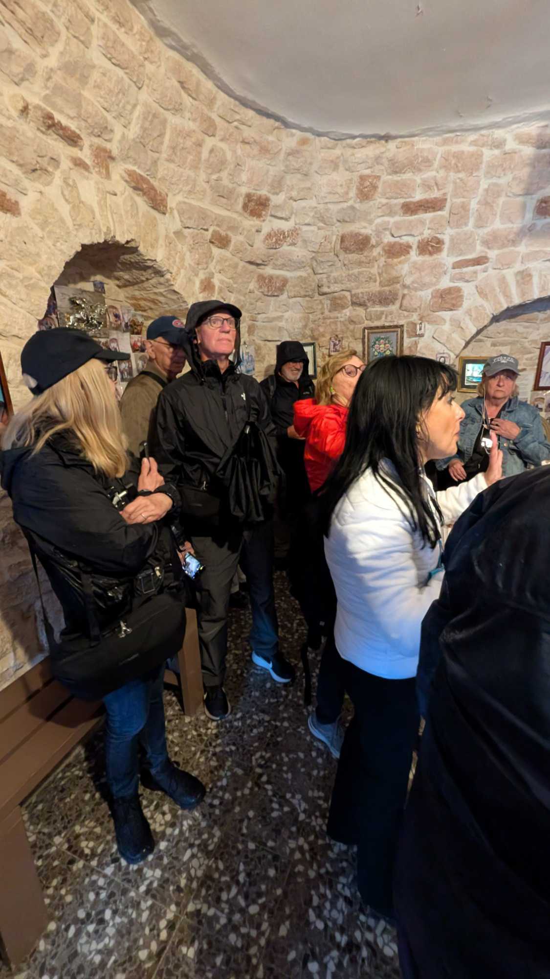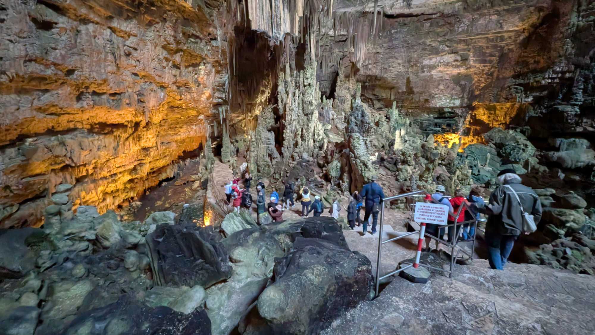 Vraiment spectaculaire, une merveille naturelle des Pouilles ou « Puglia » en italien. À notre arrivée, nous avons été accueillis par notre guide Anna qui nous a accompagnés tout au long de cette exploration fascinante. Nous faisons la grotte la plus longue soit 3 kilomètre. Ses Grottes, des torrents souterrains, s’étendent sur plus de 3 348 mètres et plongent à une profondeur impressionnante de 122 mètres. Le point culminant de notre visite a été la découverte de la « Grotte Blanche », réputée comme l’une des plus belles au monde, avec ses spectaculaires formations de stalactites et stalagmites aux teintes éclatantes. De l'intérieur, l’atmosphère fraiche et humide d’environ 18°C ajoutait une dimension presque mystique à cette aventure souterraine.