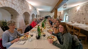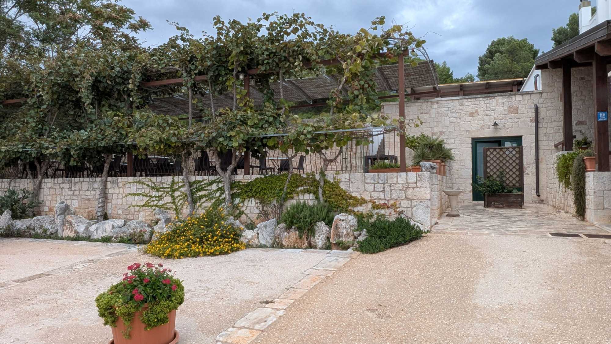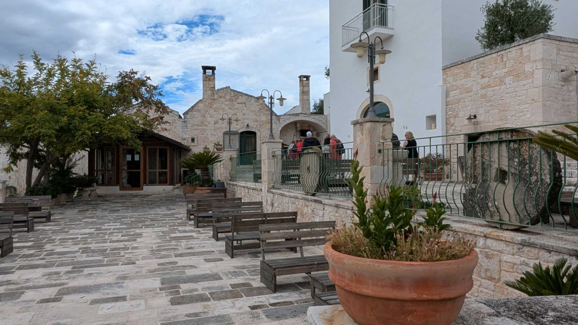 Après cette immersion sous terre, nous nous sommes arrêtés pour le dîner à la somptueuse Masseria Torricella, situé à quelques kilomètres d’Alberobello. Pour ceux qui ne le savent pas, une masseria est une ferme fortifiée typique du sud de l’Italie, soit Agrotourisme, particulièrement répandue dans les Pouilles. Sur cette terre rouge, où des millions d’oliviers prospèrent depuis des siècles, nous avons savouré un repas de quatre services succulents dans un cadre enchanteur.