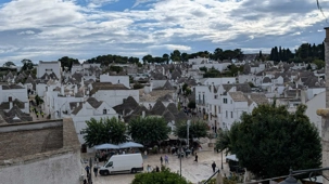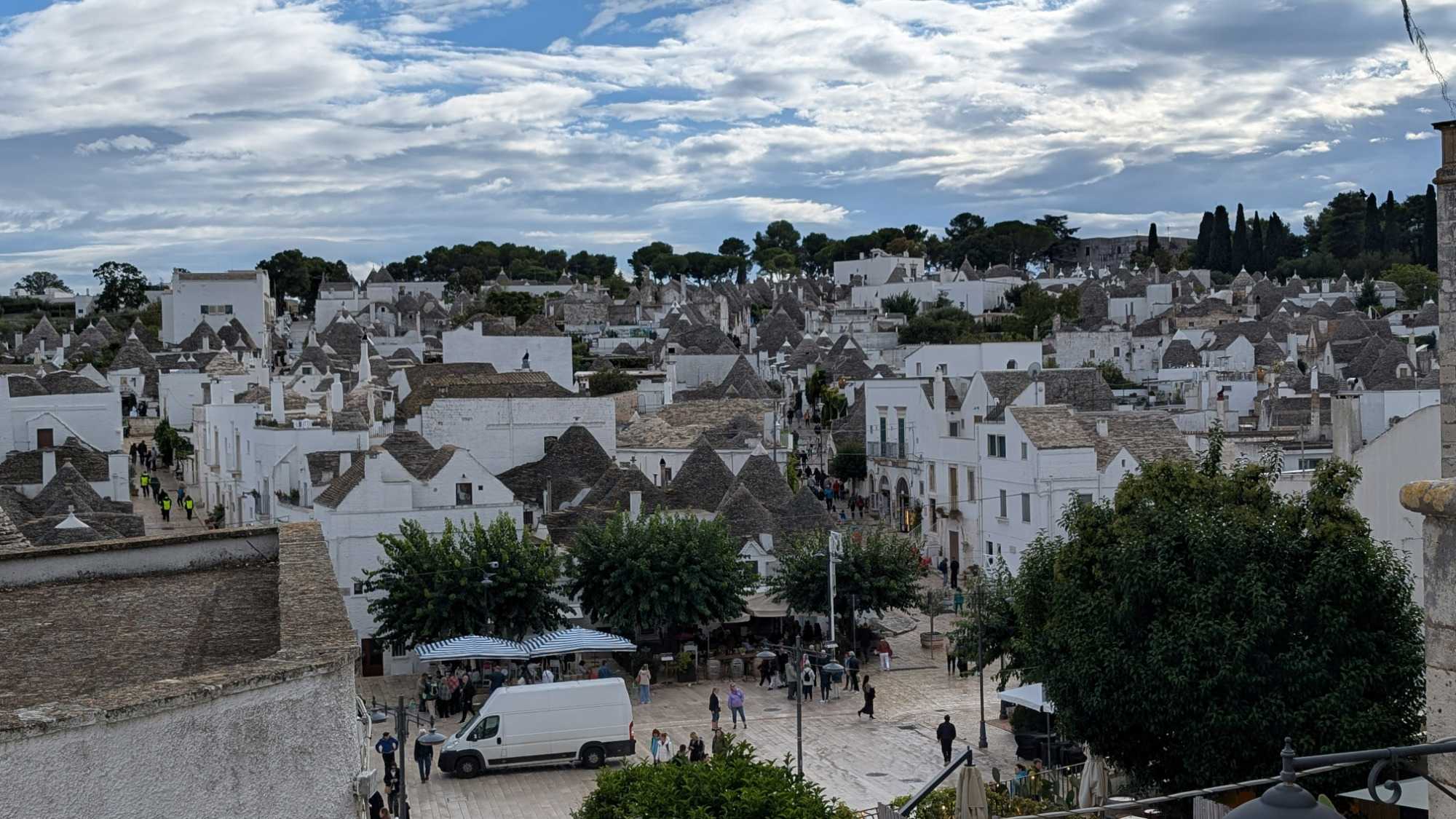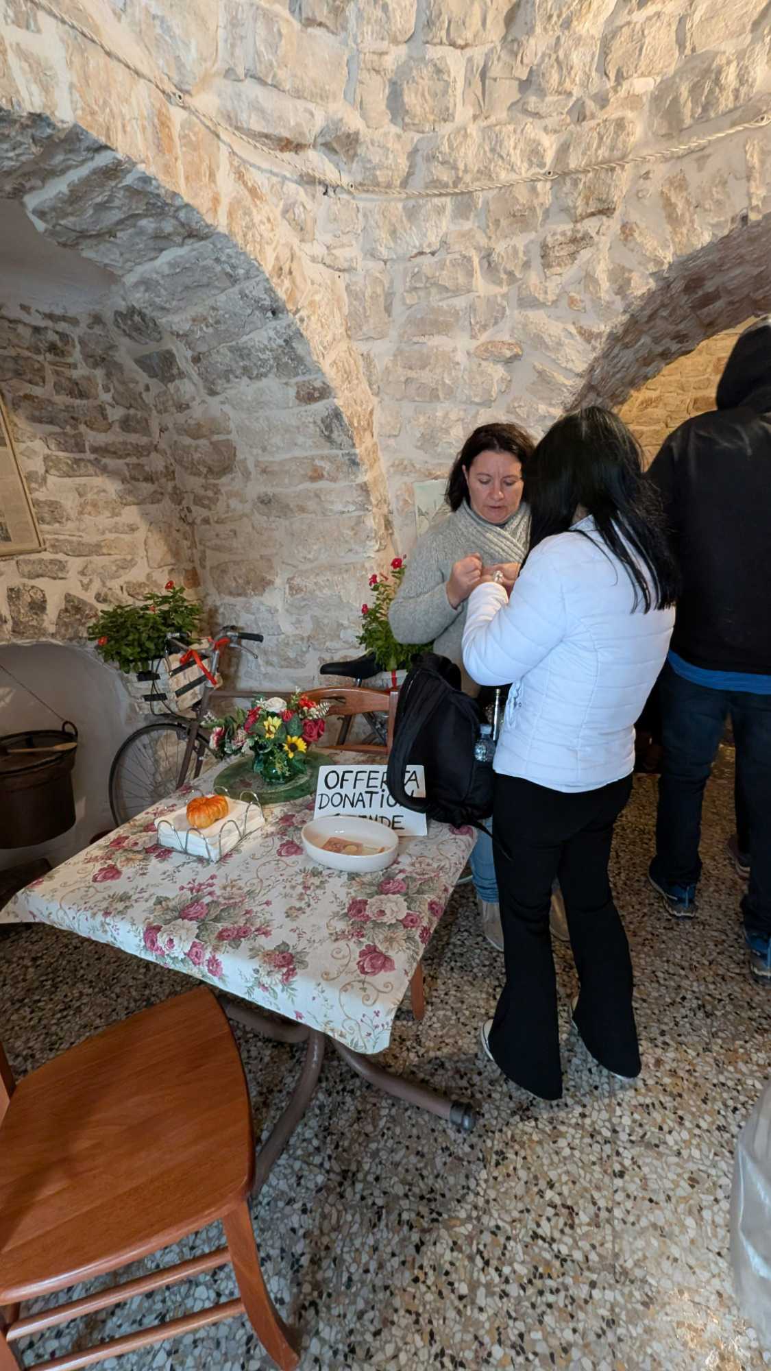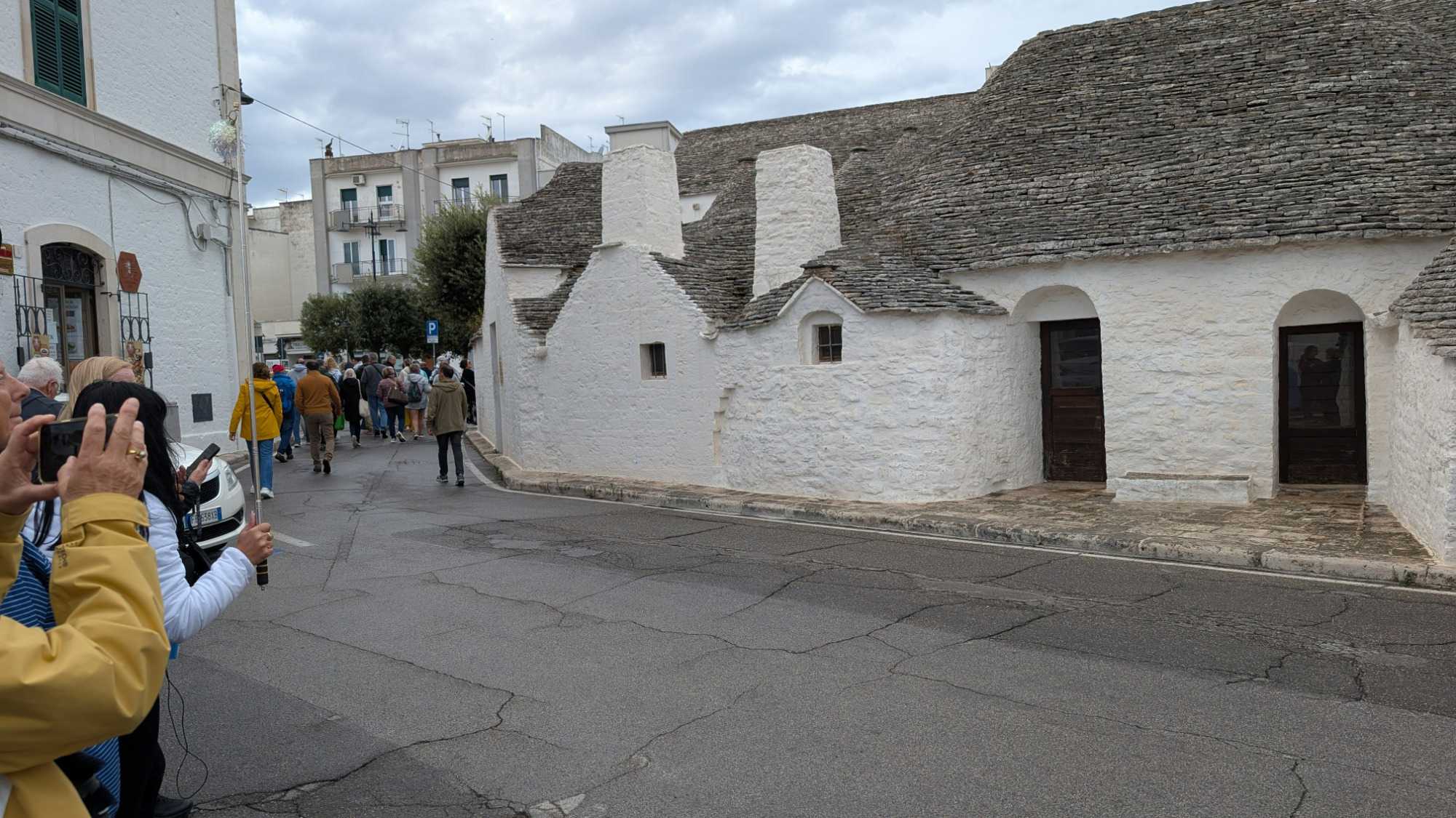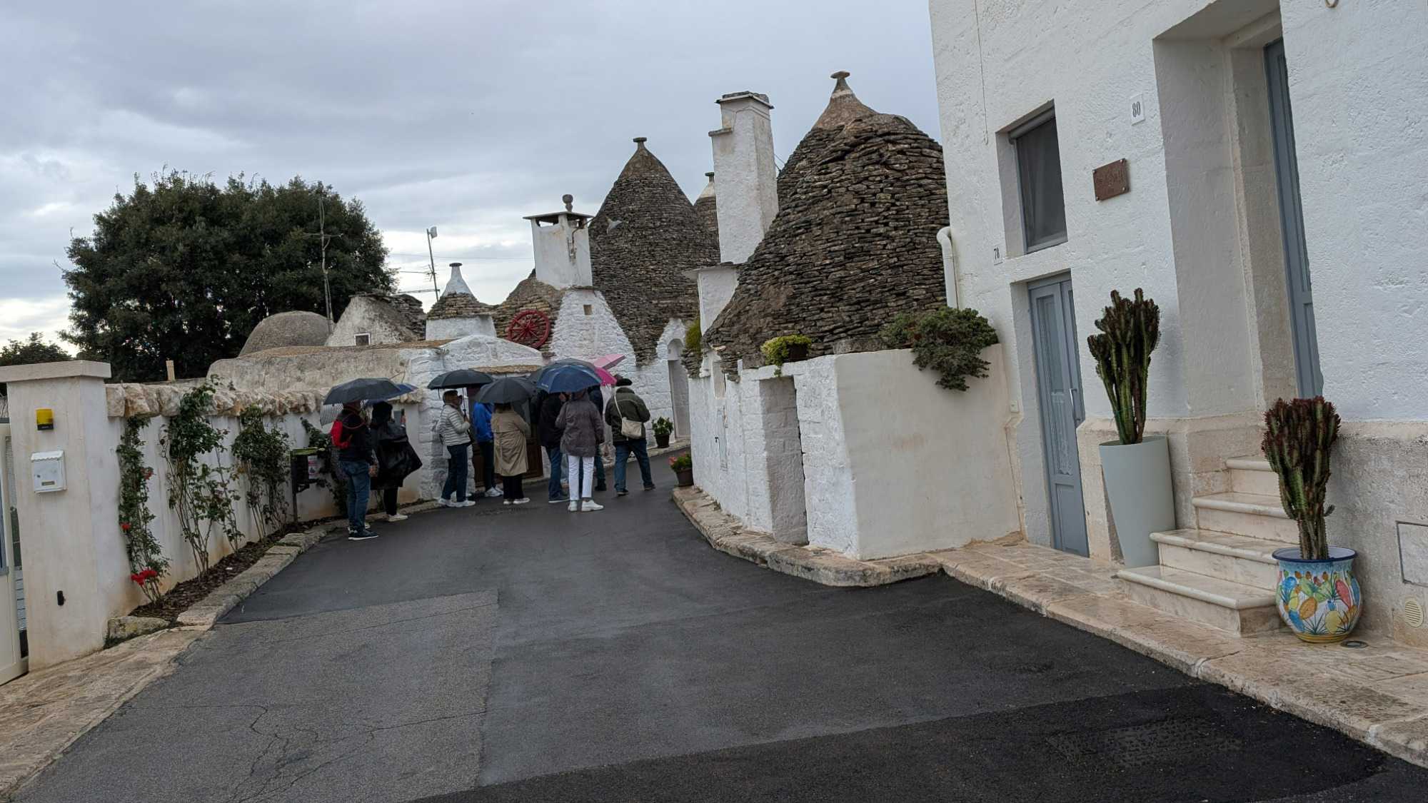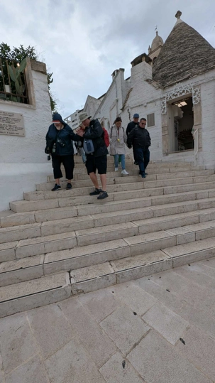 En après-midi, en compagnie de notre guide, la magie a continué avec la visite d’Alberobello, que l’on pourrait aisément comparer à un village sorti de contes de fées. Magique et irréelle, cela me fait penser aux maisons blanches en Grèce ou encore dans le parc de Göreme dans la Cappadoce mais aussi pour certains d'entre nous la série "les Schtroumpfs". Alberobello se veut célèbre pour ses Trulli, des maisons traditionnelles en pierre sèche avec des toits coniques, uniques au monde. Notre guide nous a fait découvrir le quartier des Trulli, ainsi que les alentours de la piazza. Nous avons également eu la chance de pénétrer dans l’un de ces curieux édifices, découvrant la simplicité et l’ingéniosité de leur construction. Leur méthode de vie avant.