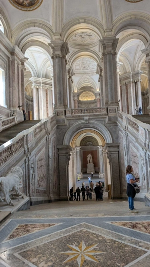 Le Palais Royal de Caserta (Reggia di Caserta) est l’une des résidences royales les plus impressionnantes d’Europe, et souvent comparées au château de Versailles en France et nous avons le privilège de le visiter. Construit pour les rois Bourbon de Naples, il symbolise la grandeur et le pouvoir de cette dynastie au 18e siècle. Il est inscrit au patrimoine mondial de l’UNESCO depuis 1997 en raison de sa splendeur architecturale et de son importance historique. Il est l’un des plus grands palais royaux jamais construits. Il mesure 247 mètres de long et s’étend sur plus de 61 000 m², comporte 5 étages. Il contient plus de 1 200 pièces,