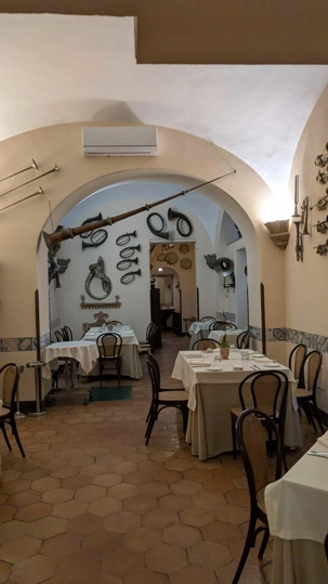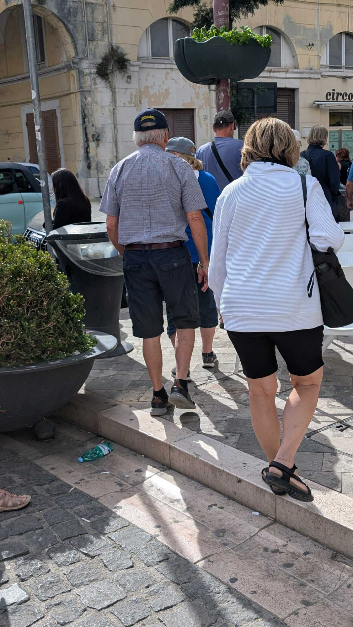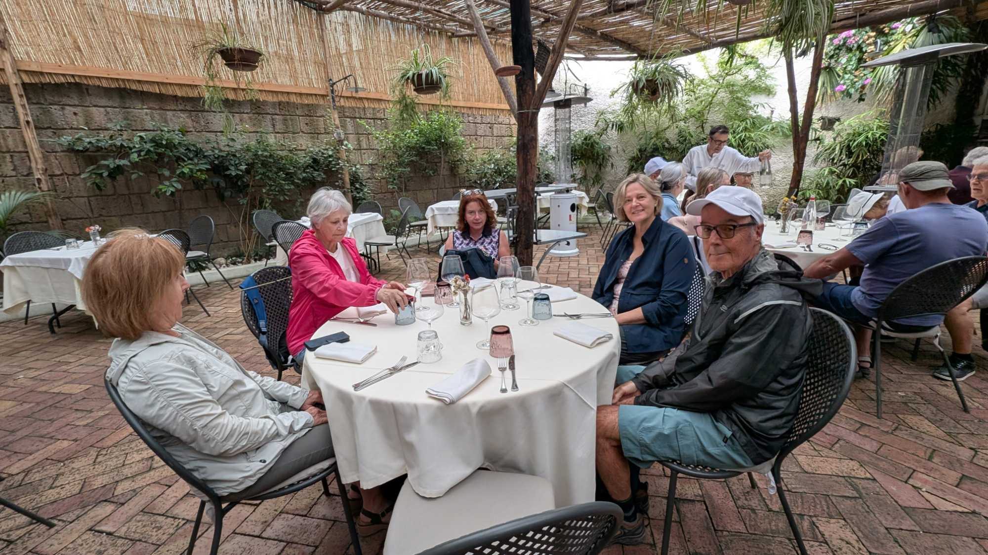 Nous nous y arrêtons pour dîner à La Trattoria di Caserta, où nous dégustons une entrée de pâtes, une salade tiède de poulet et de veau accompagnée d’un certain légume frit, réclamé par plusieurs depuis quelques jours. Bien que l’on mange comme des rois depuis vingt jours, et du bon vin. Le retour au Québec sera certainement, je pense, un petit régime! Hi! Hi!