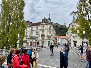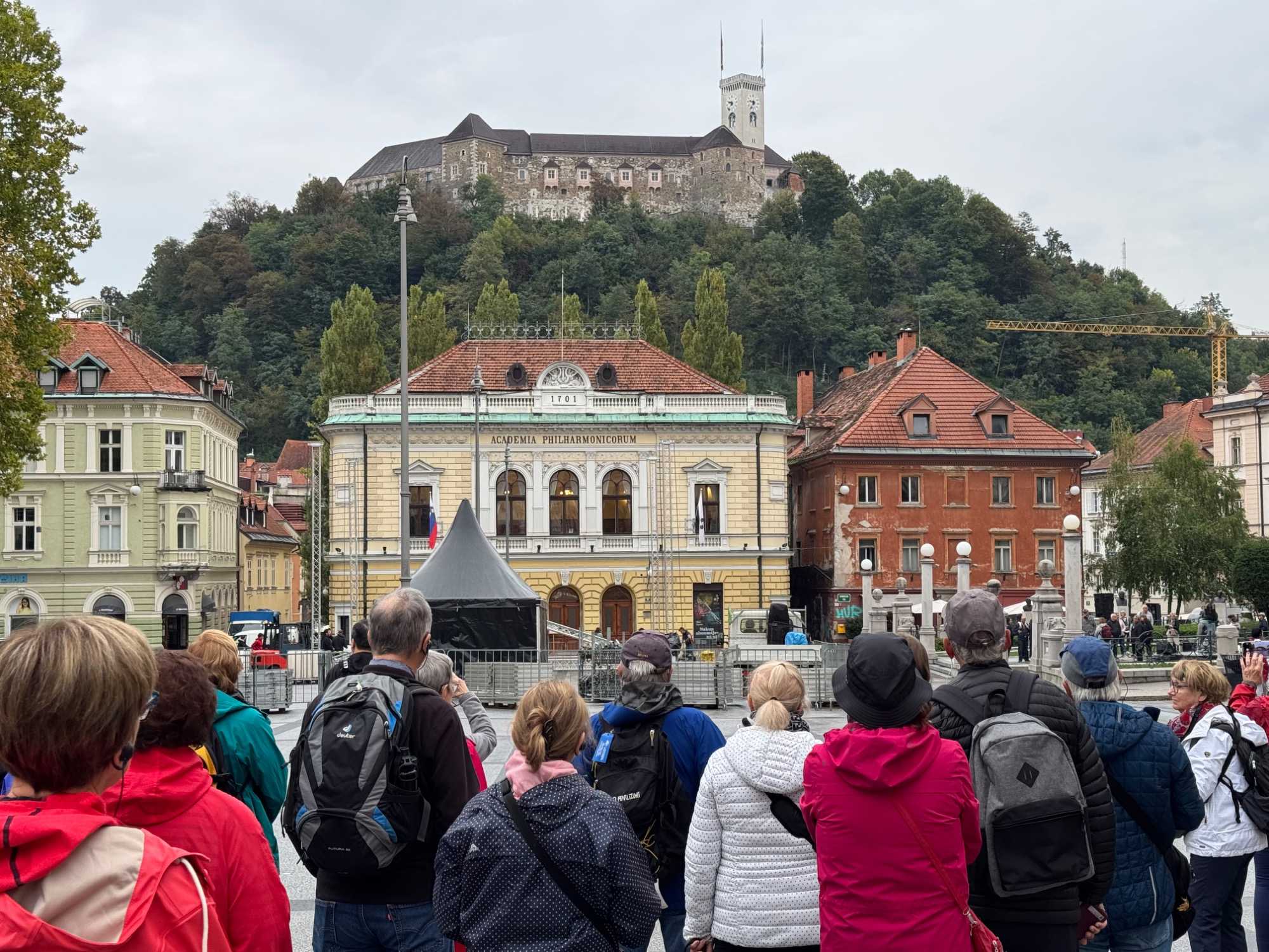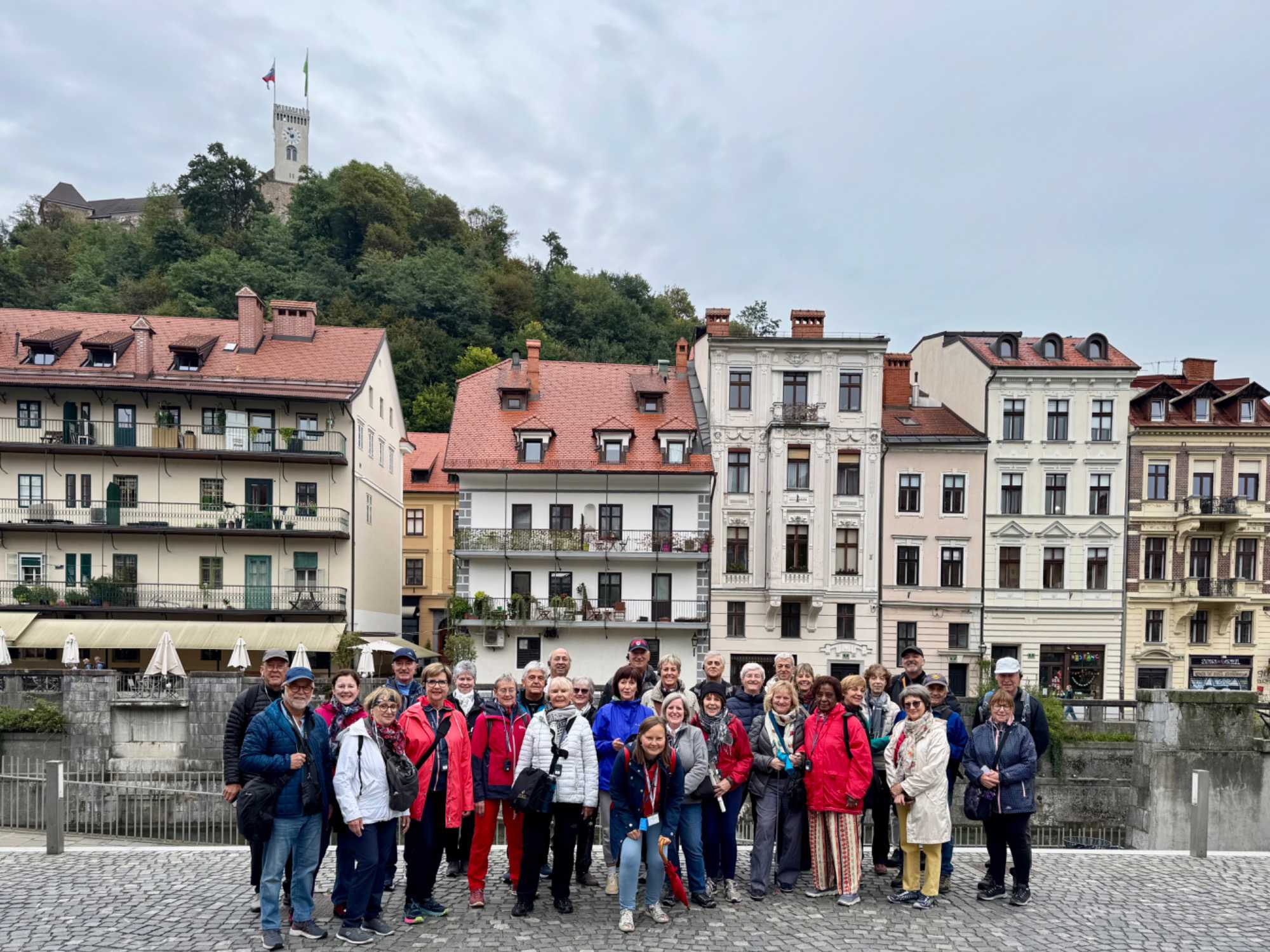 Après une bonne nuit de repos et un excellent petit-déjeuner à notre confortable hôtel, nous sommes en forme pour partir à la découverte de la belle capitale de la Slovénie. Surnommée « la petite Suisse » au temps de l’ancienne Yougoslavie, cette région était perçue comme la plus riche. Aujourd’hui, la Slovénie s’épanouit grâce au tourisme, à l’exploitation forestière et à l’industrie du textile. Majoritairement catholique, le pays est également célèbre pour ses sources thermales, offrant de nombreux centres de bien-être.
