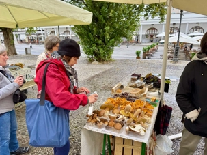 Le marché central de Ljubljana, véritable cœur de la ville, est idéal pour découvrir la gastronomie slovène. Nous y voyons des fruits frais, des fromages, des charcuteries et du miel. En déambulant, nous entendons parler de l’architecte Jože Plečnik, qui a façonné la ville au 20e siècle. Nous profitons des vues sur l’église rose de l’Annonciation et traversons le Pont des Dragons, ancré dans la légende de Jason et les Argonautes.
