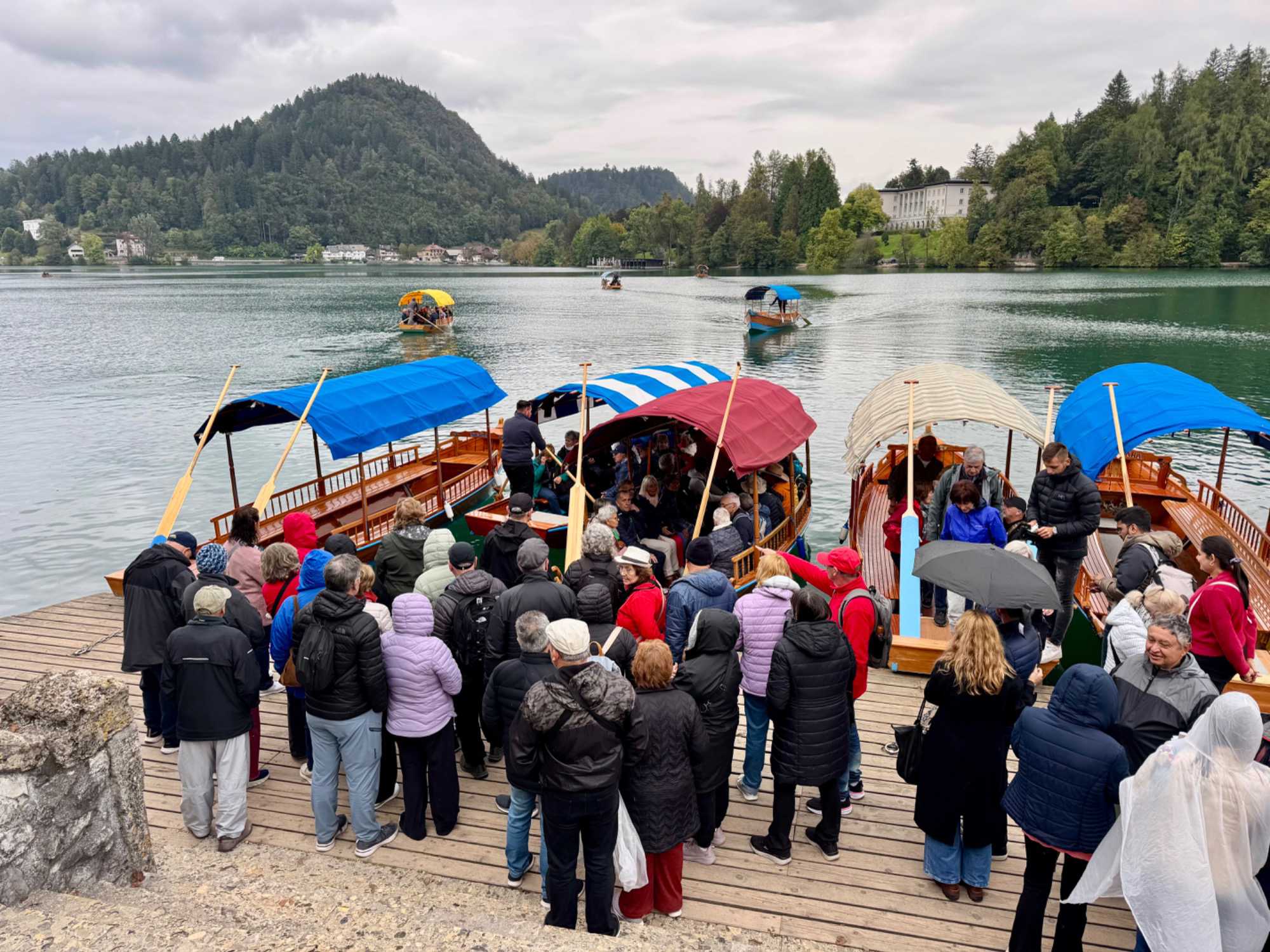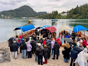 Dans l’après-midi, nous nous dirigeons vers Bled, un véritable bijou de Slovénie situé au pied des Alpes juliennes. Le trajet en bus est l’un des plus beaux d’Europe. À notre arrivée, le lac paré de montagnes majestueuses émerge dans une ambiance féerique. Nous embarquons sur une gondole « pletna » pour rejoindre l’île de Bled. Cette barque traditionnelle, conduite par un rameur, nous permet de glisser tranquillement sur les eaux calmes.