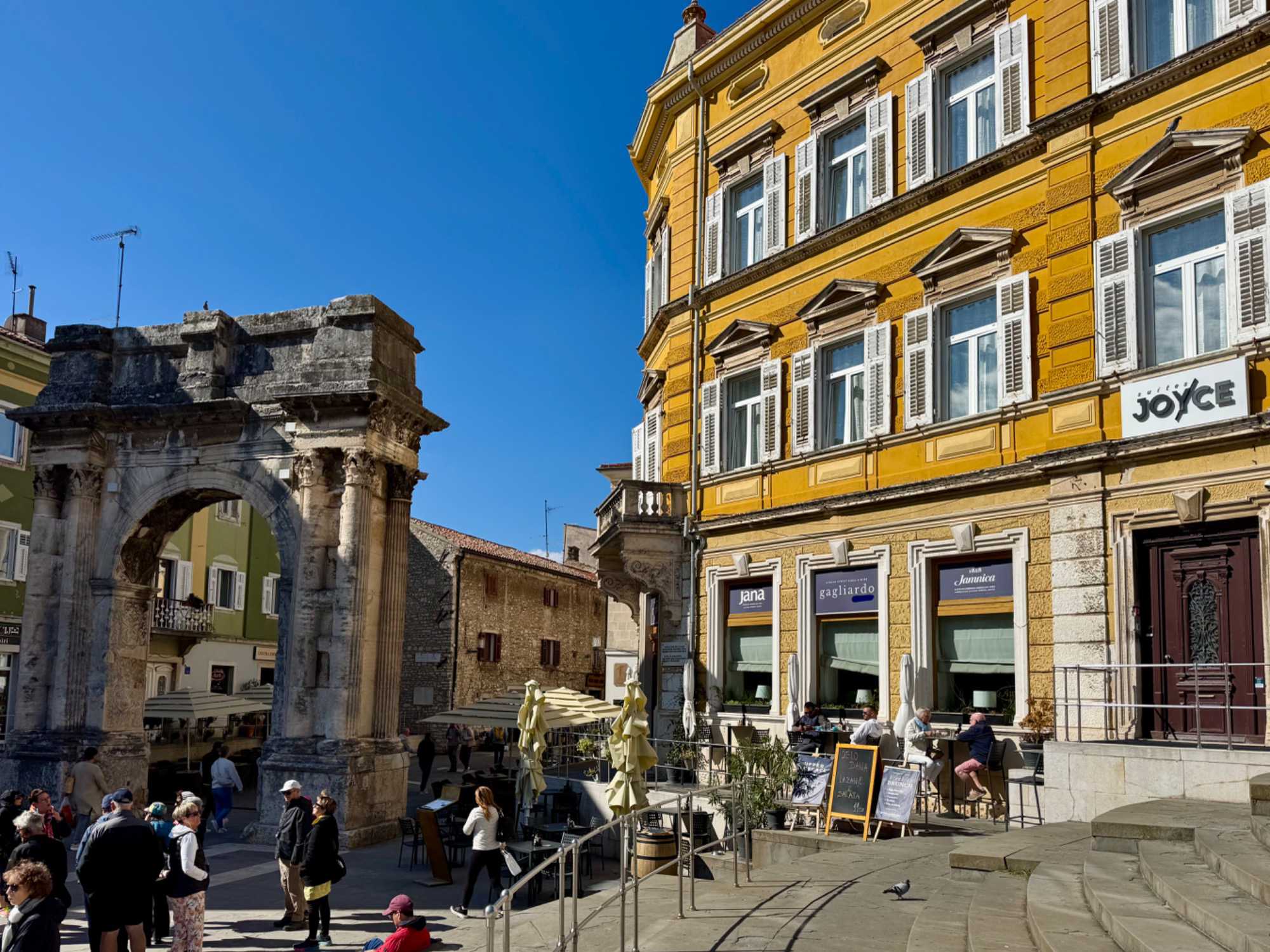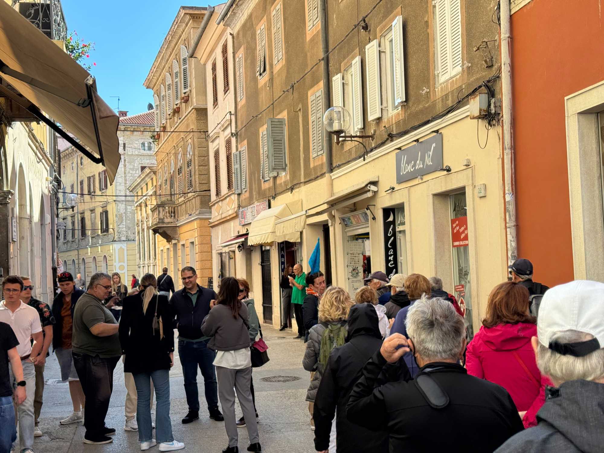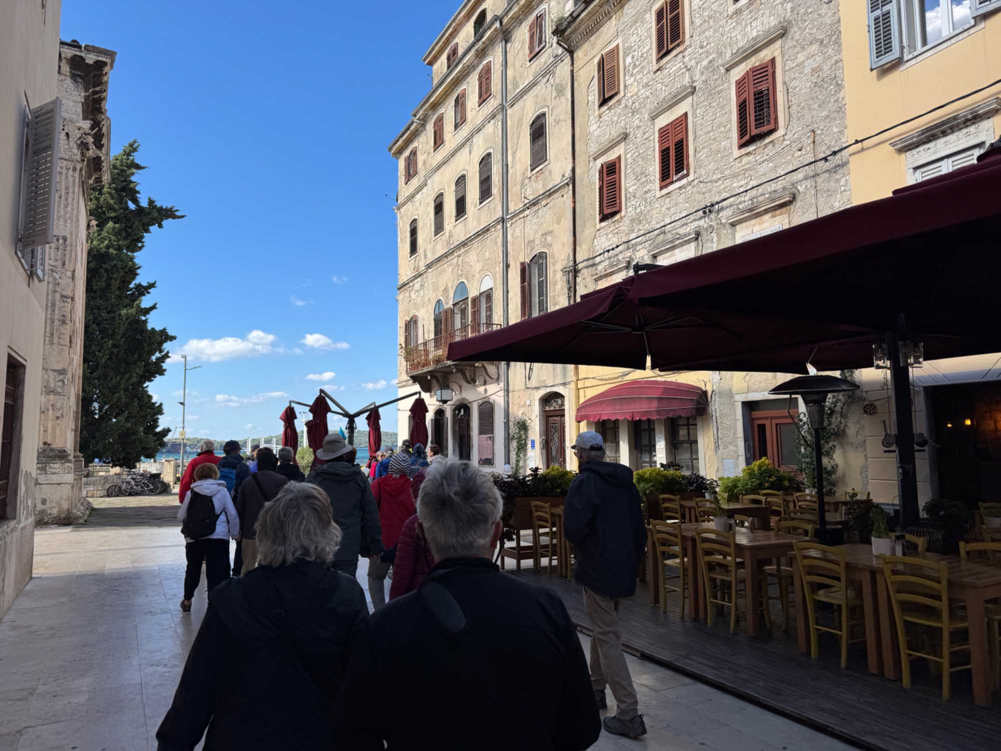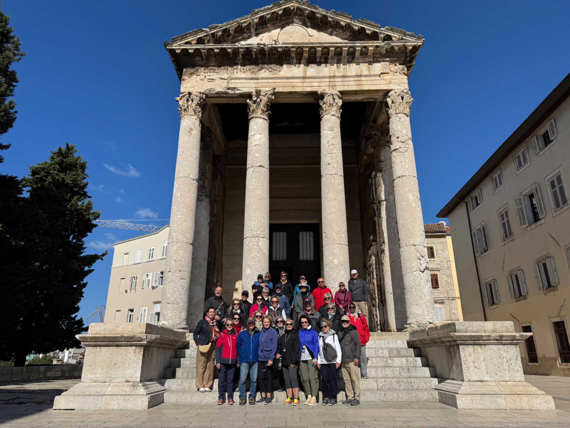 Notre guide, Sonia, nous accompagne pour ce tour de ville enrichissant. Nous traversons une rue animée, bordée de petits cafés où les Croates comme les touristes se retrouvent pour déguster un café. Le tour se termine au temple d’Auguste, près de l’hôtel de ville, un édifice remarquable datant du 1er siècle.