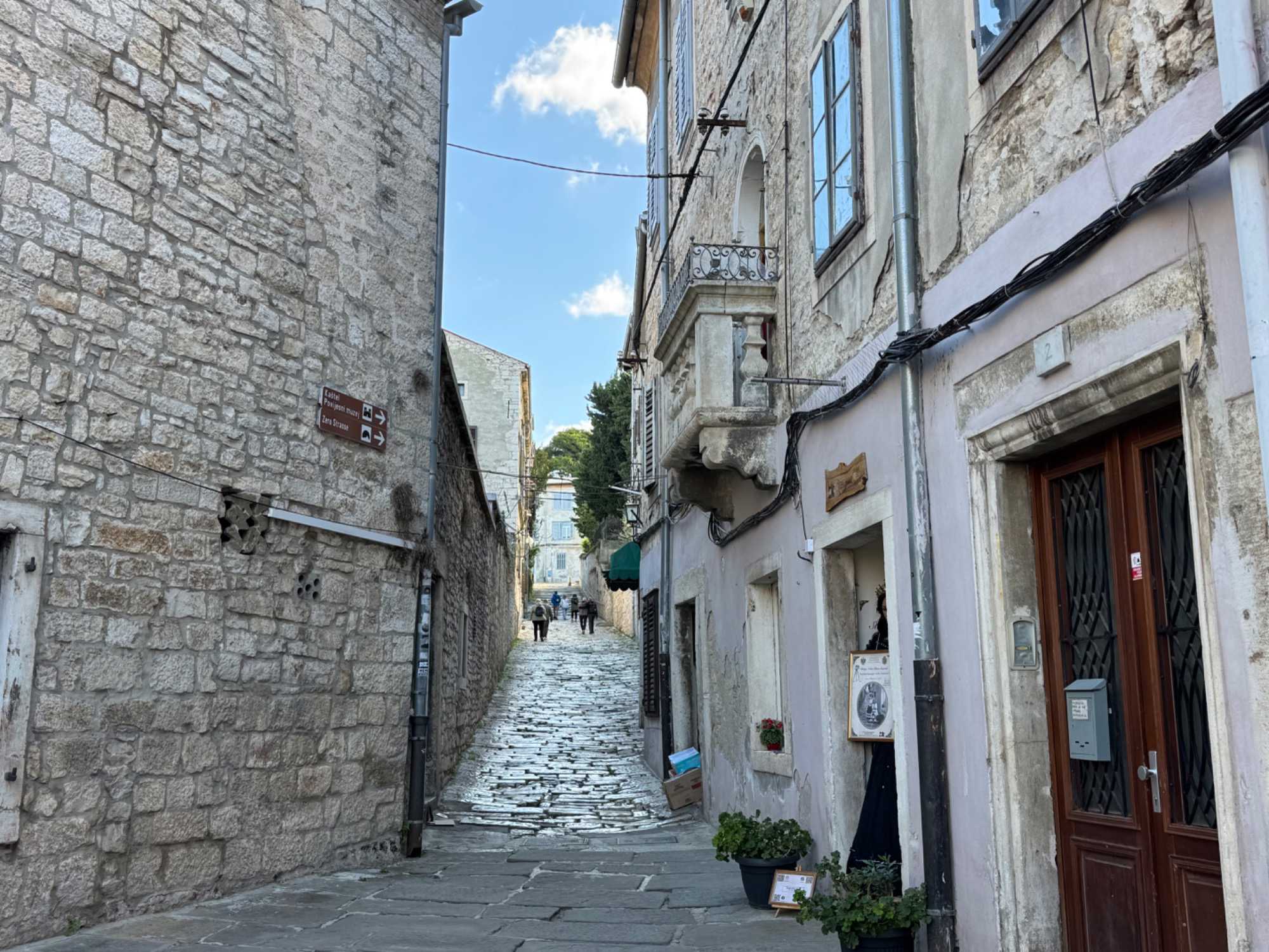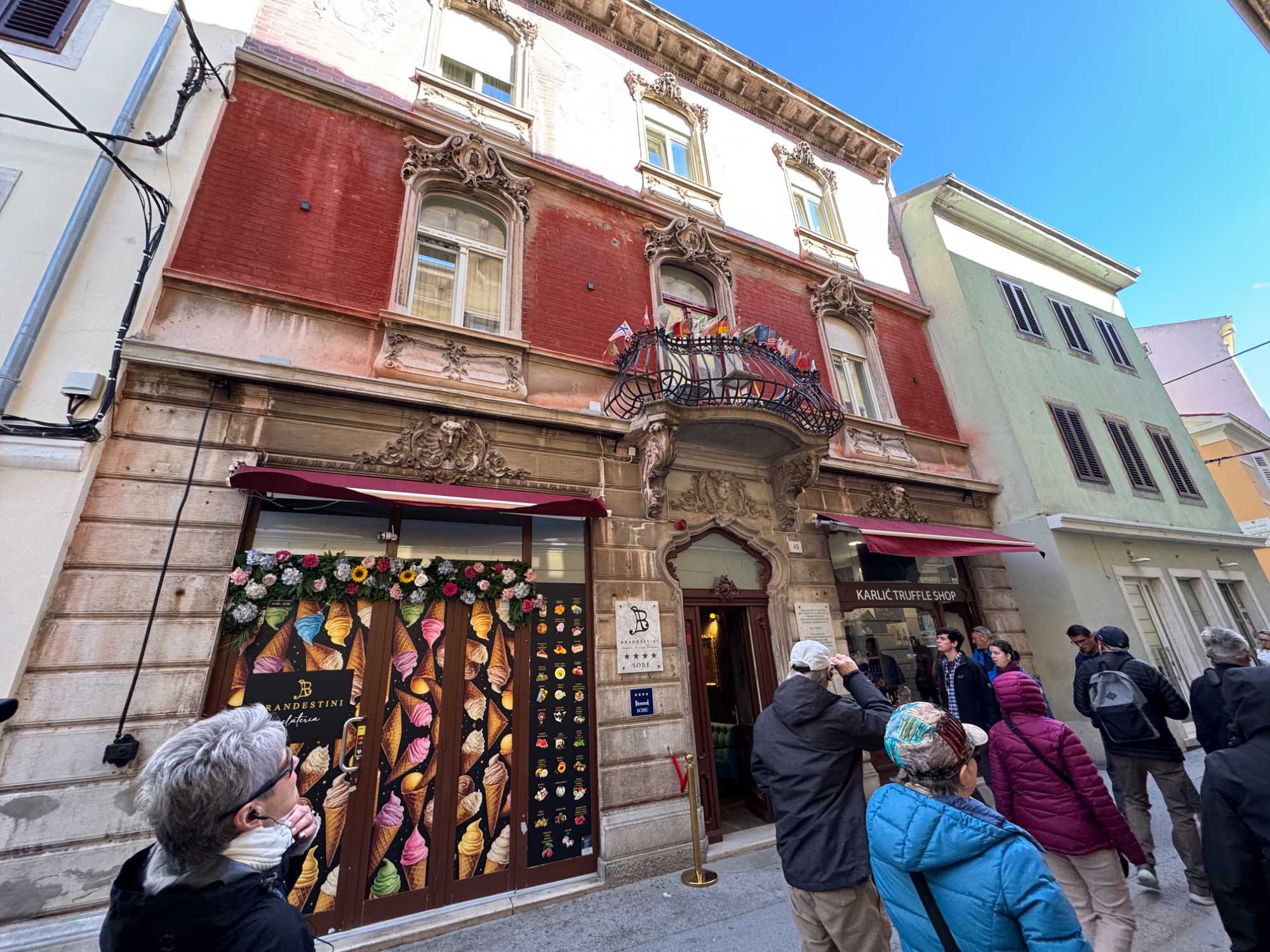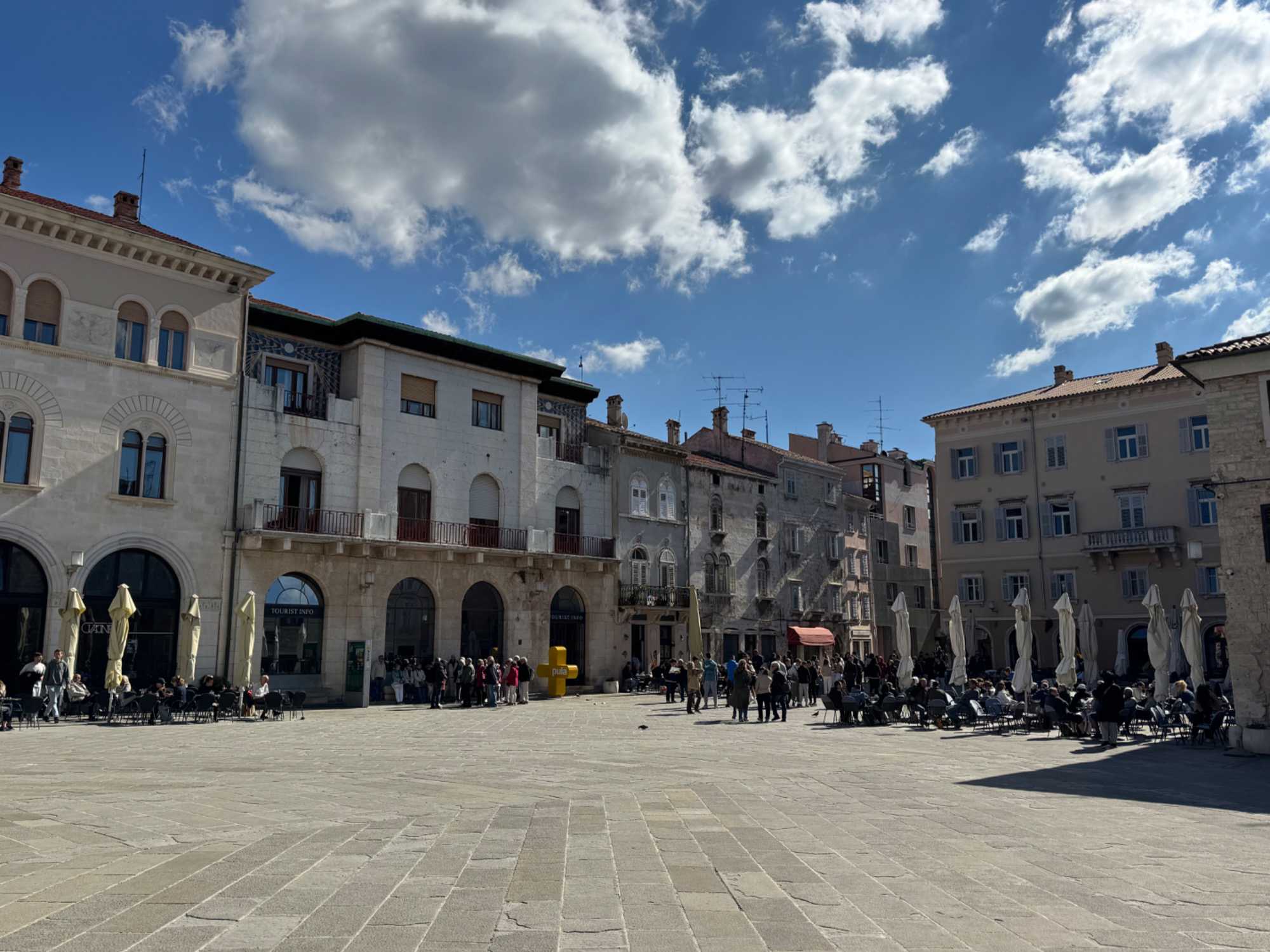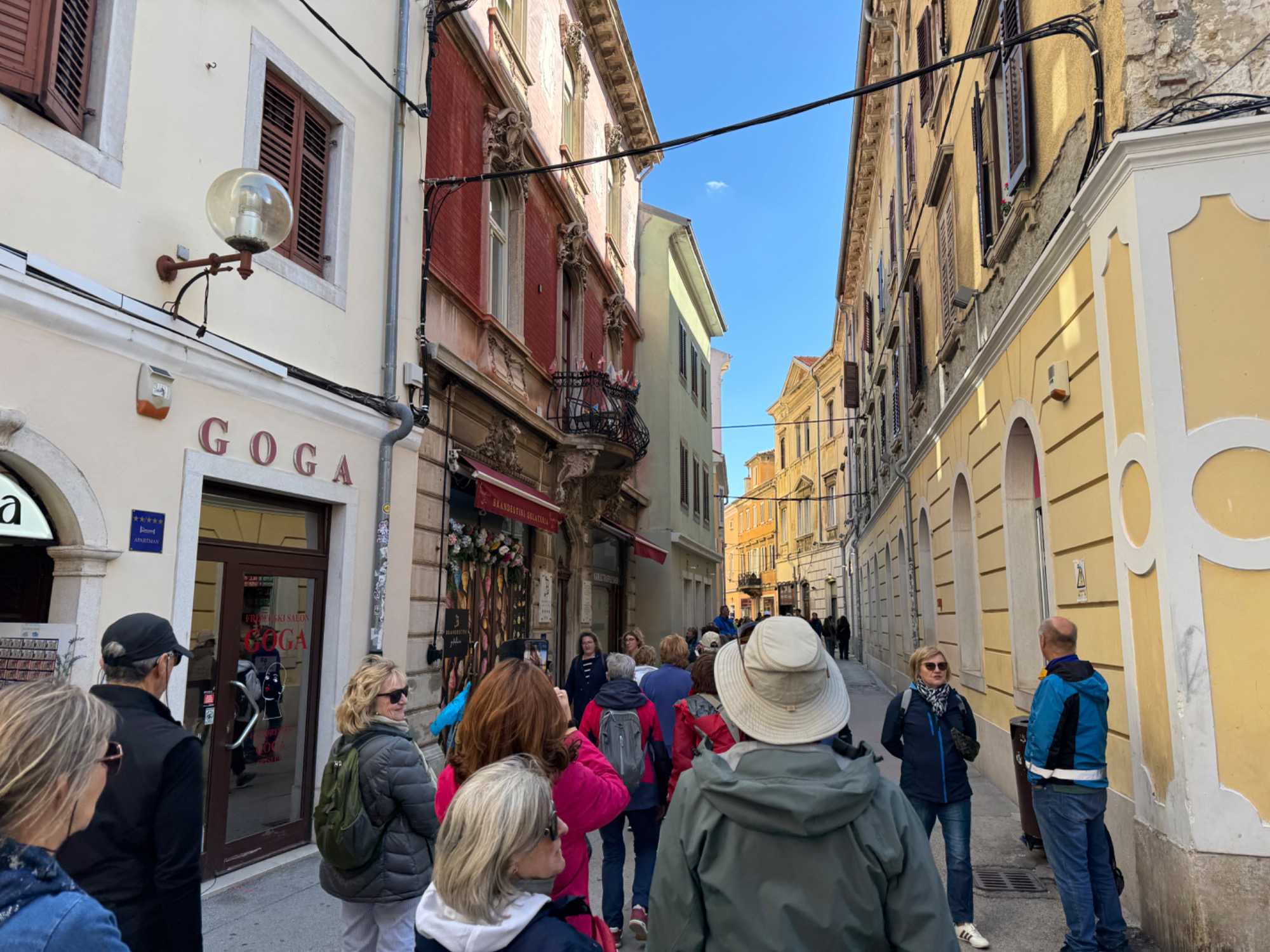 Notre guide, Sonia, nous accompagne pour ce tour de ville enrichissant. Nous traversons une rue animée, bordée de petits cafés où les Croates comme les touristes se retrouvent pour déguster un café. Le tour se termine au temple d’Auguste, près de l’hôtel de ville, un édifice remarquable datant du 1er siècle.