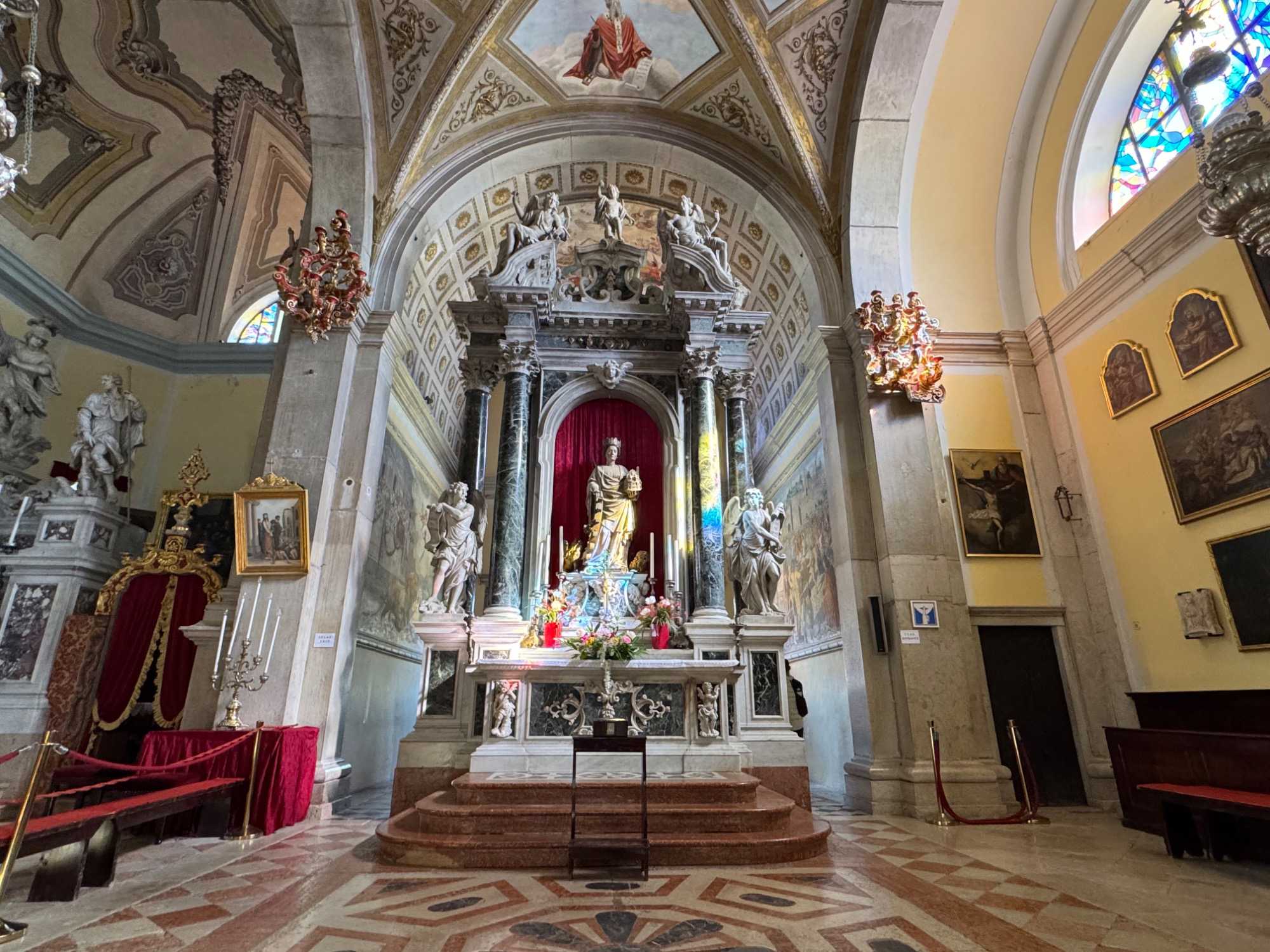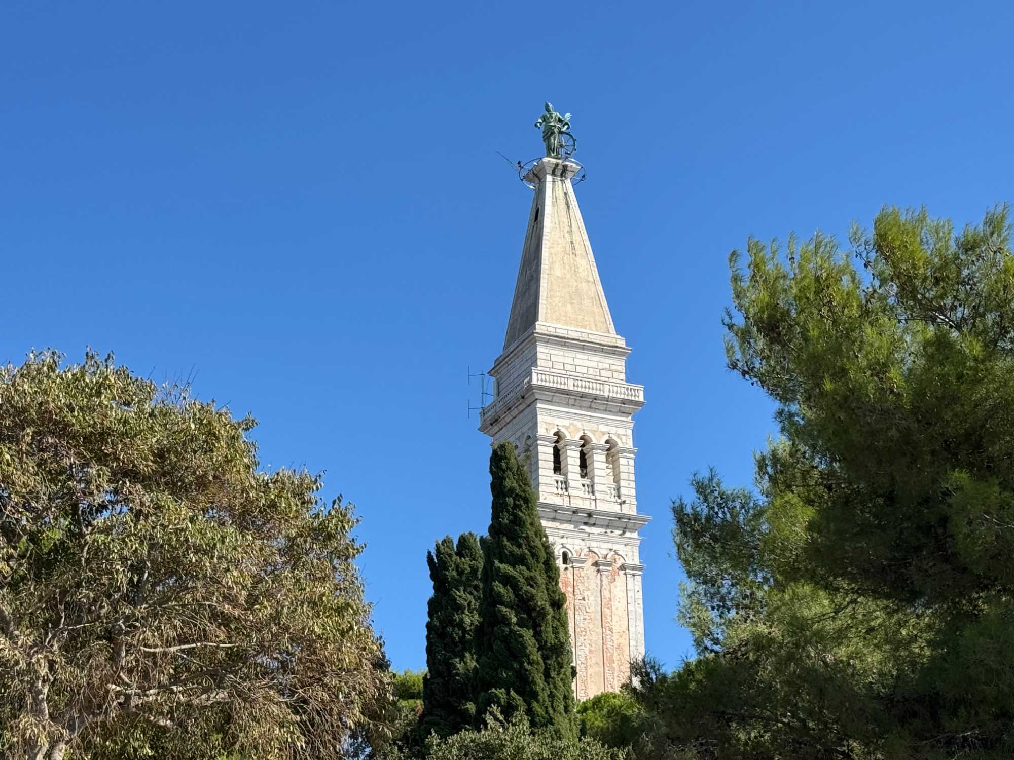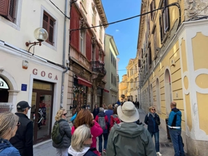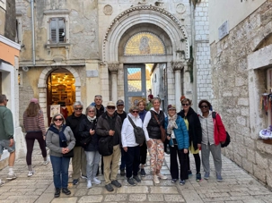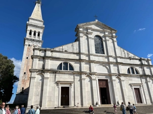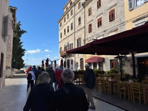 Ensuite, nous repartons en autobus pour rejoindre Rovinj, bordée par des champs d’olives et des vignes. À notre arrivée, nous profitons d’un temps libre pour explorer cette charmante ville. Le point d’orgue de notre visite est la cathédrale Sainte-Euphémie, qui domine la vieille ville. Construite en 1736, elle abrite le sarcophage de Sainte-Euphémie, célèbre pour avoir miraculeusement traversé la Méditerranée, malgré les dangers qui l’entouraient.