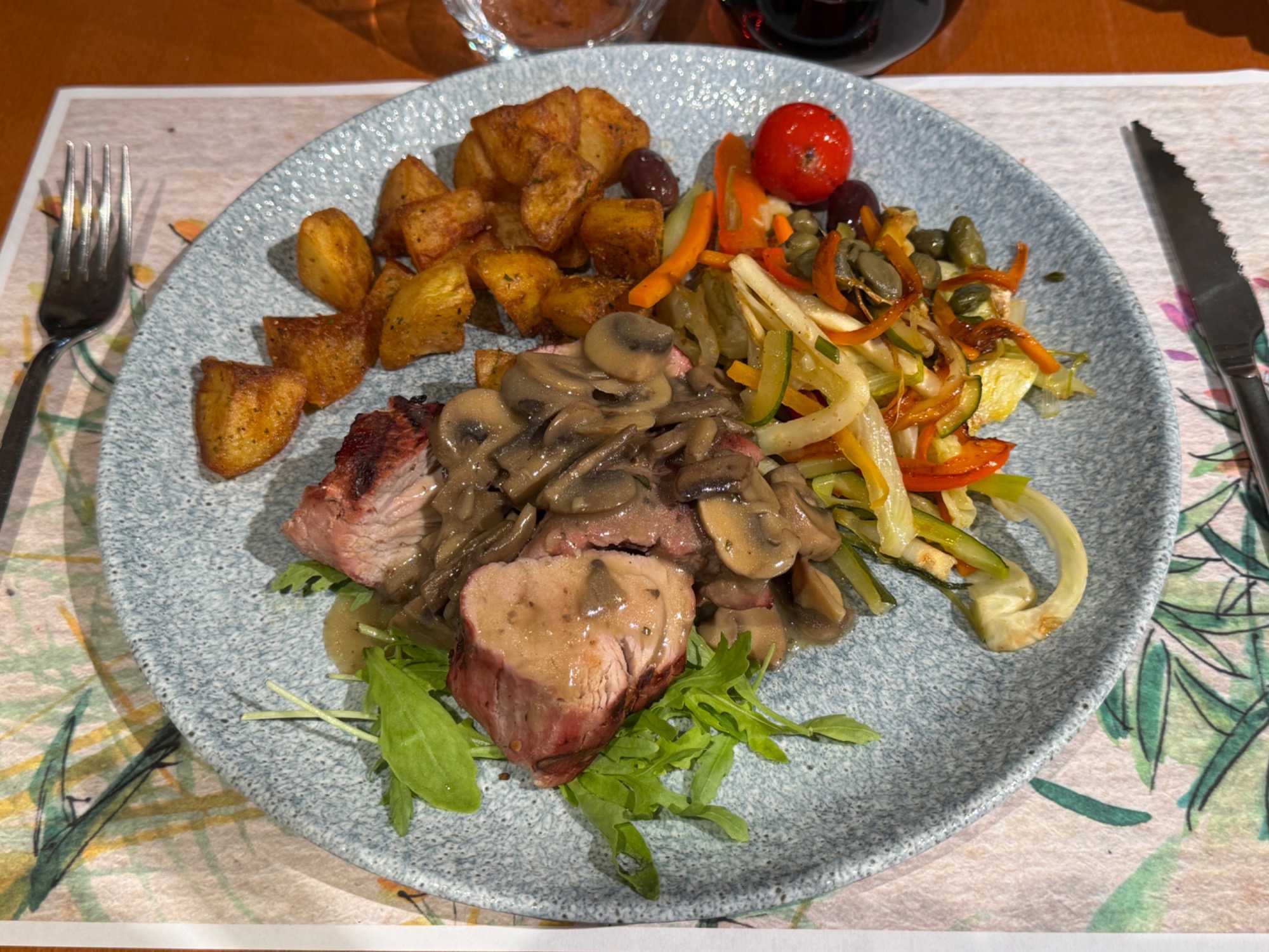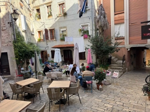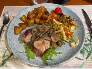 Pour le dîner, nous nous arrêtons dans un restaurant typique dans la vieille ville où nous avons savouré un repas inoubliable. En entrée, une délicate biscotte garnie d’un pâté de truffes et noix, a éveillé nos papilles avec ses arômes riches et raffinés. Le plat principal, un filet mignon de porc parfaitement cuit, accompagné de légumes sautés croquants, a séduit tous les convives par sa tendreté et ses saveurs équilibrées. Mais c’est le dessert qui a volé la vedette : un gâteau au fromage si onctueux et délicieux que tous les voyageurs autour de la table ont déclaré n’en avoir jamais goûté d’aussi bon.