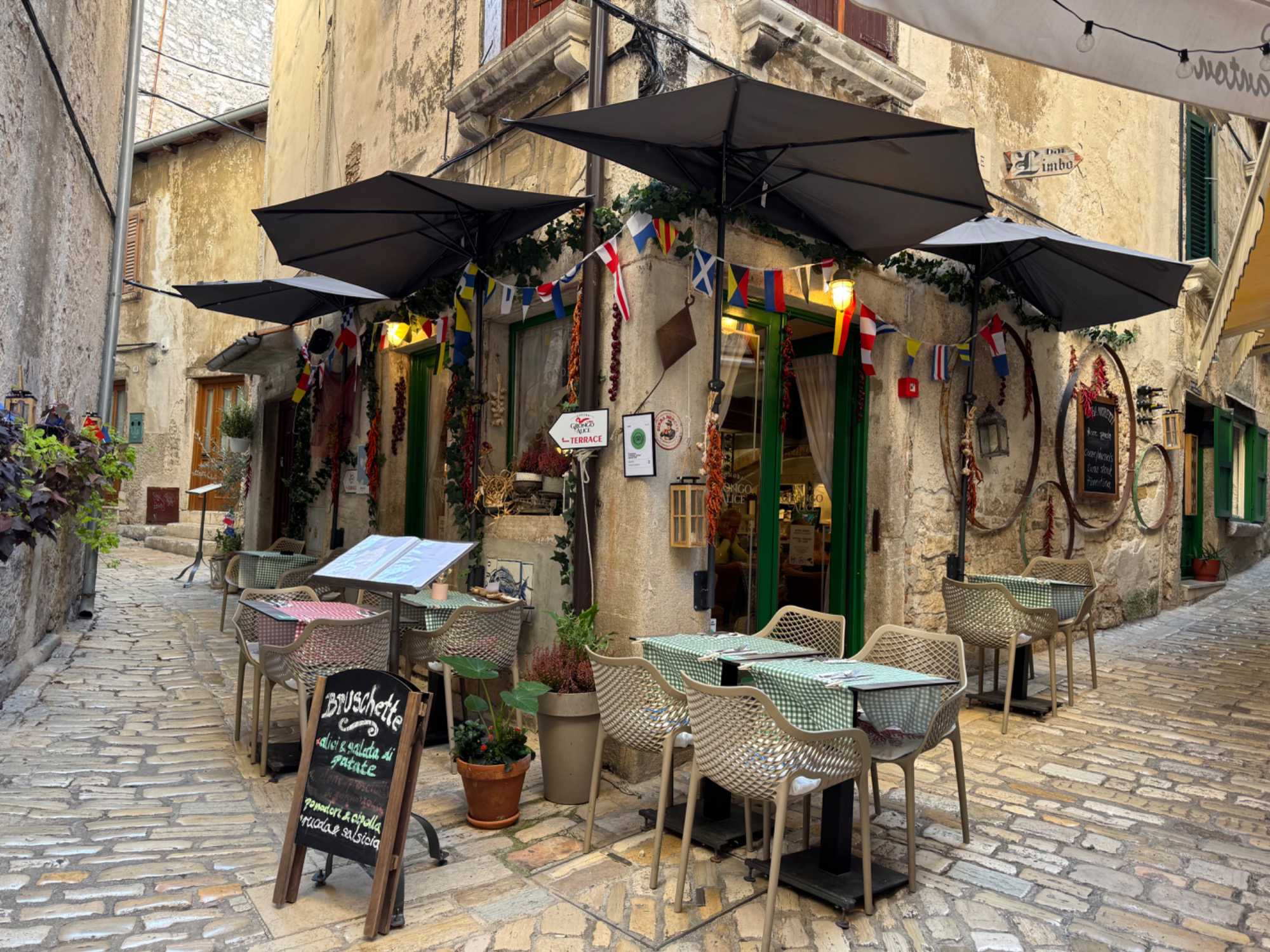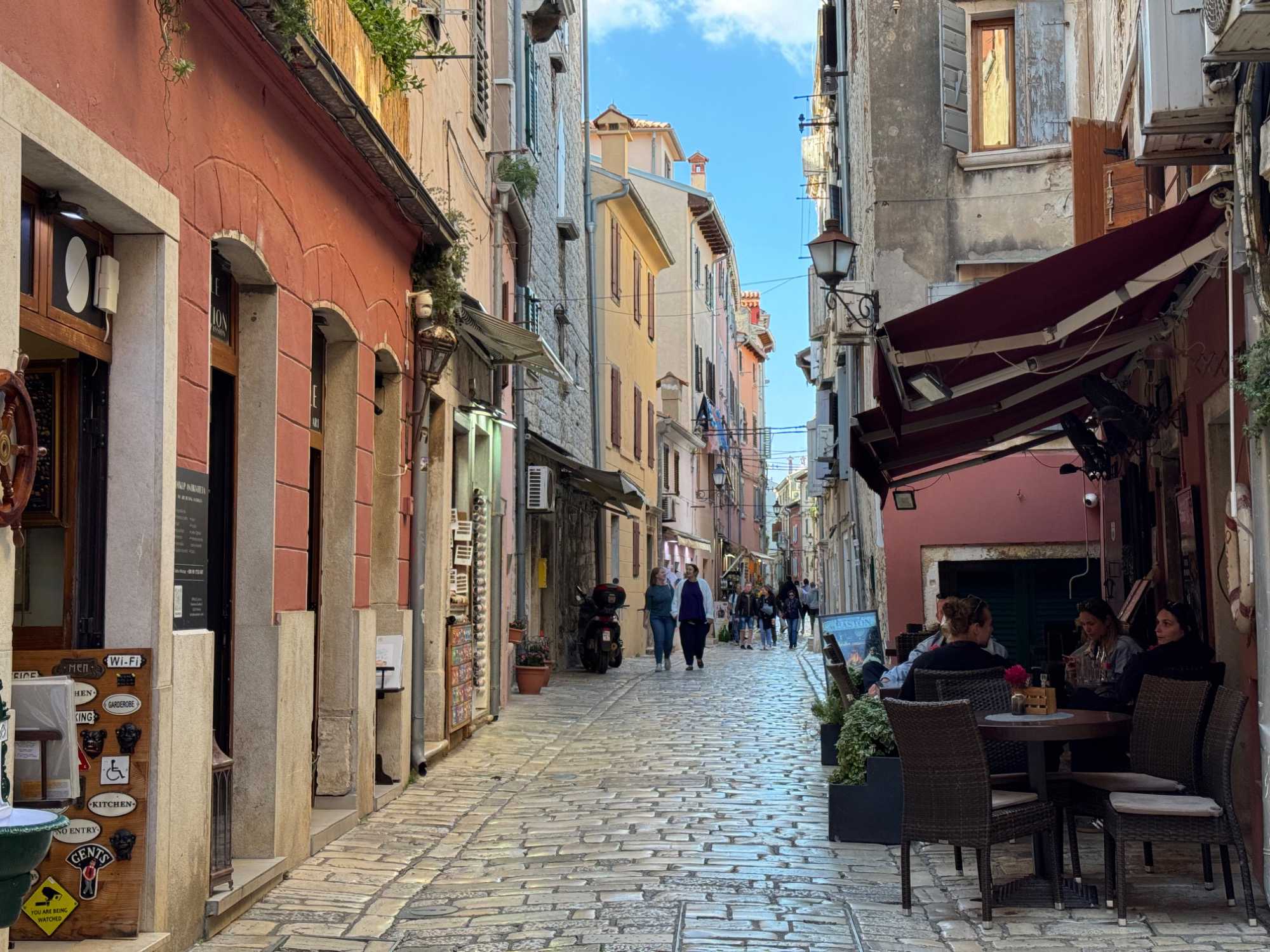 Notre aventure continue vers Poreč, que nous atteignons après une heure de route. Poreč a conservé le plan de son ancienne colonie romaine, et nous flânons le long des ruelles où boutiques et restaurants se mêlent harmonieusement.