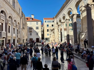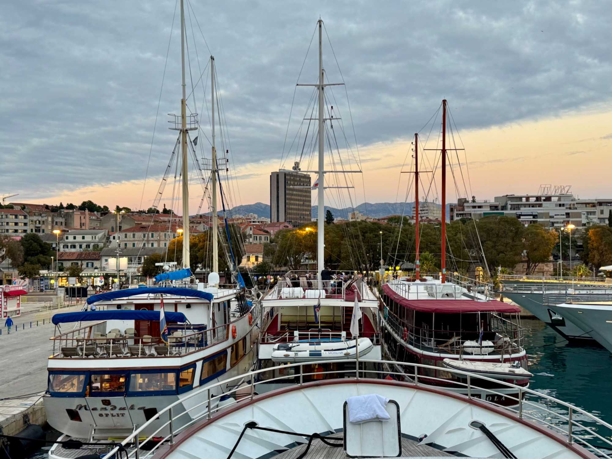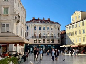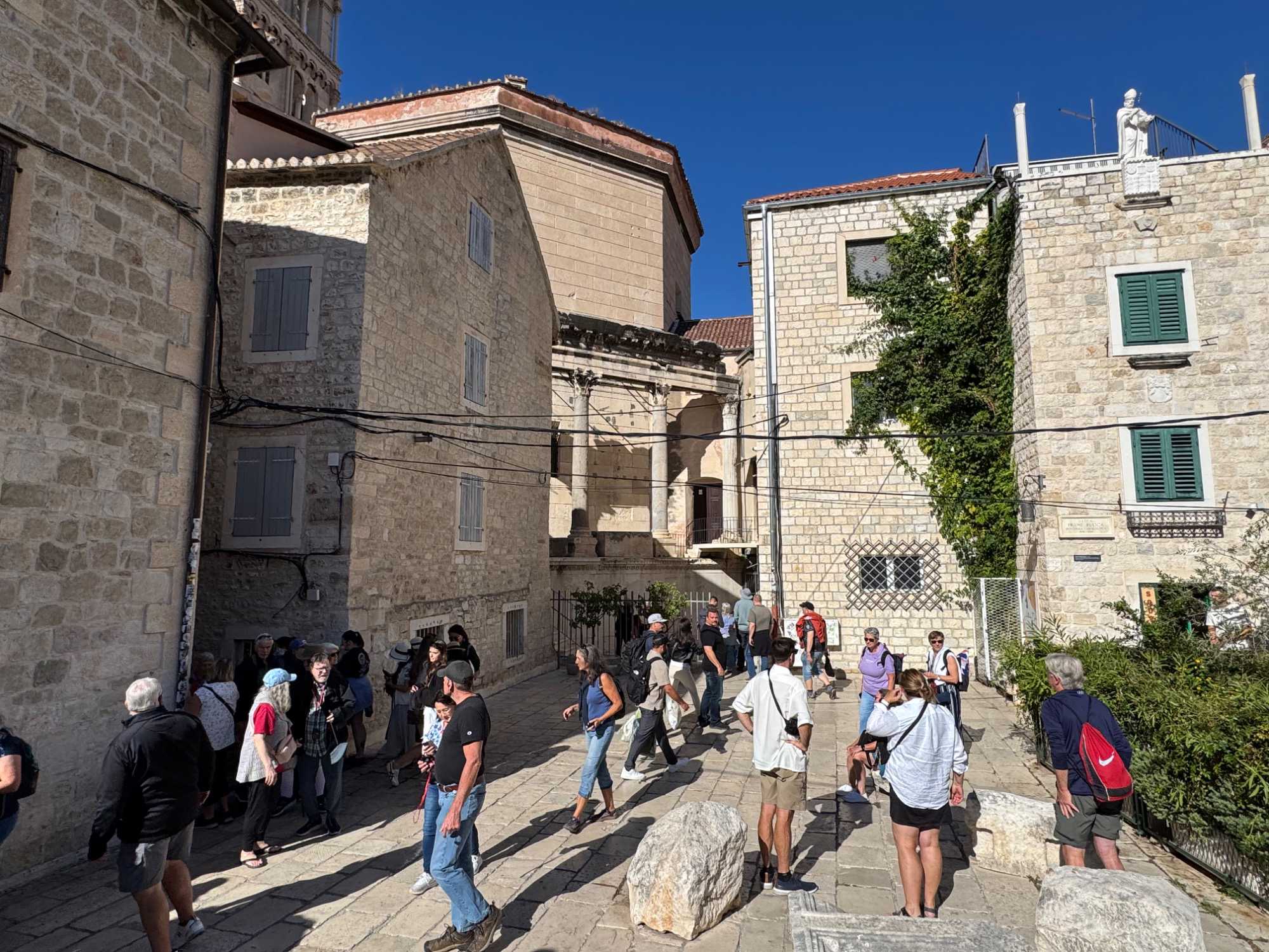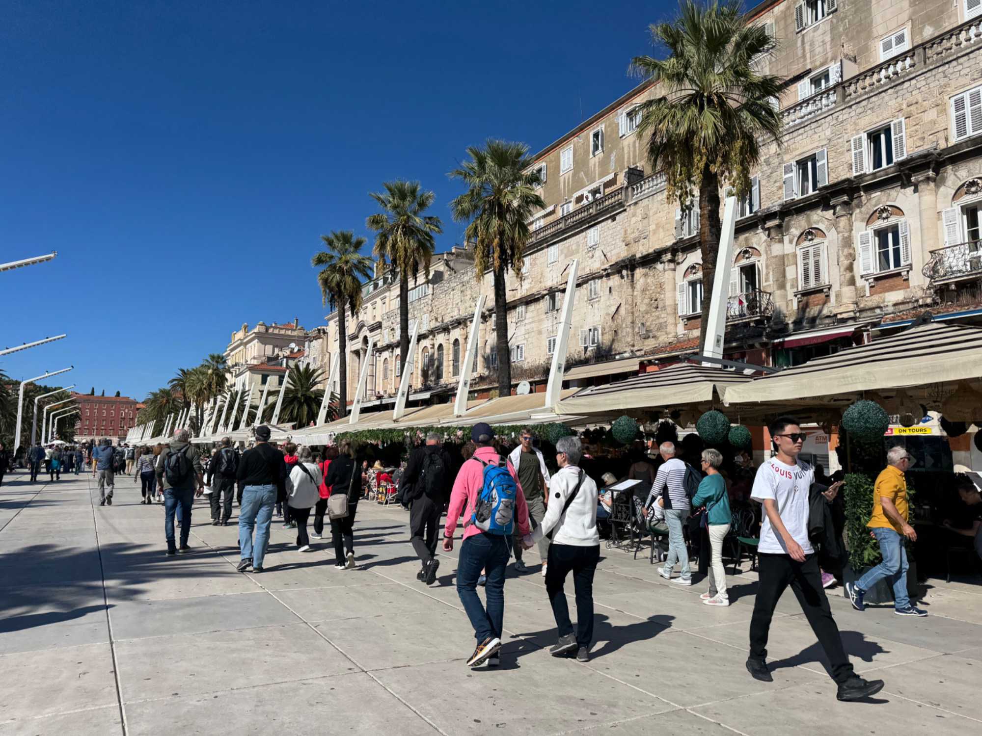 Split se dévoile progressivement à travers des paysages méditerranéens enchanteurs, avec ses trottoirs animés bordés de palmiers et ses belles rues pavées. En entrant dans l’enceinte du célèbre palais de l’empereur Dioclétien, par la porte située du côté de la baie, on plonge immédiatement dans l’histoire ; on ressent le poids des siècles autour de soi. À l’étage supérieur, ce lieu n’est pas seulement une ruine antique mais un véritable cœur battant où se mêlent appartements, boutiques et cafés, témoignant de la vie quotidienne qui a animée ces murs depuis plus de 1700 ans. La cathédrale, symbole de la ville, se dresse fièrement et nous rappelle l’héritage catholique de cette région.