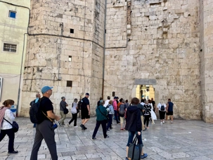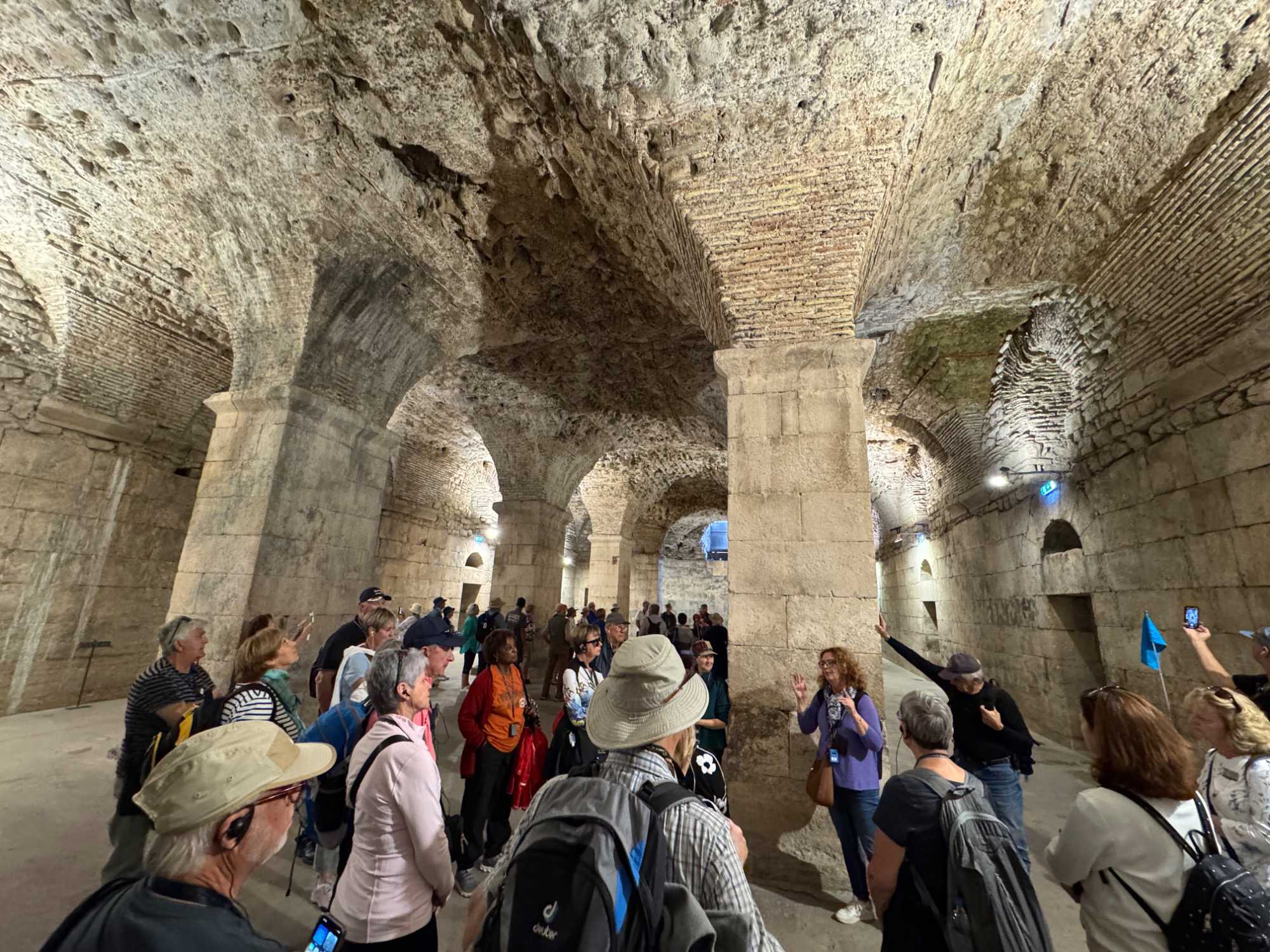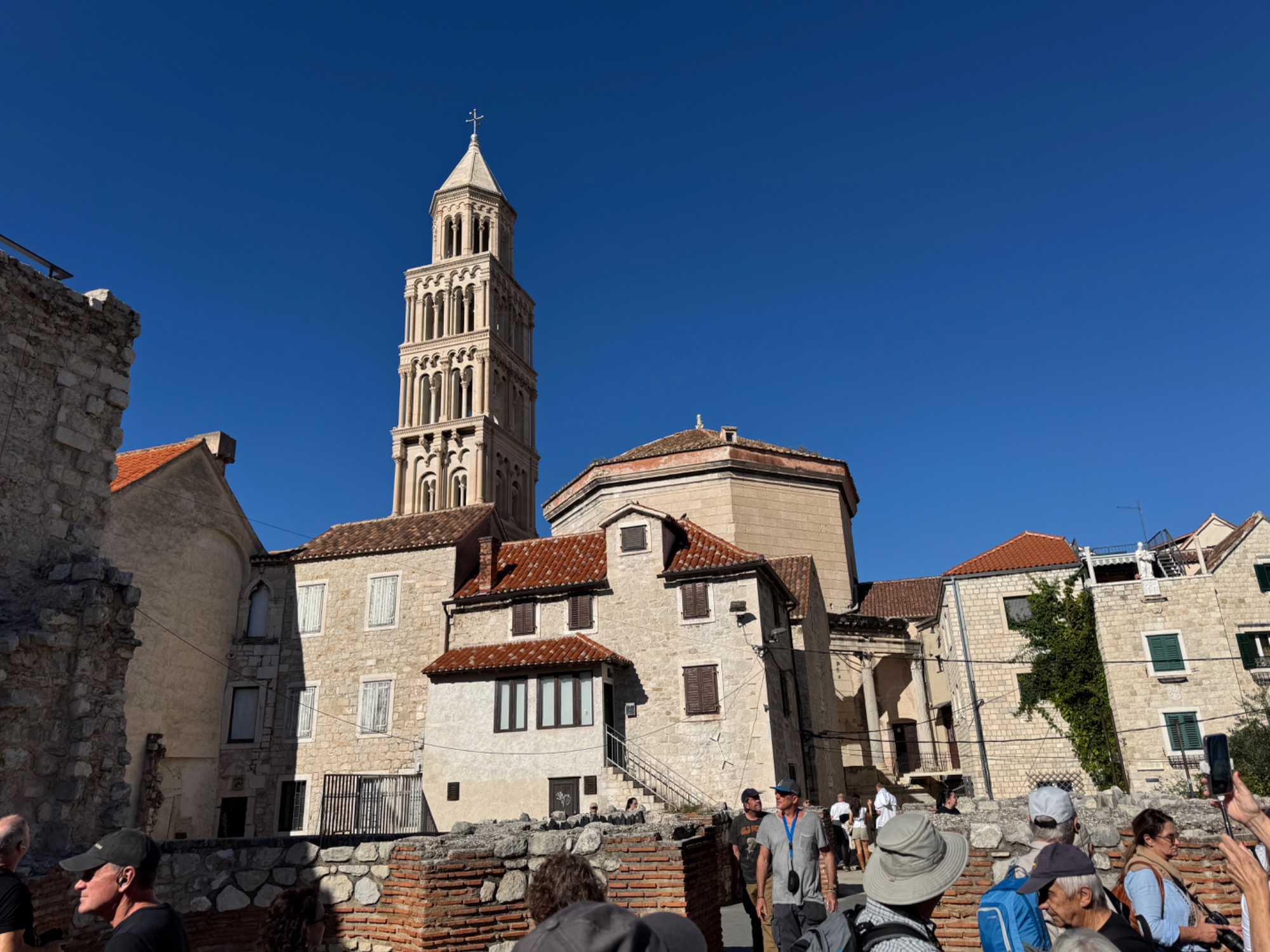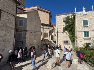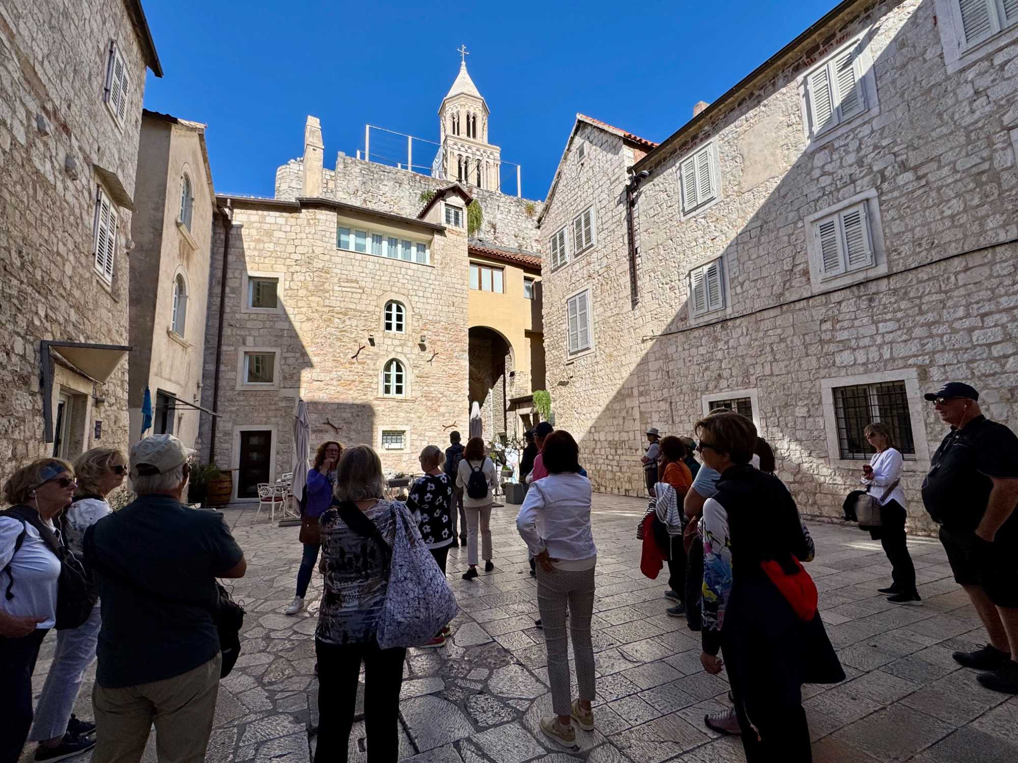 Split se dévoile progressivement à travers des paysages méditerranéens enchanteurs, avec ses trottoirs animés bordés de palmiers et ses belles rues pavées. En entrant dans l’enceinte du célèbre palais de l’empereur Dioclétien, par la porte située du côté de la baie, on plonge immédiatement dans l’histoire ; on ressent le poids des siècles autour de soi. À l’étage supérieur, ce lieu n’est pas seulement une ruine antique mais un véritable cœur battant où se mêlent appartements, boutiques et cafés, témoignant de la vie quotidienne qui a animée ces murs depuis plus de 1700 ans. La cathédrale, symbole de la ville, se dresse fièrement et nous rappelle l’héritage catholique de cette région.