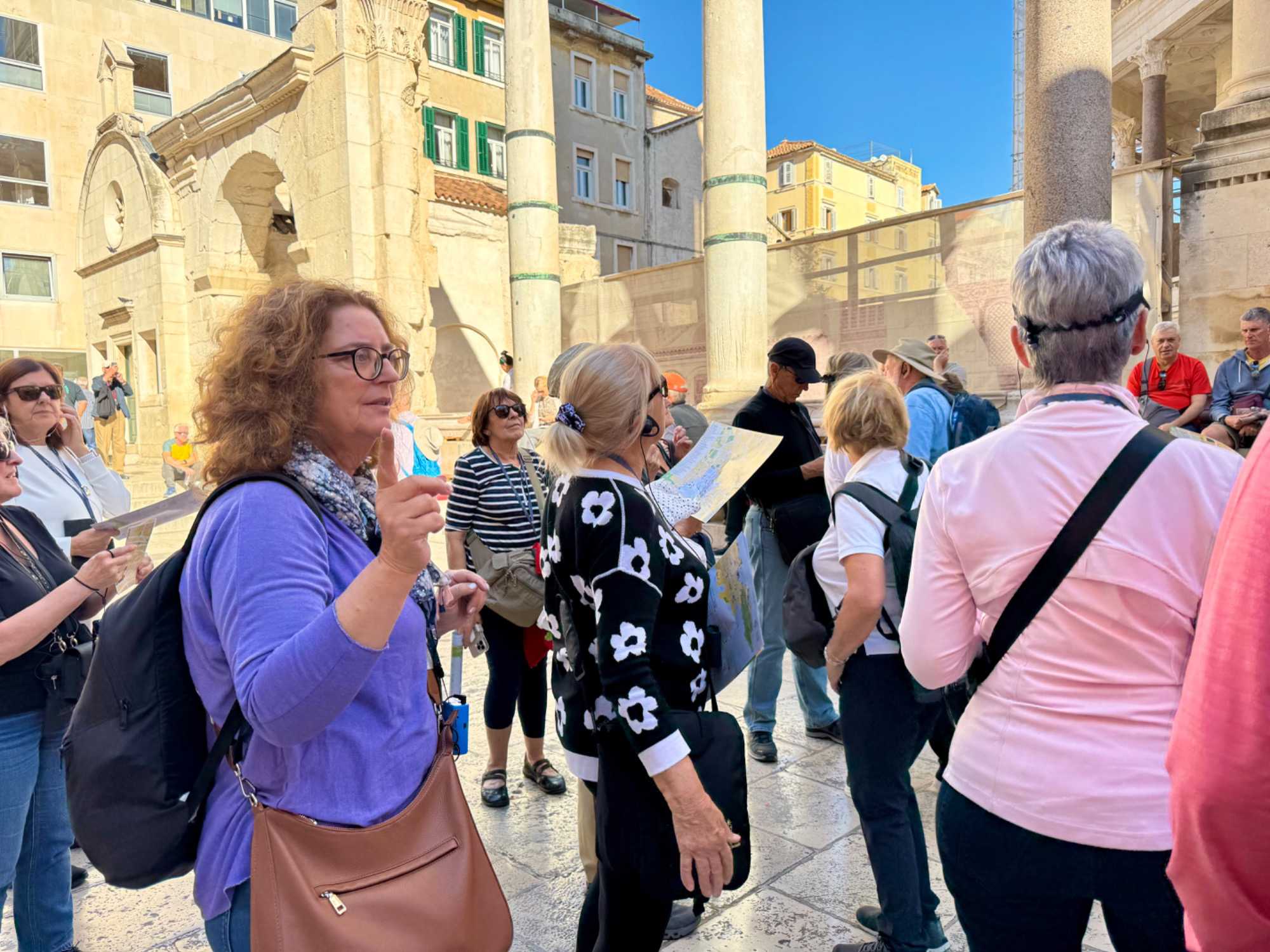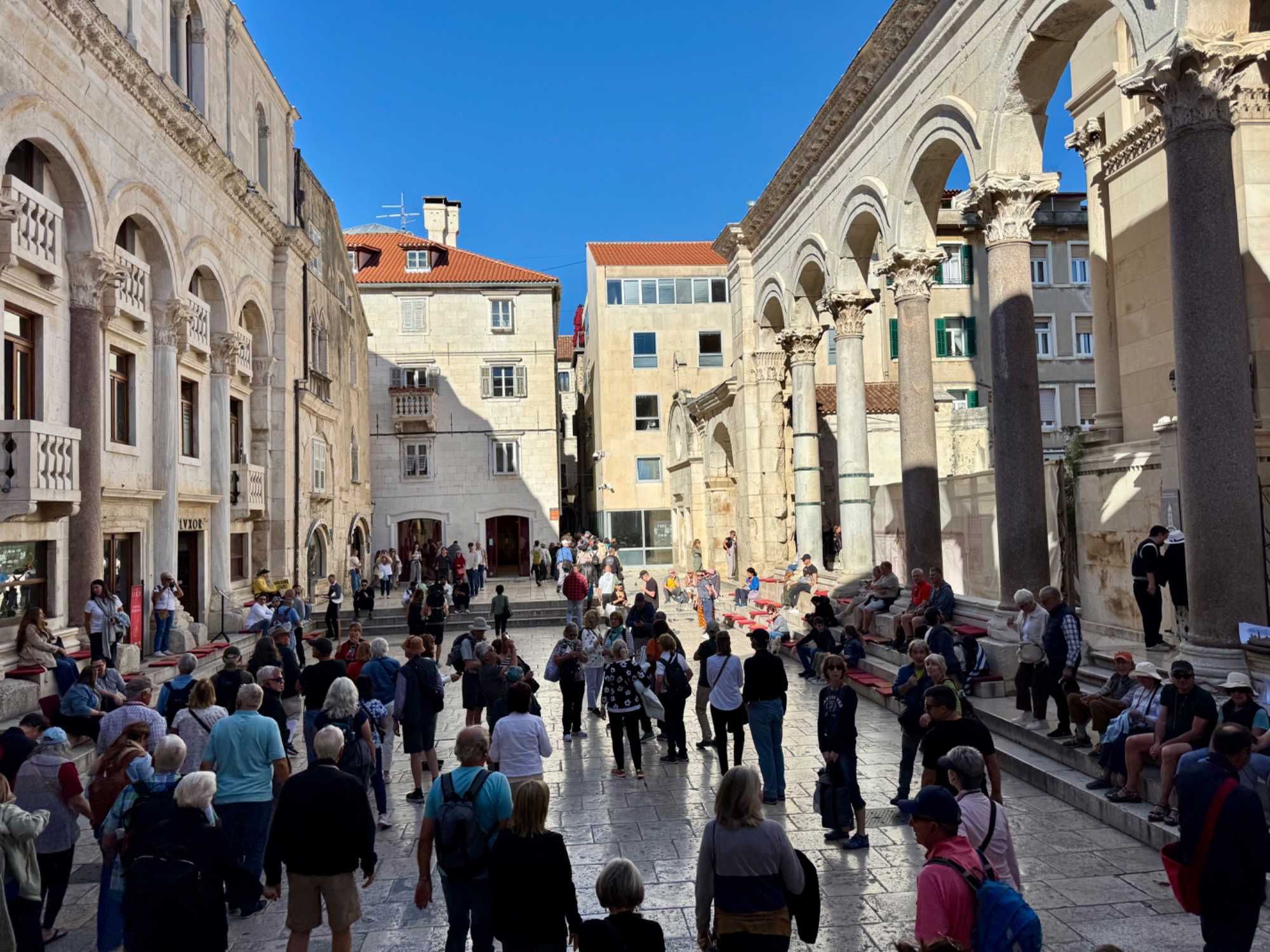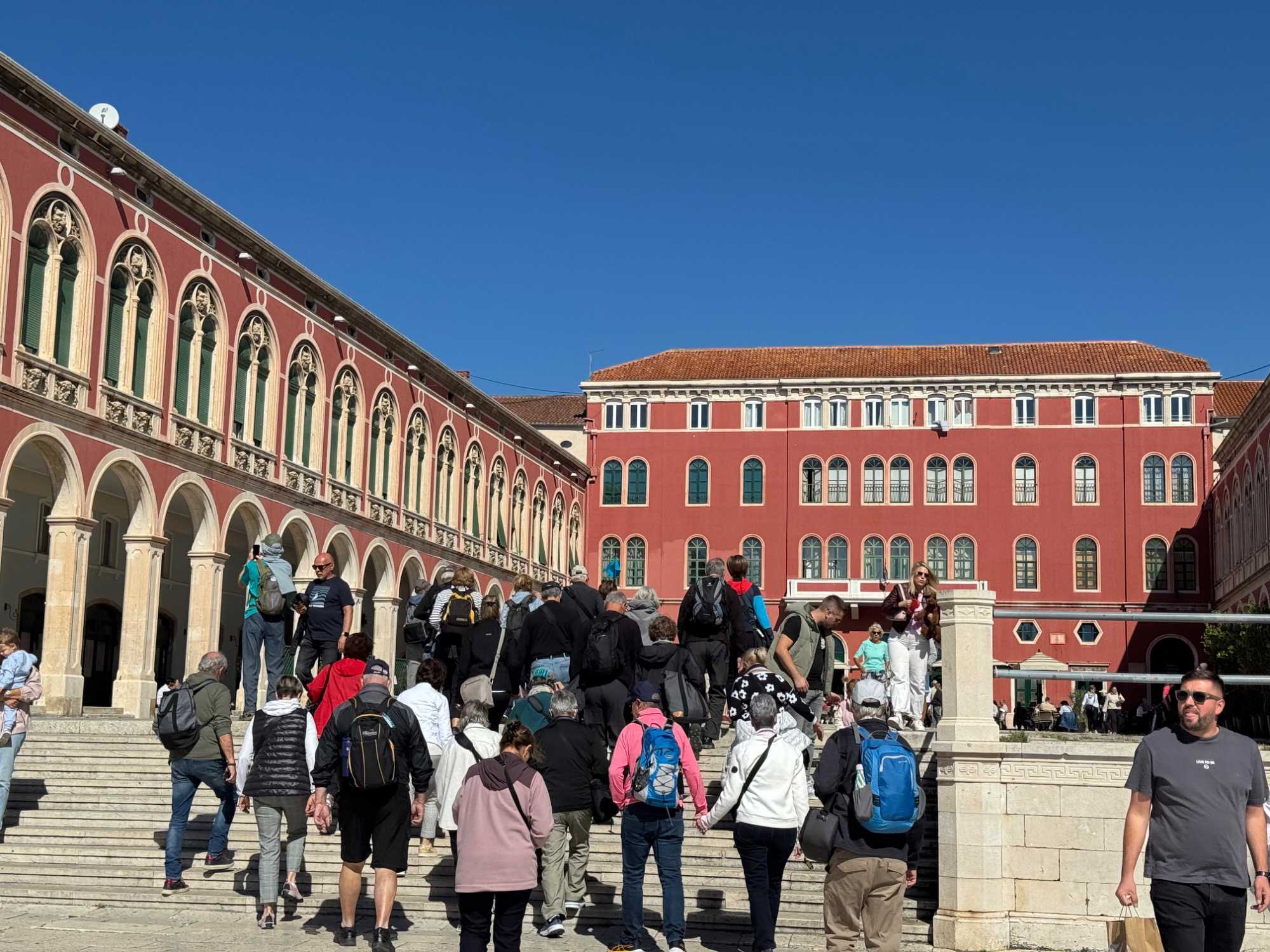 Ce matin, nous quittons notre hôtel pour une route pittoresque vers Split, une ville qui ne manquera pas de nous émerveiller. La température est idéale avec un agréable soleil, environ 15 degrés C, et elle devrait encore grimper au cours de la journée, promettant une ambiance estivale parfaite pour notre exploration.