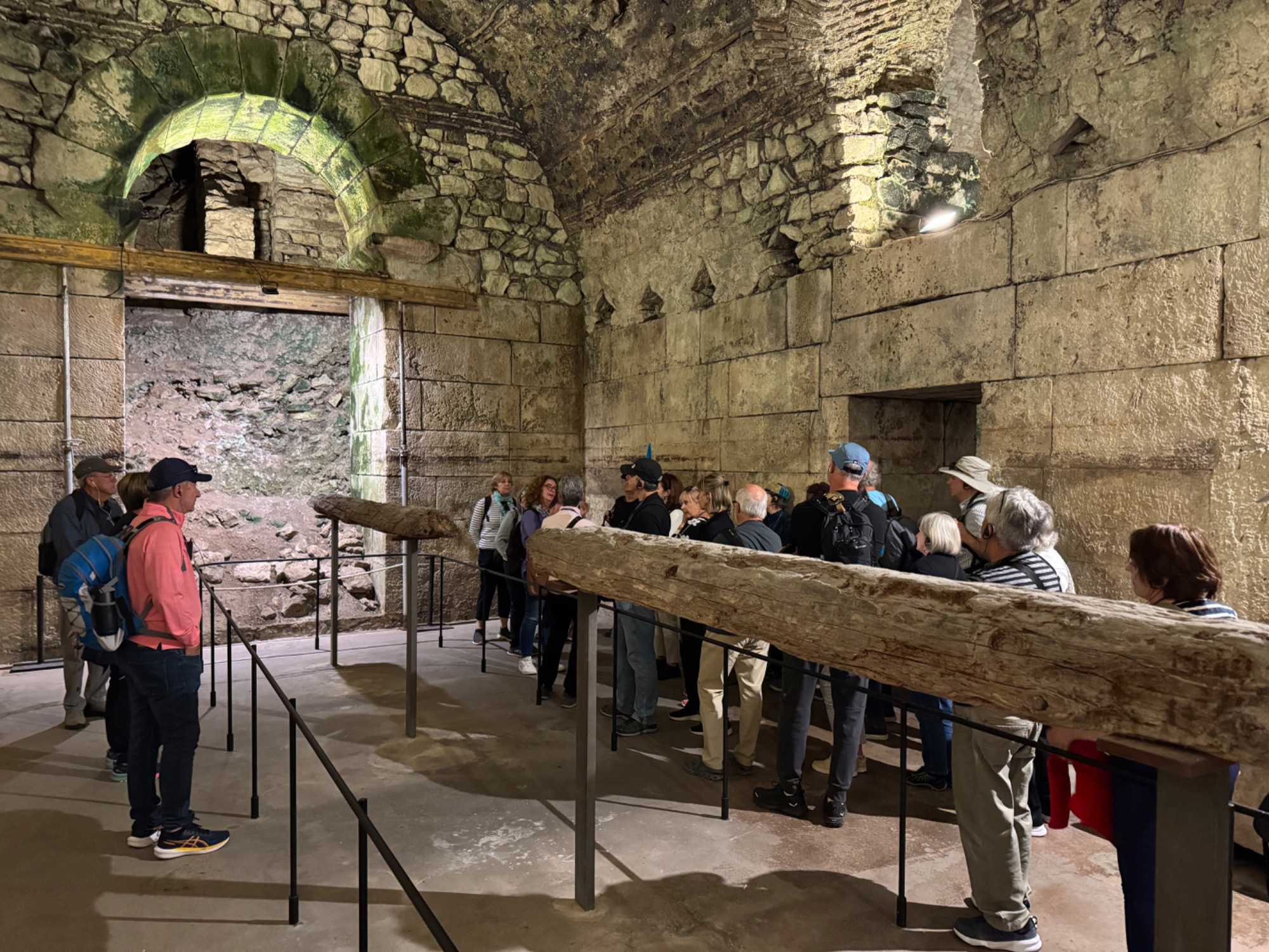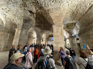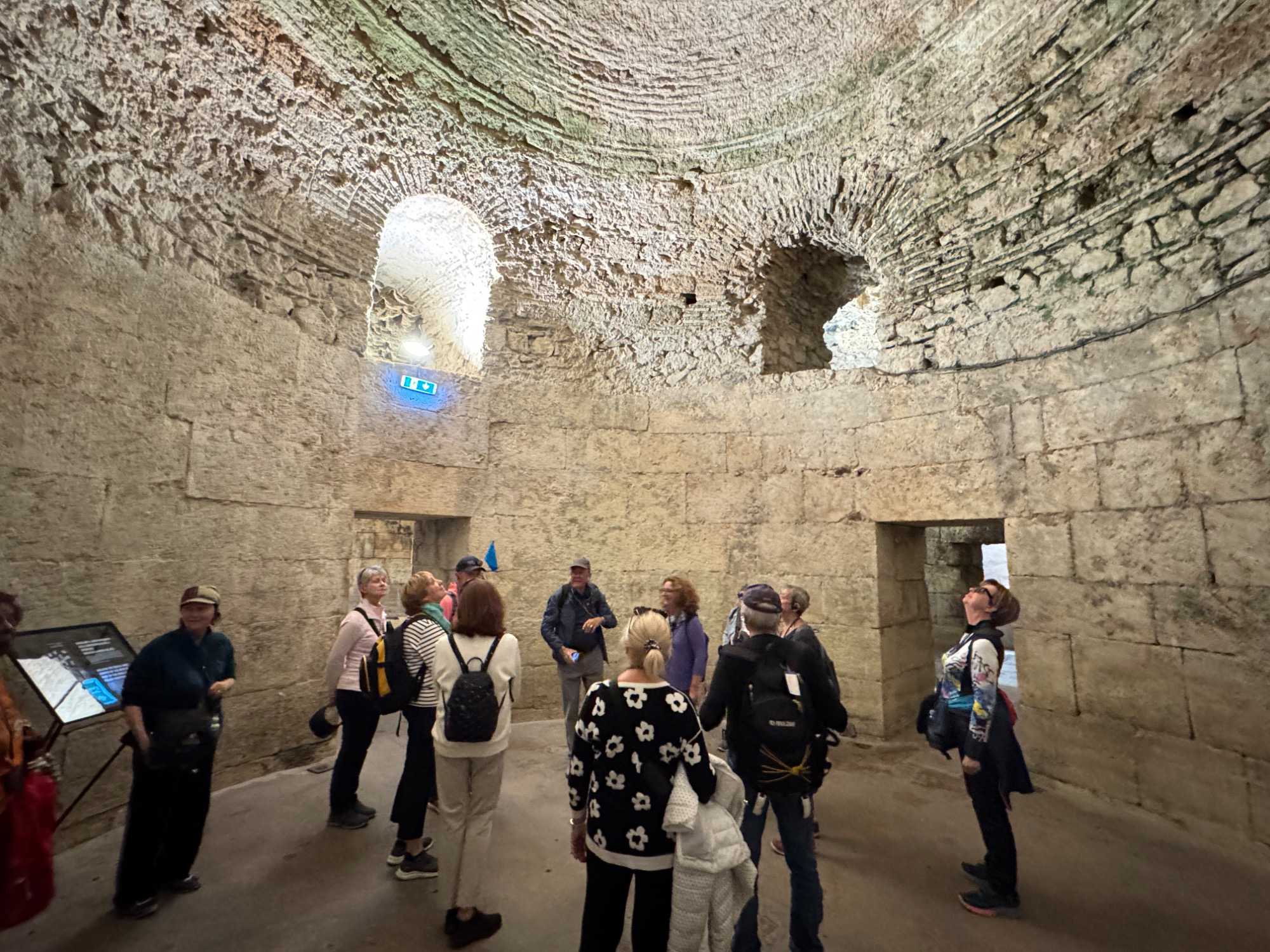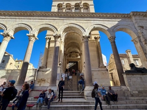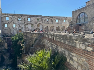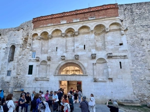 Le palais, qui fut érigé en sept ans, est stratégiquement situé face à la mer Adriatique. En entrant par la porte de bronze, nous explorons les anciennes structures qui, après le règne des romains, servaient d’égouts et qui sont maintenant transformées en musée. Auparavant, le palais s’étendait jusqu’à la mer, mais une magnifique promenade touristique s’y trouve maintenant, permettant aux visiteurs d’admirer le splendide littoral.