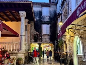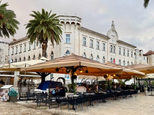 Ce soir, on nous a réservé un souper dans la ville. Les restaurants de Trogir offrent une cuisine locale savoureuse, et nous nous régalons de plats typiques de la région, accompagnés de vin croate. L’ambiance est chaleureuse et animée. Nous profitons de ce moment pour faire plus ample connaissance entre les membres de notre groupe de croisière.