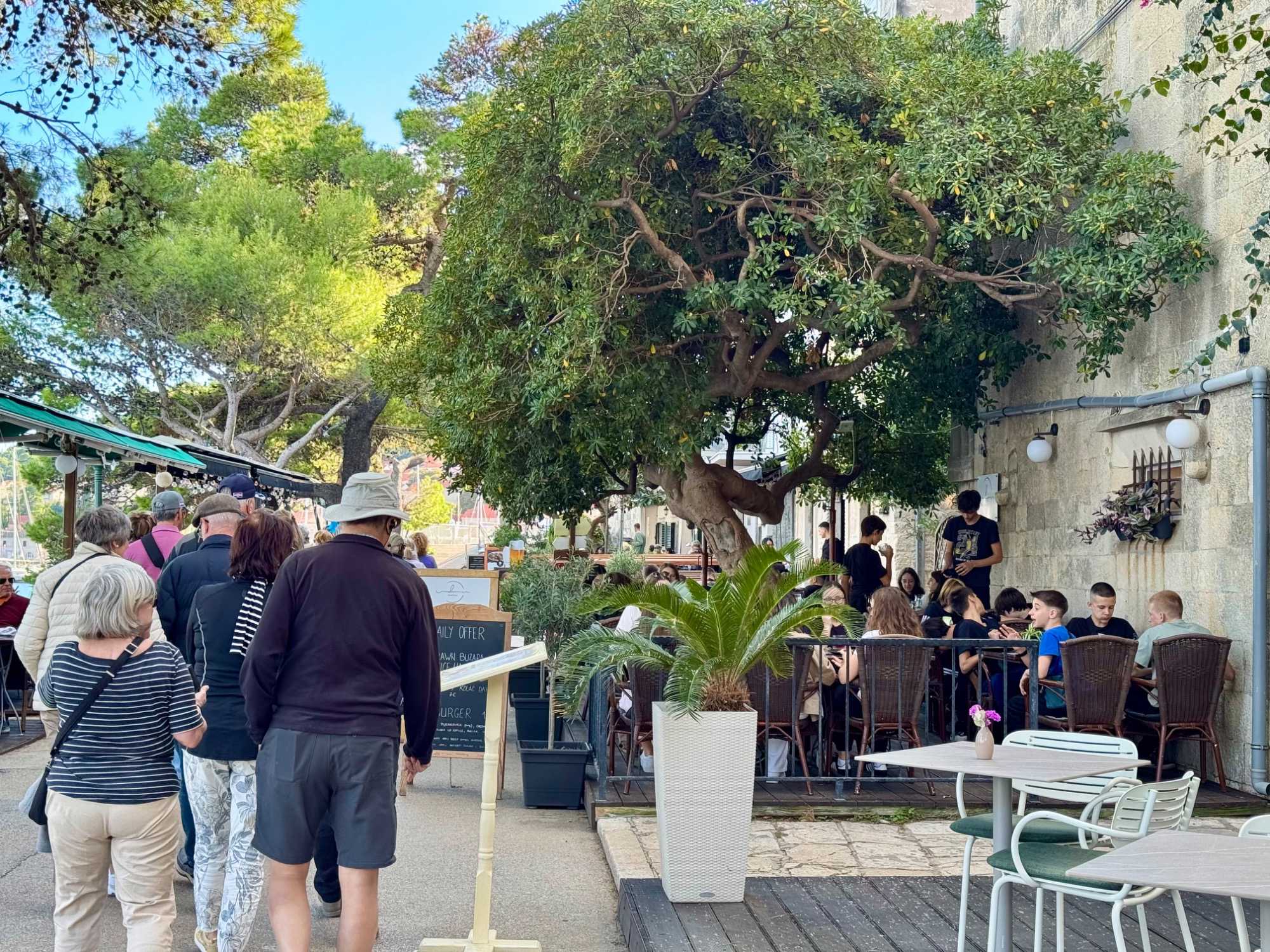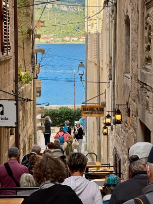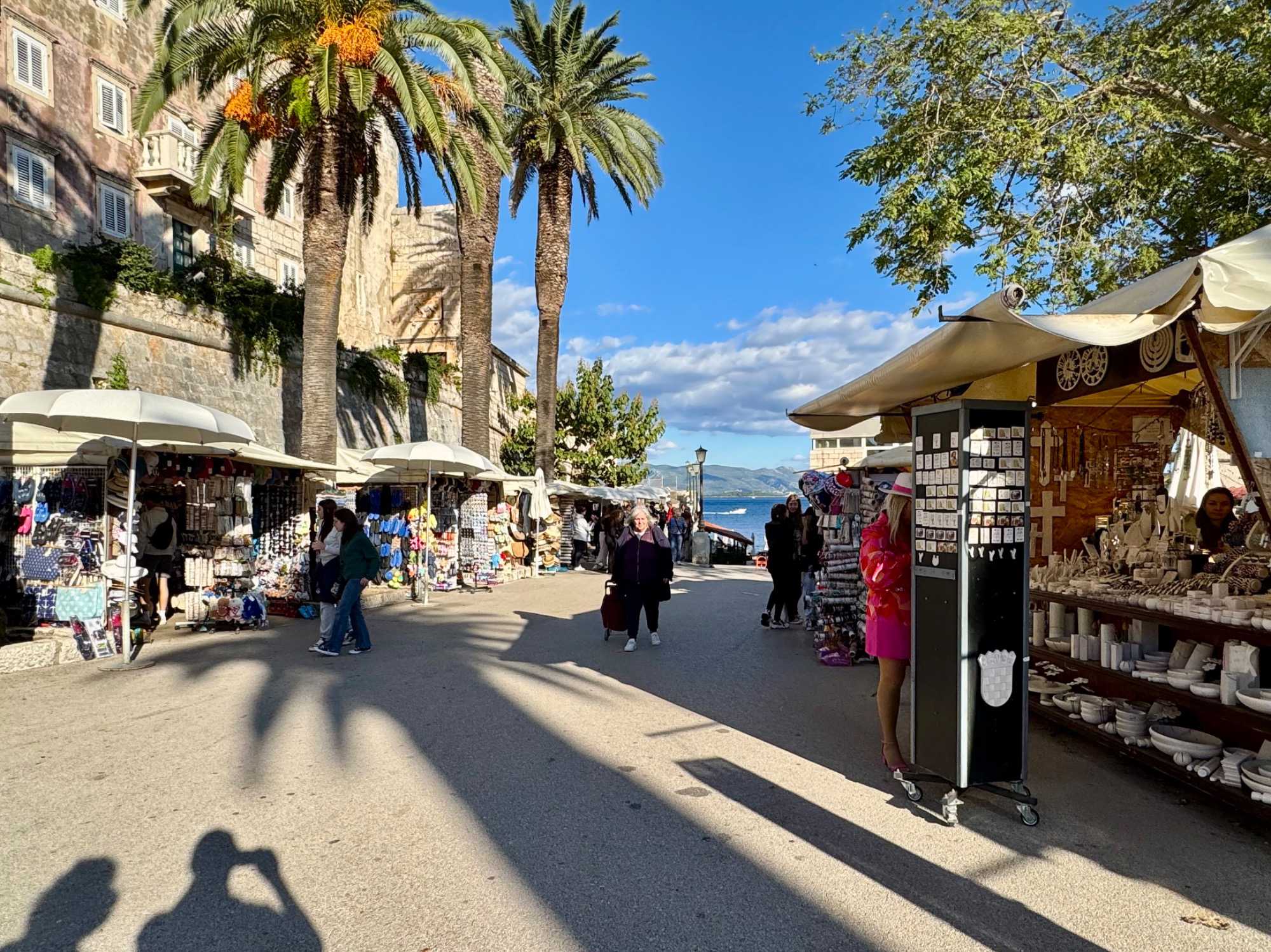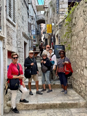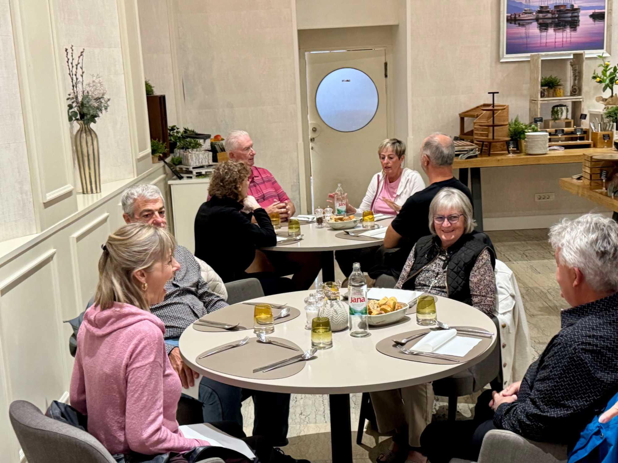 Après notre visite guidée de Korčula, nous avons eu un agréable moment de temps libre pour explorer la ville à notre rythme. Certains en ont profité pour flâner dans les ruelles pavées, admirer les remparts ou savourer un apéro en terrasse avec vue sur la mer. D’autres ont choisi de faire quelques emplettes ou simplement de s’imprégner de l’atmosphère paisible de cette charmante cité médiévale. Nous nous sommes ensuite retrouvés avec plaisir pour le souper, prêts à partager nos découvertes de l’après-midi.