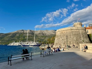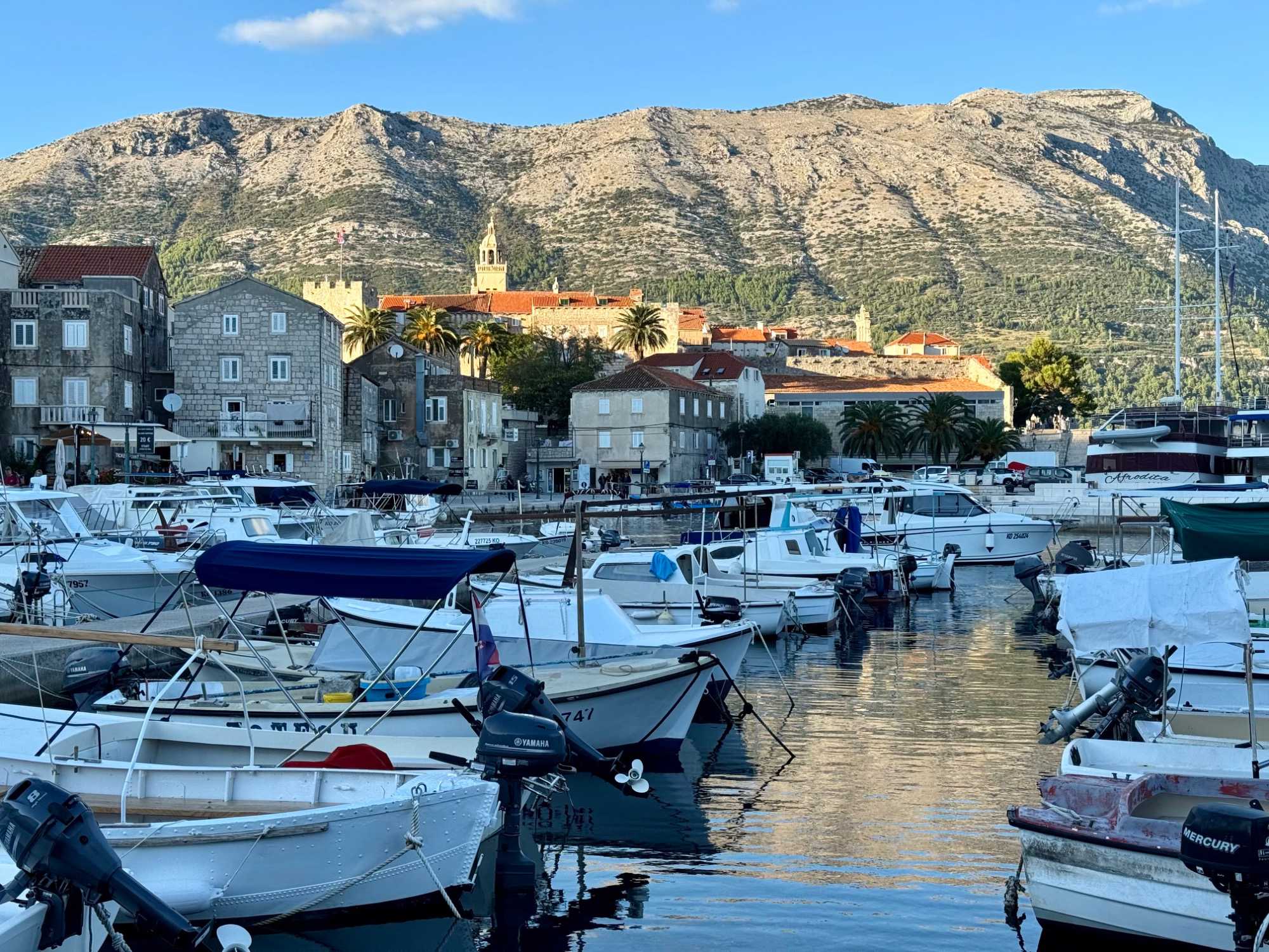 Ensuite, nous arrivons enfin à Korčula, réputée comme le lieu de naissance du célèbre explorateur Marco Polo. L’île de Korčula, qui fait environ 48 km de long sur 8 km de large, est plutôt montagneuse et, selon l’endroit, couverte de forêts, de vignes ou d’oliviers. Réputée comme étant la plus verte des îles croates, Korčula abrite également quelques superbes criques aux eaux bleus turquoises. L’île compte environ 17 000 habitants répartis principalement dans neuf grands centres et plusieurs petites bourgades. La ville de Korčula compte elle-même une population d’environ 3 000 habitants. Elle est le centre historique, culturel et politique ainsi que le port historique de l’île. L’île est très connue pour ses combats d’épées typiques dont la tradition a été préservée depuis des siècles. Korčula est l’île la plus boisée de Croatie. Les boisés occupent 61 % de sa superficie.