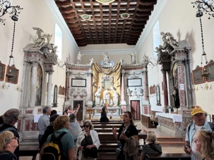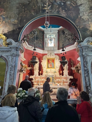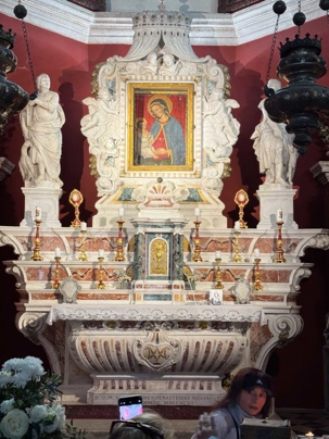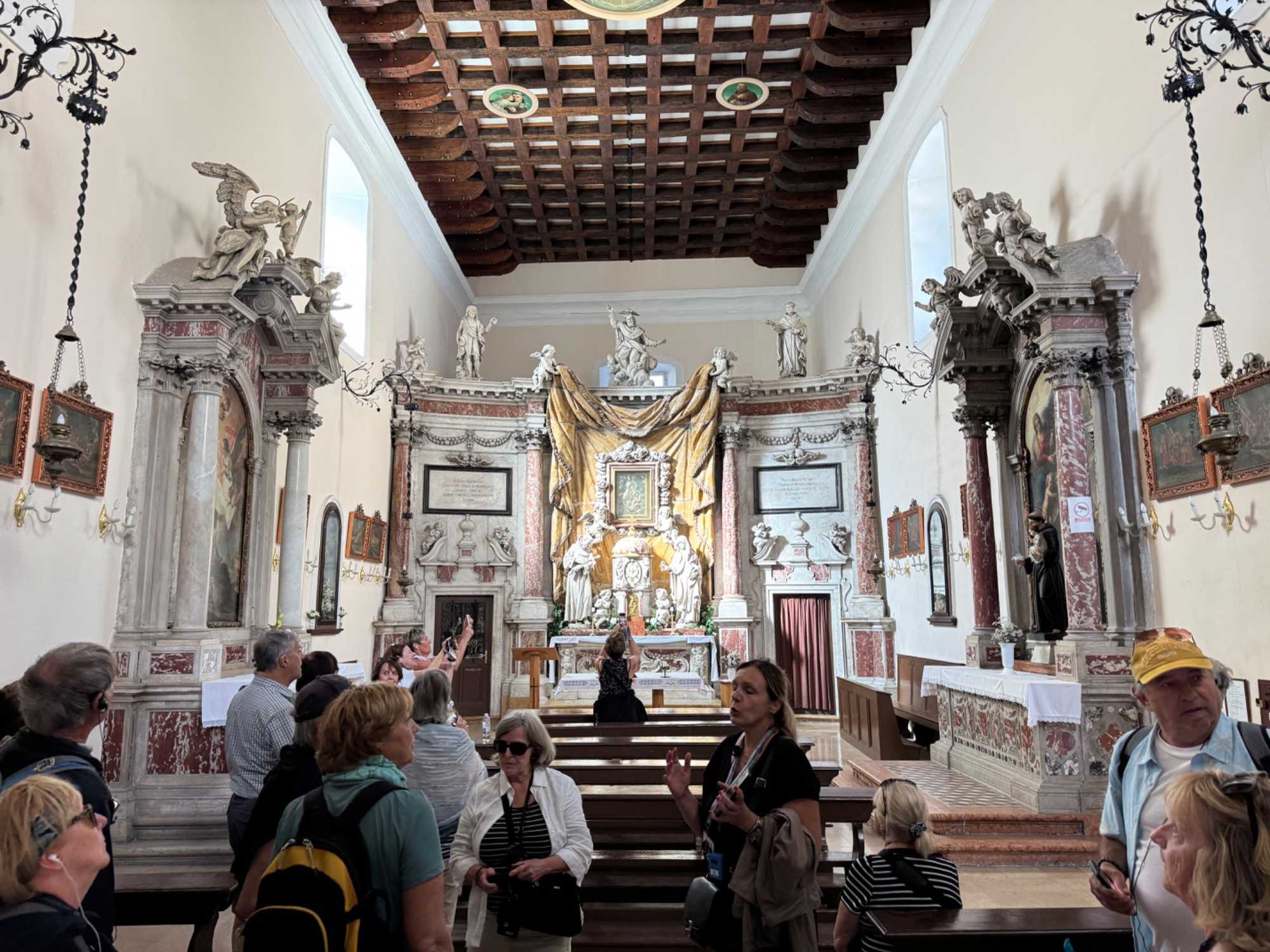 Une fois arrivés sur l’îlot, nous visitons la pittoresque église qui abrite une magnifique collection de peintures. L’ambiance paisible de ce lieu sacré nous invite à la contemplation et nous prenons le temps d’admirer les œuvres d’art qui y sont exposées.