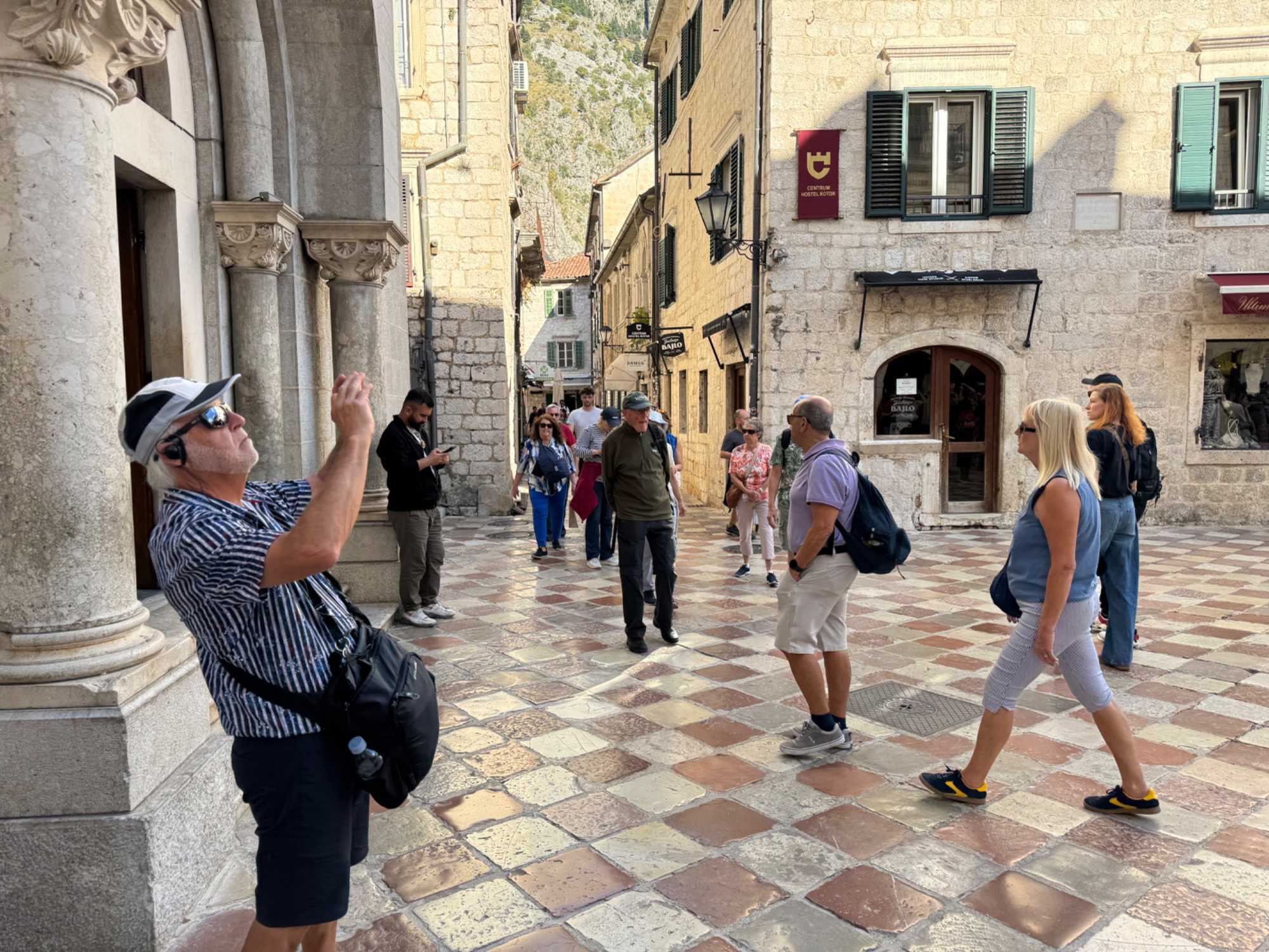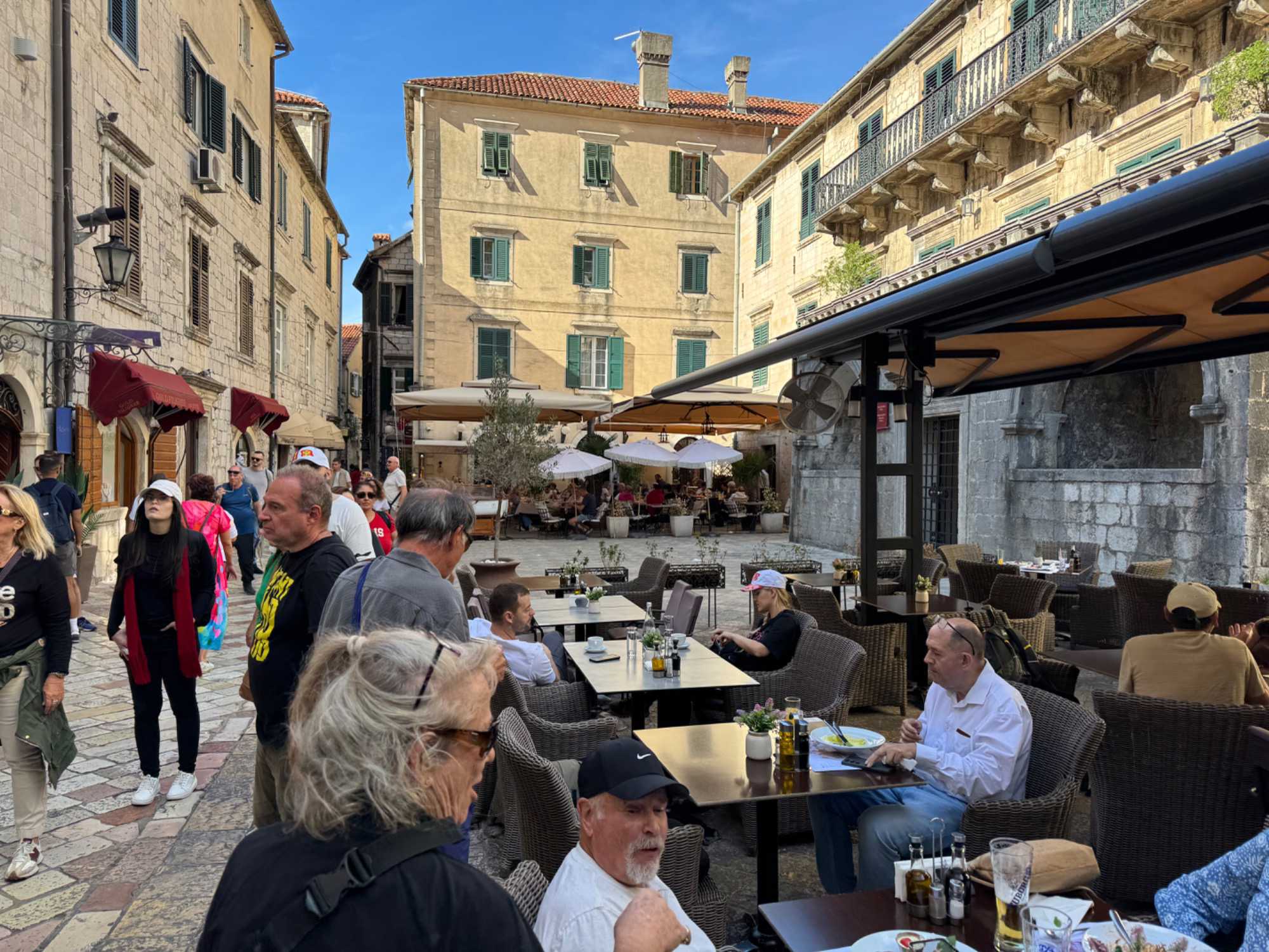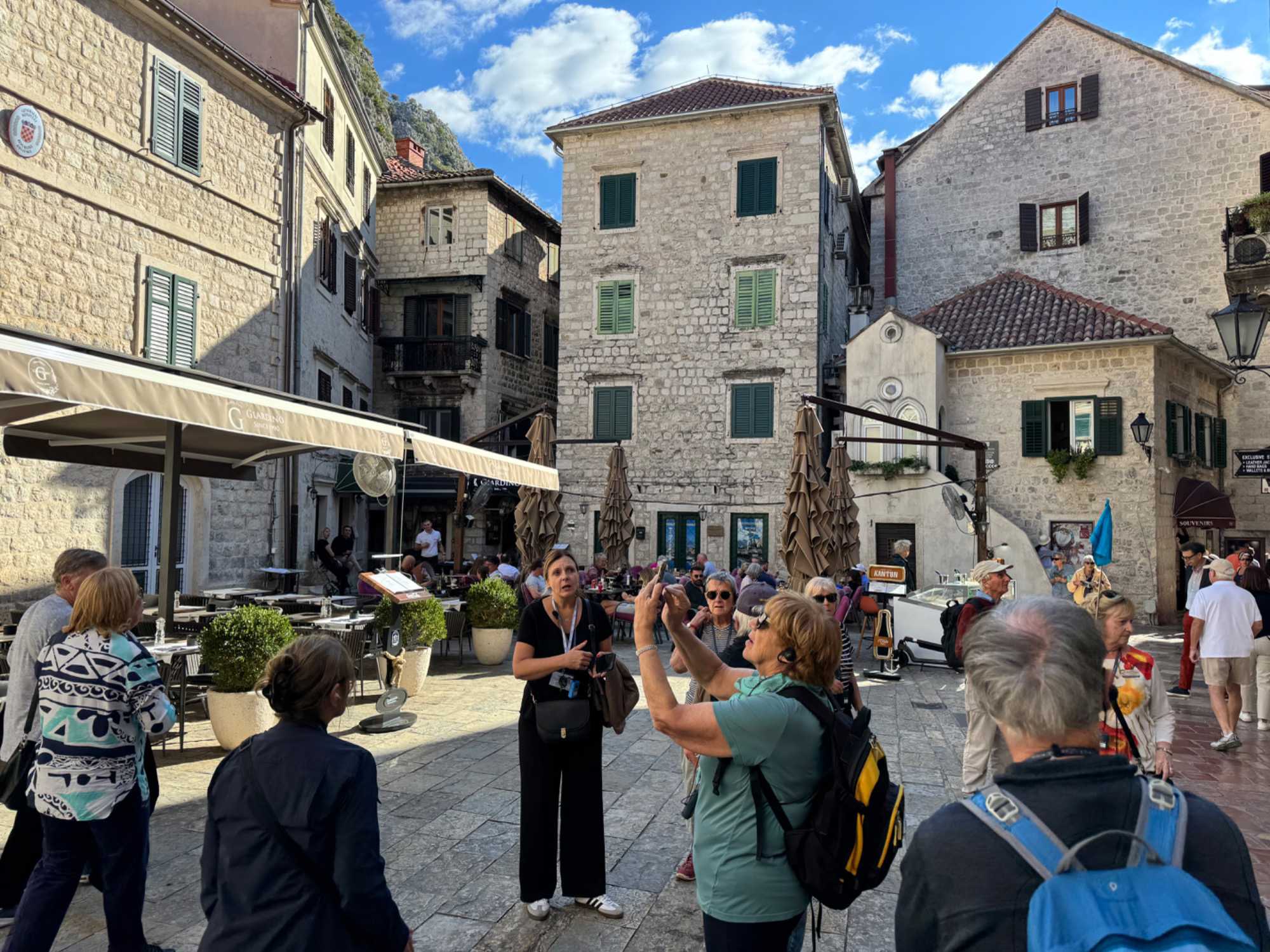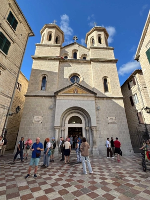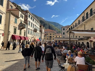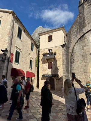 Après cette visite enrichissante, nous prenons la route vers Kotor, où nous entamons une visite guidée de Kotor avec Ivana. Notre guide partage avec nous l’histoire fascinante de cette ville fortifiée, dont les remparts datent du Moyen Âge. Nous nous promenons dans les rues pavées, découvrant les traces des différentes civilisations qui ont influencé la ville, de l’époque illyrienne à l’ère romaine.