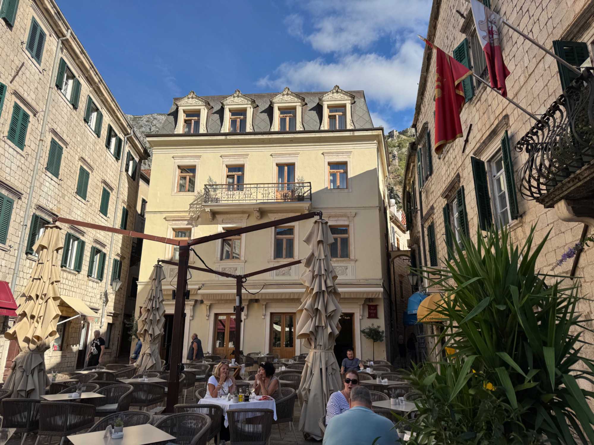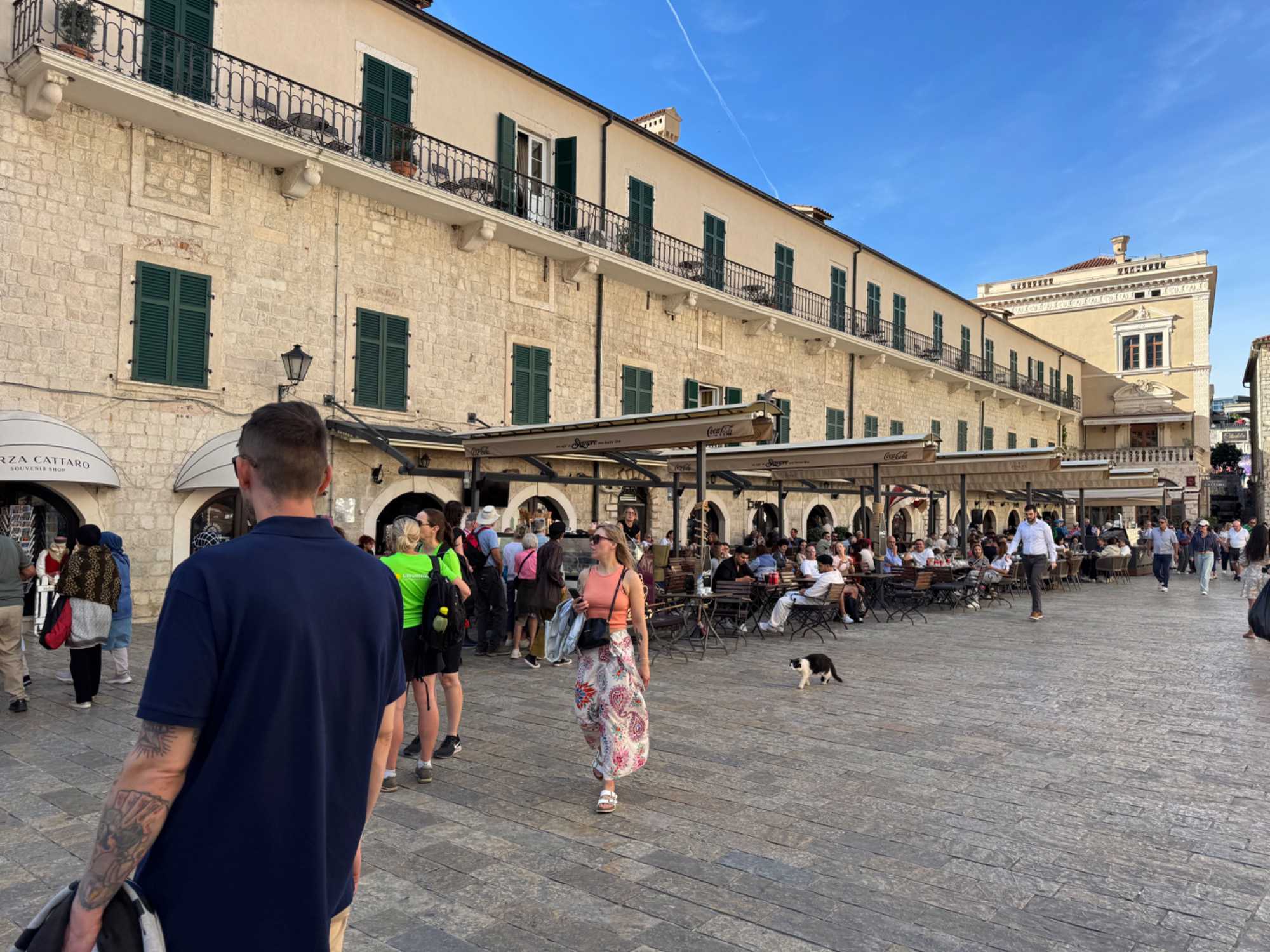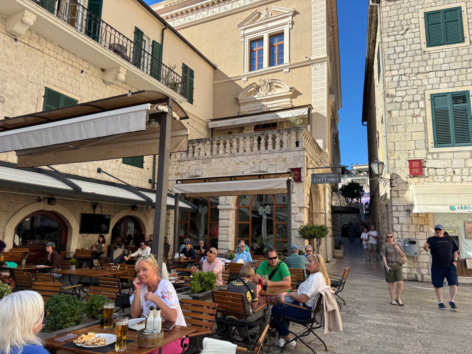 Après cette visite enrichissante, nous prenons la route vers Kotor, où nous entamons une visite guidée de Kotor avec Ivana. Notre guide partage avec nous l’histoire fascinante de cette ville fortifiée, dont les remparts datent du Moyen Âge. Nous nous promenons dans les rues pavées, découvrant les traces des différentes civilisations qui ont influencé la ville, de l’époque illyrienne à l’ère romaine.