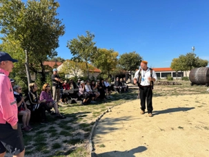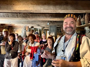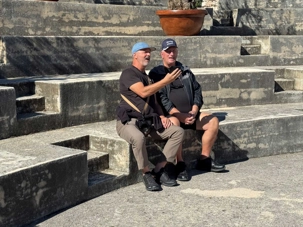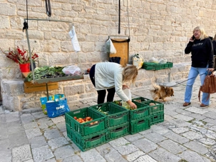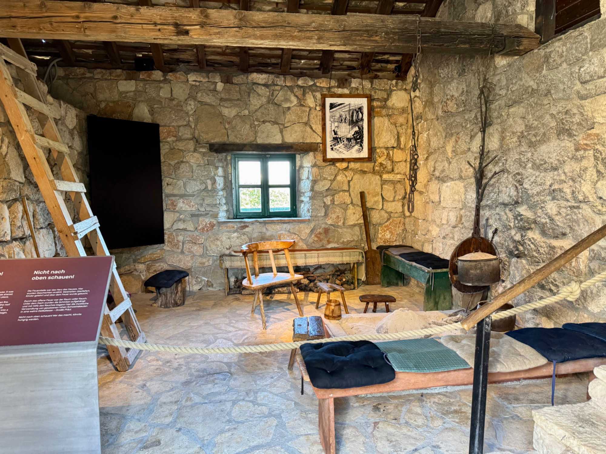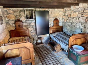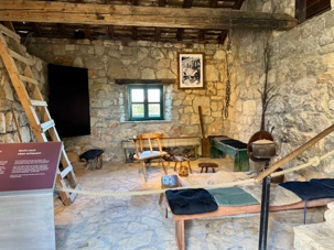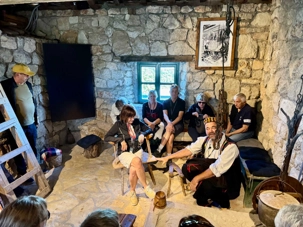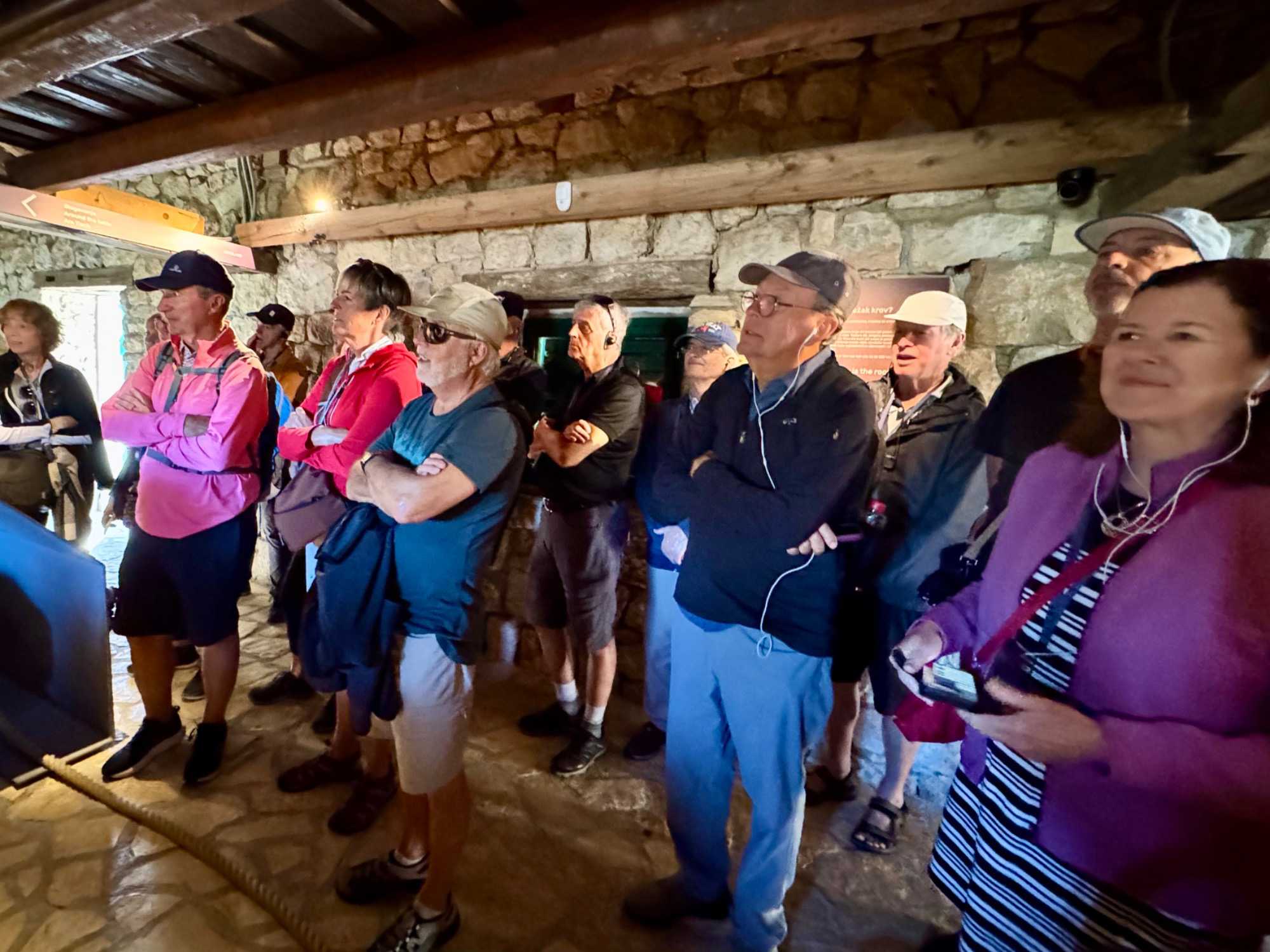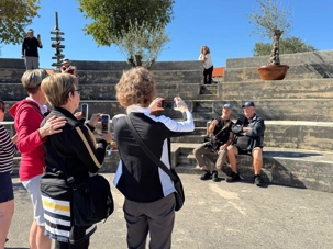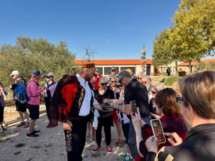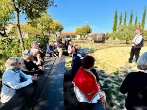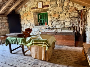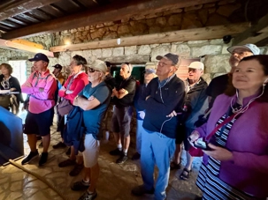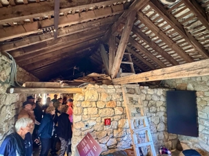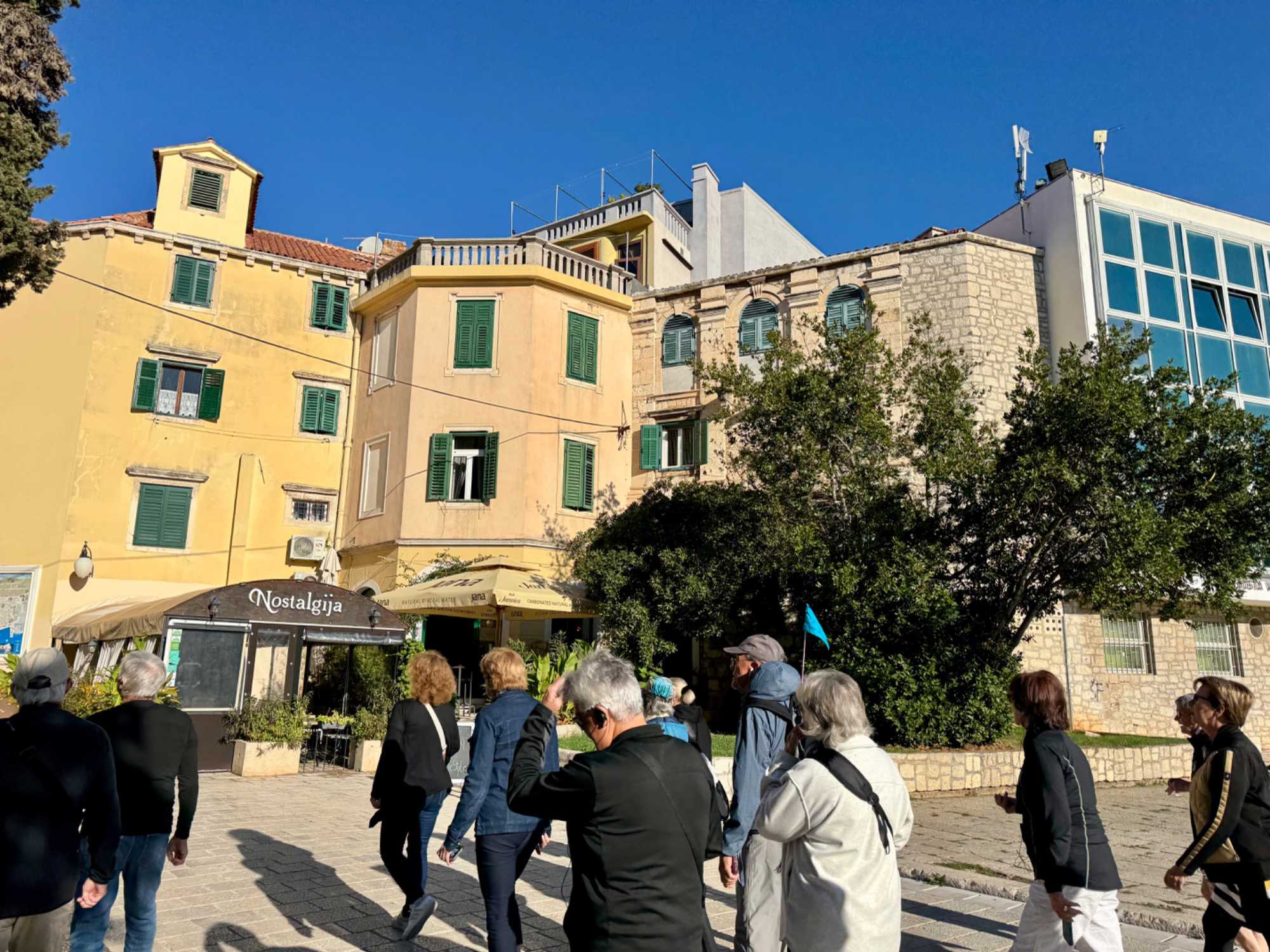 Puis, nous remontons à bord de notre autobus pour aller à Etnoland. Nous y sommes accueillis dans une ambiance chaleureuse. Etnoland Dalmati est un parc thématique familial situé non loin de la ville de Šibenik. Il offre un mélange unique de culture, de tradition et d’histoire. Ce site est un vrai monument du patrimoine culturel de l’arrière-pays dalmate, il nous offre une rencontre inédite avec l’ancien artisanat et les coutumes authentiques. Nous y voyons une maison typique de la Dalmatie et un jardin débordant d’épices et de légumes de la région. Nous faisons une dégustation du fameux prosciutto de Drniš. Nous sommes tous captivés par la présentation de notre hôte et certains d’entre nous n’hésitent pas à poser des questions, entraînés par un enthousiasme contagieux. Guy et Gilles nous font une belle chanson de Jacques Brel, « La Quête », pour expérimenter l’acoustique de l’amphithéâtre du village.