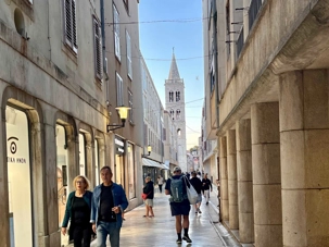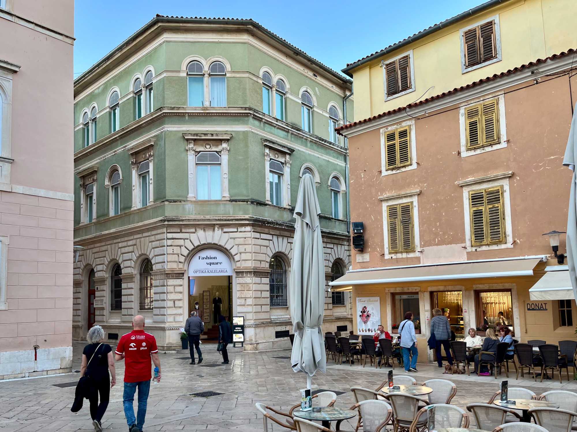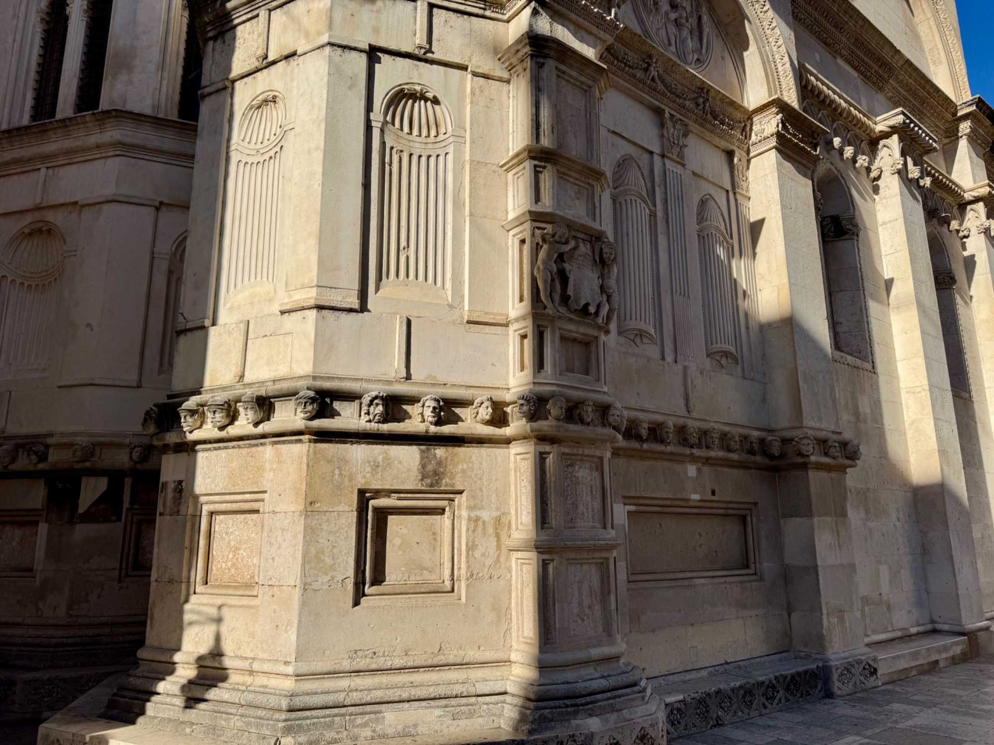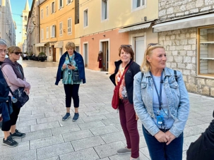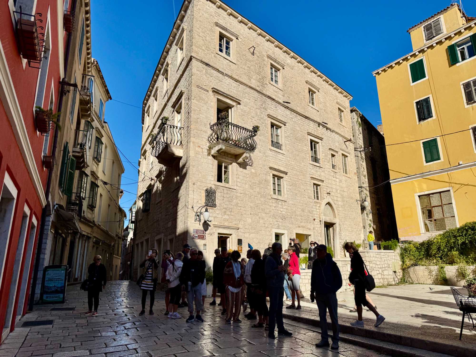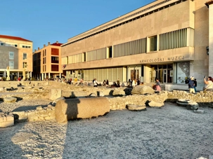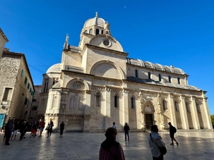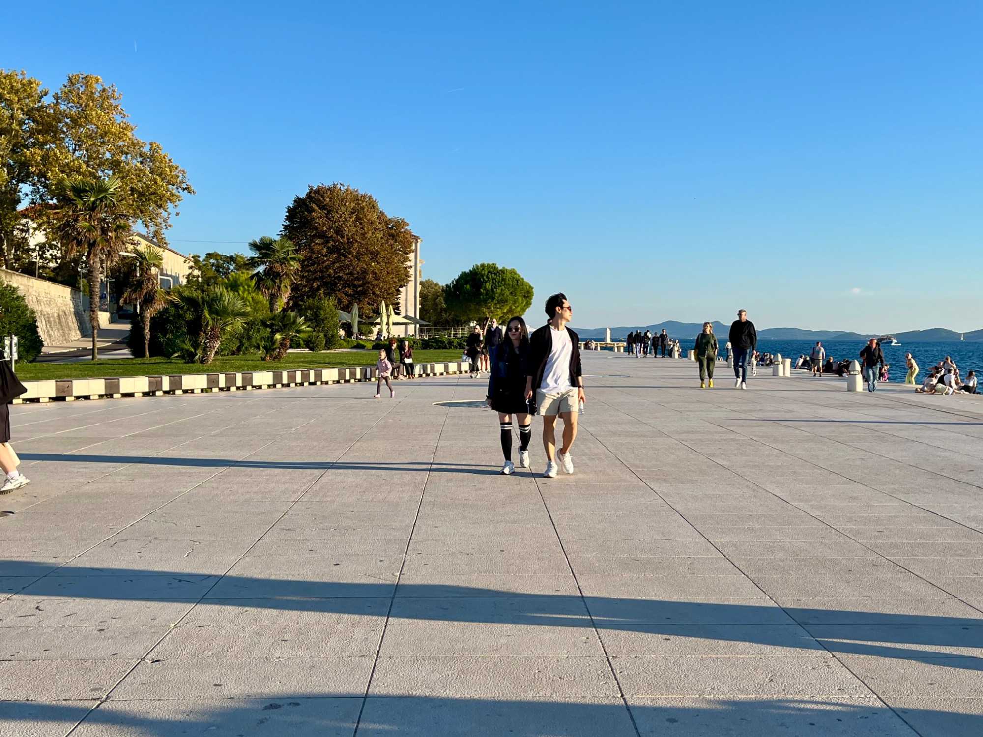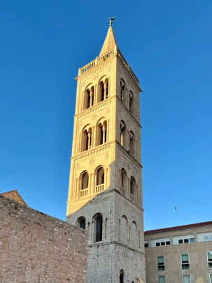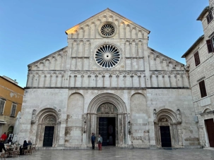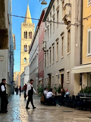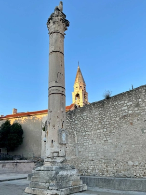 Nous faisons un grand tour de cette splendide vieille ville aux pavés de marbre, parcourons la ville intra-muros pour sentir l’ambiance. En nous promenant dans les ruelles pavées du centre historique, nous apercevons également des vestiges de la conquête romaine, témoignant de l’importance de Zadar tout au long de l’histoire. Anna nous parle également de l’époque byzantine, lorsque Zadar était un centre administratif. Ses récits historiques ajoutent une dimension fascinante à notre exploration, et nous ressentons vraiment le poids des siècles en déambulant parmi ces monuments.