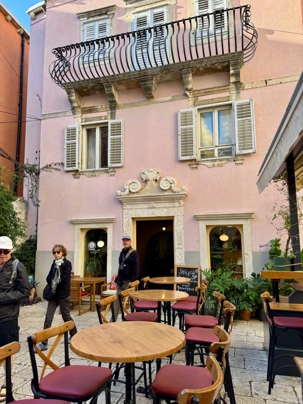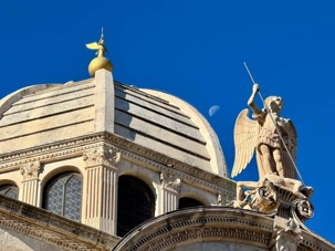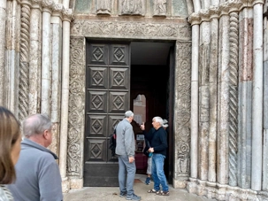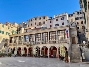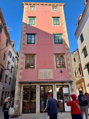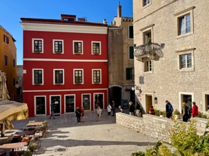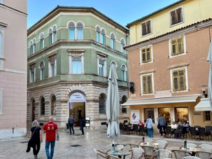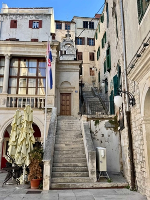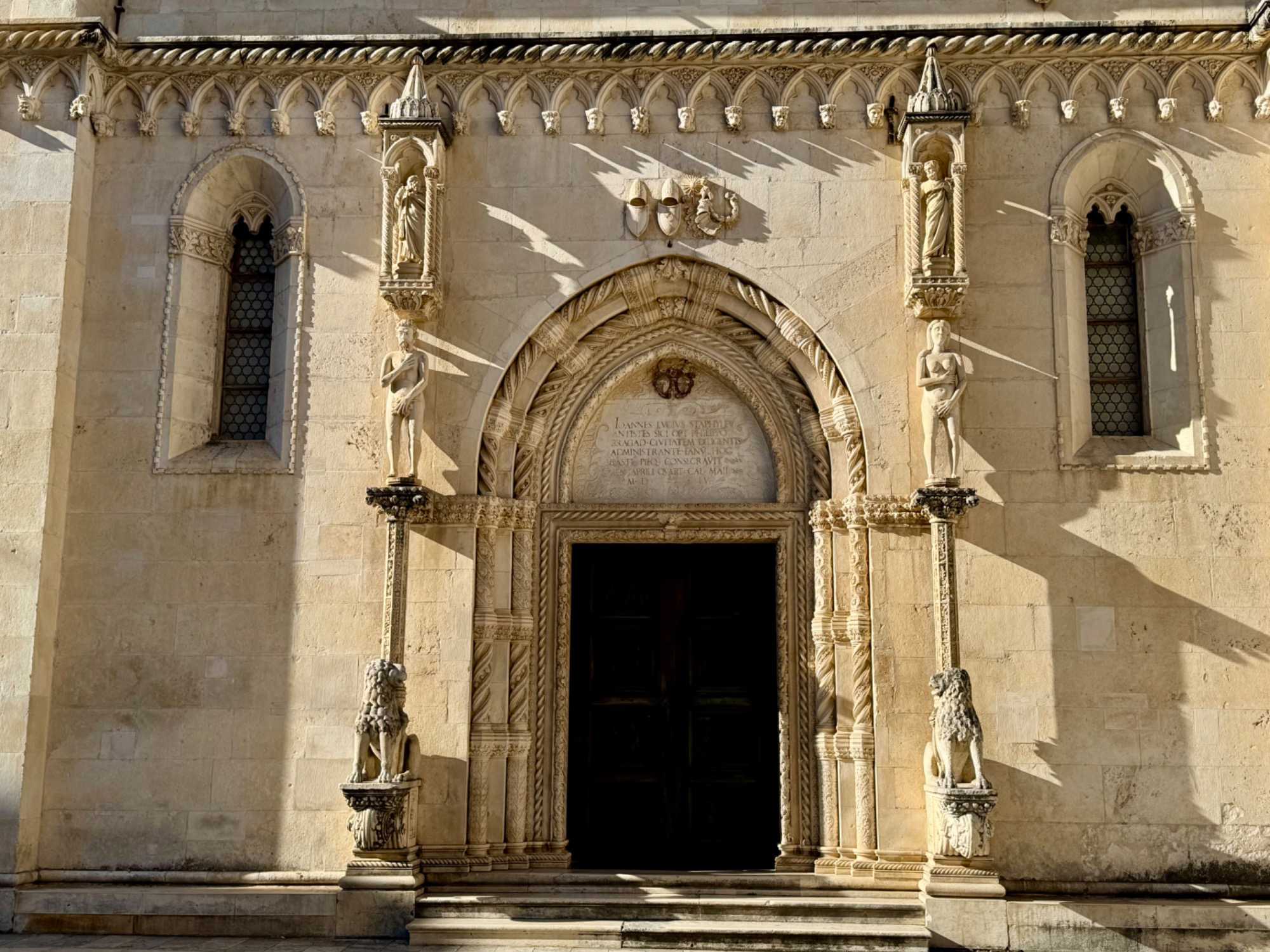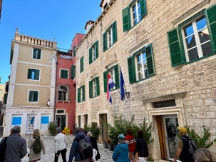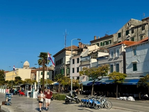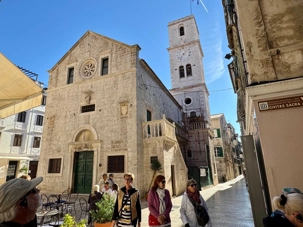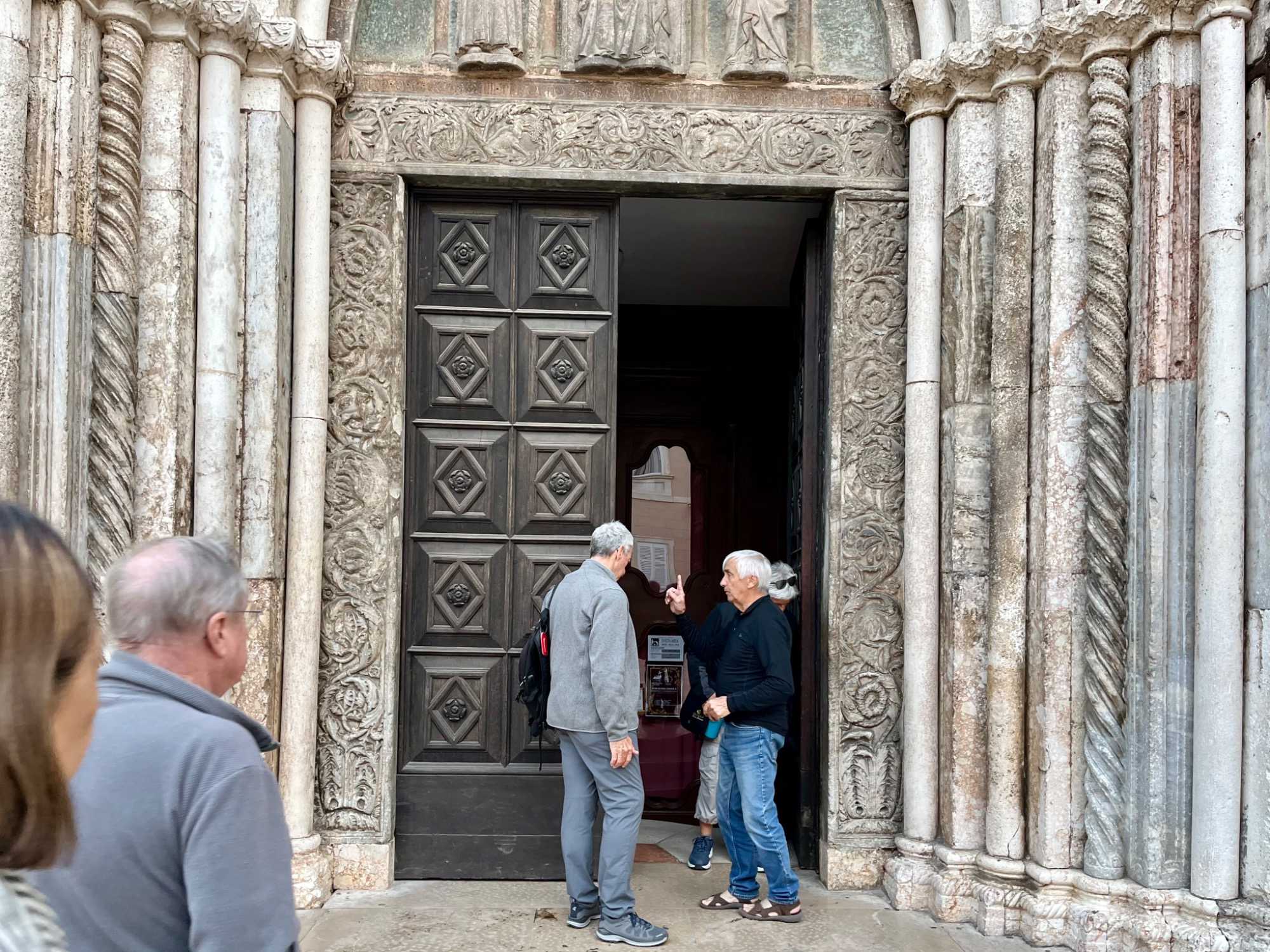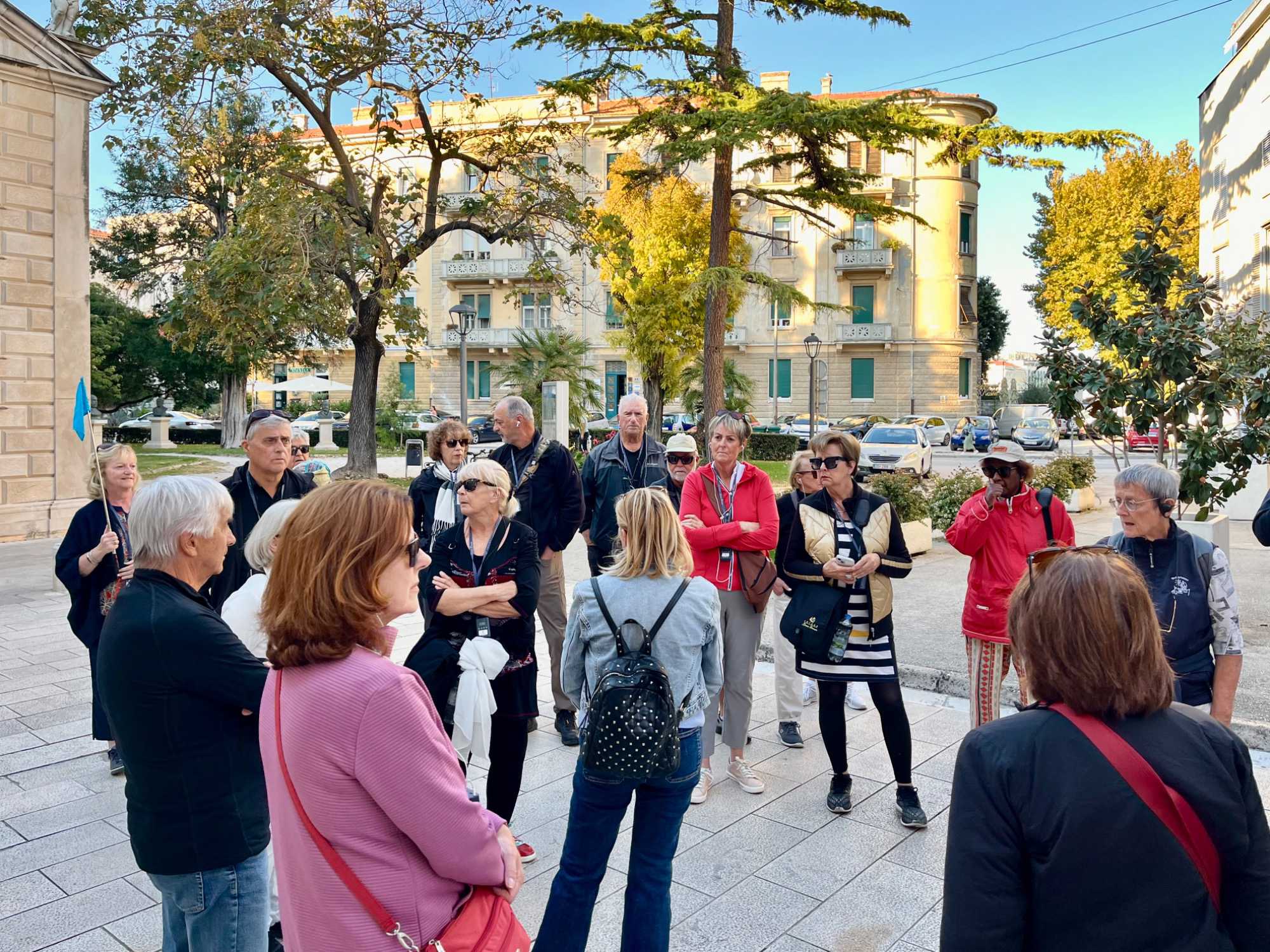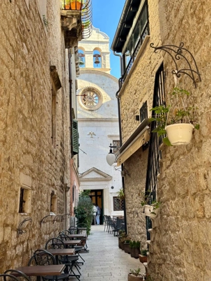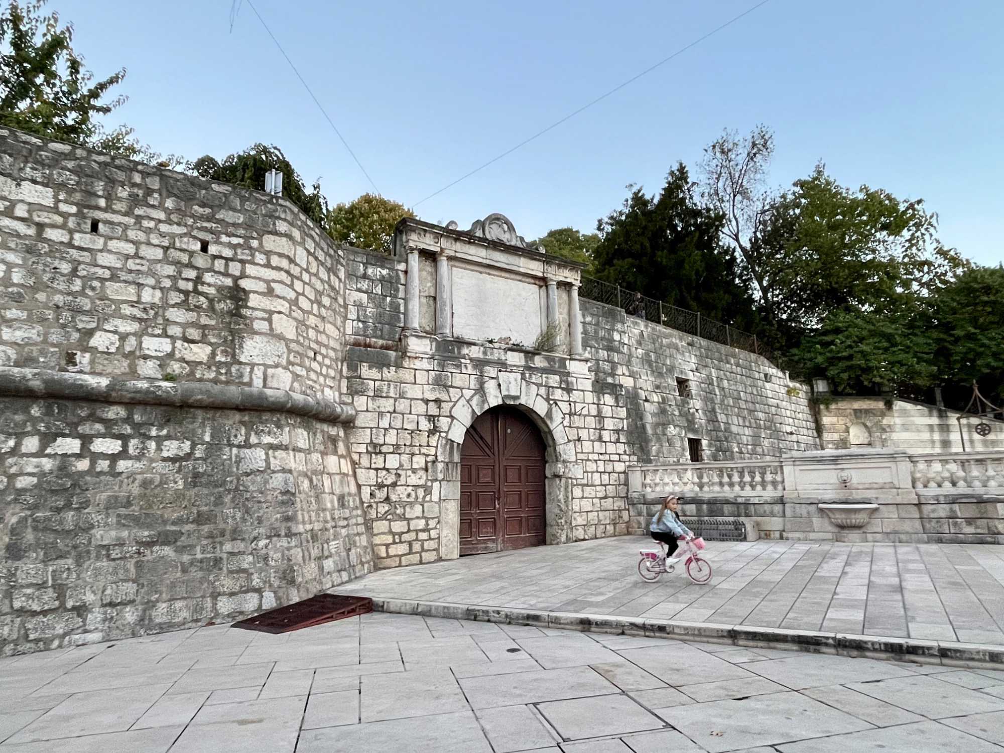 Nous faisons un grand tour de cette splendide vieille ville aux pavés de marbre, parcourons la ville intra-muros pour sentir l’ambiance. En nous promenant dans les ruelles pavées du centre historique, nous apercevons également des vestiges de la conquête romaine, témoignant de l’importance de Zadar tout au long de l’histoire. Anna nous parle également de l’époque byzantine, lorsque Zadar était un centre administratif. Ses récits historiques ajoutent une dimension fascinante à notre exploration, et nous ressentons vraiment le poids des siècles en déambulant parmi ces monuments.