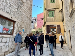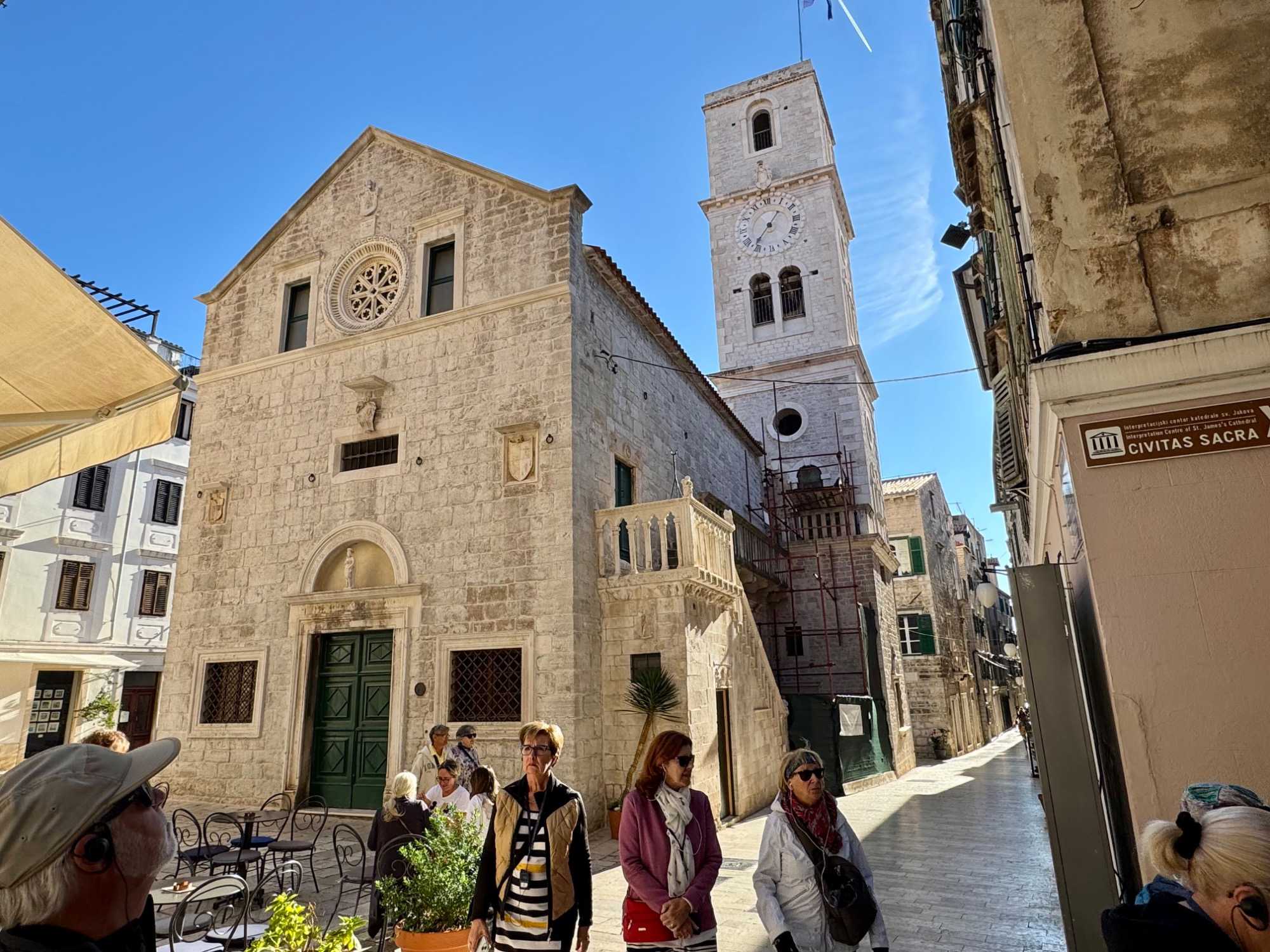 Nous faisons un arrêt à Sibenik pour visiter brièvement cette vieille ville remarquable en compagnie de notre excellente guide. Isabelle est heureuse de nous faire découvrir sa ville d’adoption qu’elle habite depuis plusieurs années.
