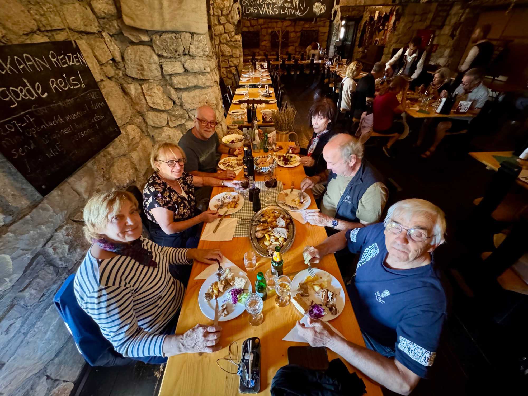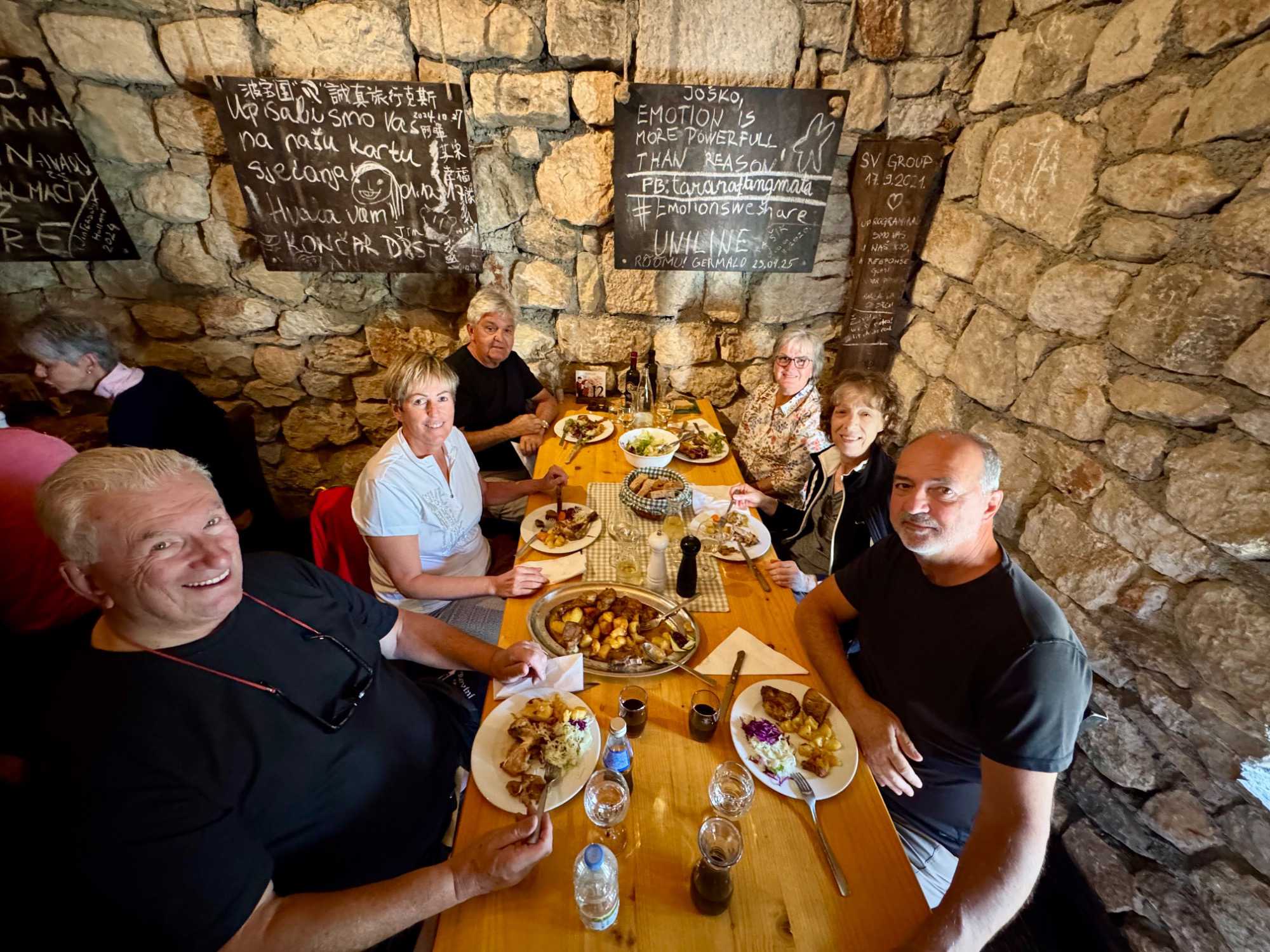 Le moment fort de notre visite est sans doute le délicieux dîner qui nous est servi, mettant à l’honneur des spécialités de la région. Nous dégustons des plats typiques, préparés avec des produits locaux, et chaque bouchée est un véritable délice. C’est l’occasion de savourer la cuisine dalmate tout en partageant nos impressions sur les performances que nous venons de voir.