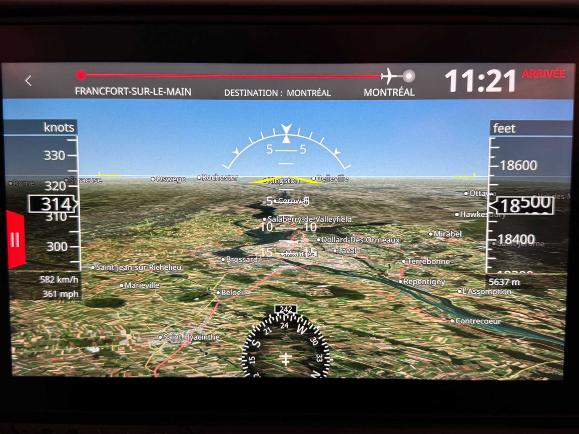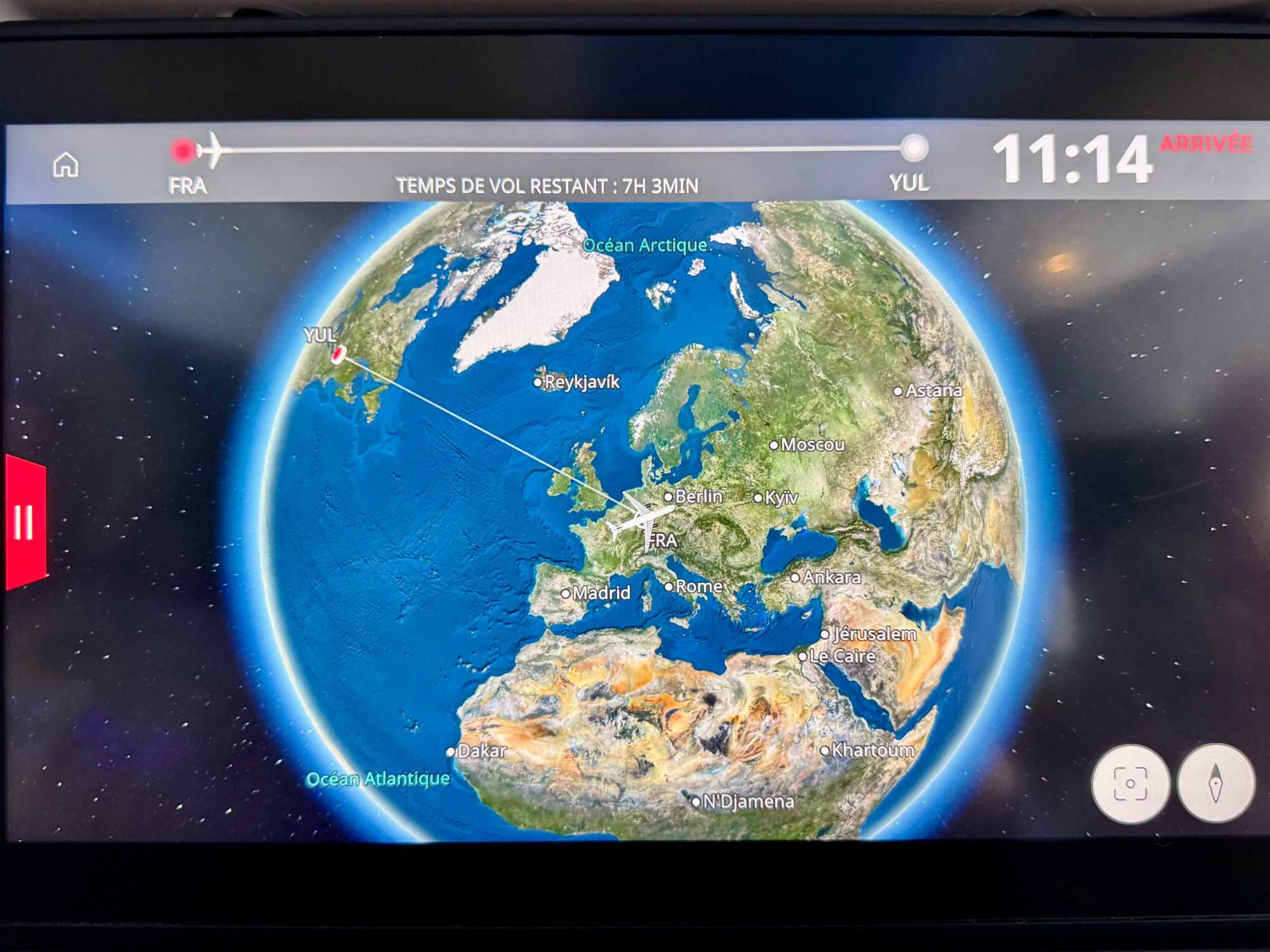 À l’aéroport de Zagreb, tout se passe en douceur. Nous enregistrons nos bagages, passons la sécurité et trouvons le temps de prendre un dernier café en Croatie. Une fois à bord de notre vol d’Air Canada, nous nous installons confortablement, prêts pour notre vol vers Frankfort. L’ambiance dans l’avion est détendue, chacun profite des derniers instants en écoutant de la musique ou en faisant un petit somme.