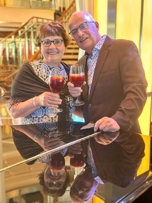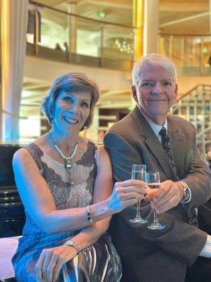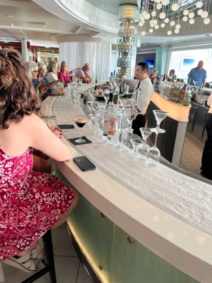 Ce soir a lieu la première soirée “Chic”. Soirée bien occupée s’il en est une, on se met sur notre 36 pour se retrouver à l’apéro au passeport bar du grand foyer. On trinque une fois de plus à la belle météo, à ce beau voyage, à notre beau groupe, bref tous les prétextes sont bons! C’est l’occasion de prendre de belles photos de couple et du groupe car tout le monde y est ! Que c’est agréable !