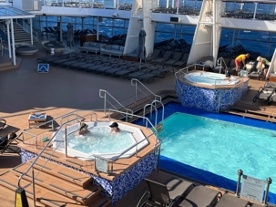 Pont 12: Les piscines extérieurs, jacuzzis, le Spa pour les soins, coiffeurs, le gym, le solarium pour la piscine intérieure et d’autres jacuzzis, le spa café pour les en-cas santé