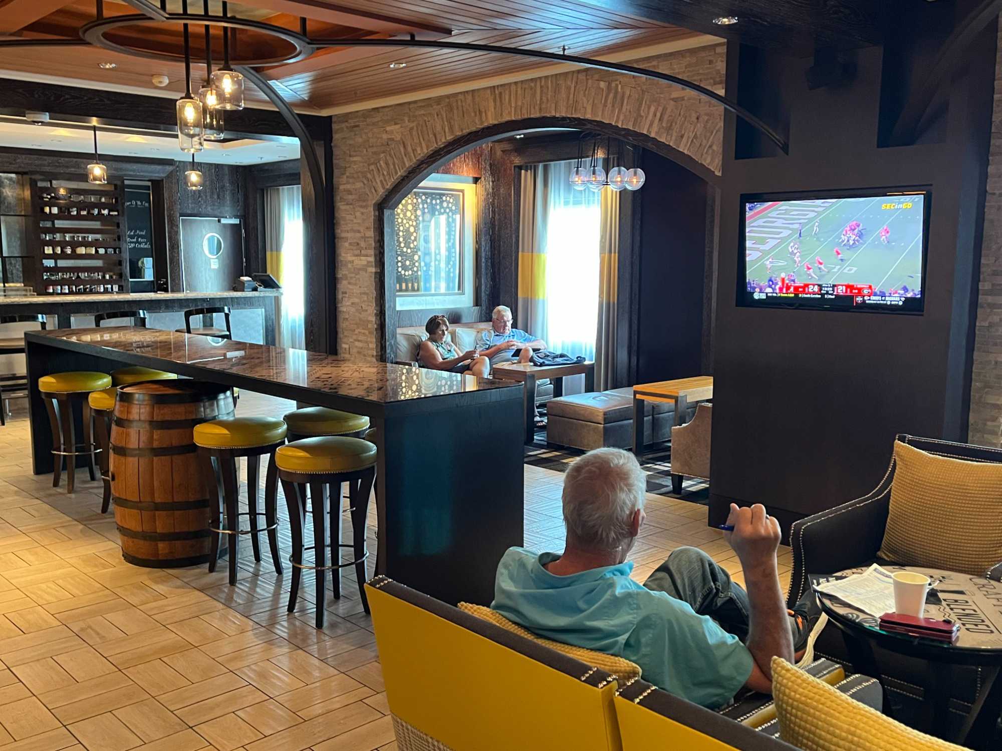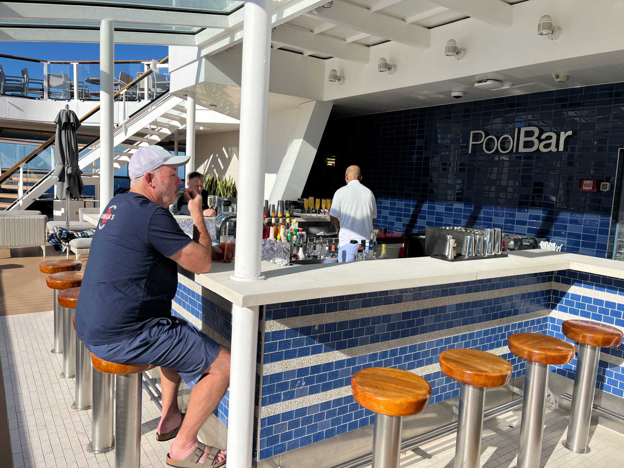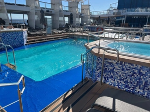 Pont 15 : Le bar Sunset où nous avons pris l’apéro du “Sail away” (départ de la croisière), les terrains de sports (pickell ball, basketball, tennis)